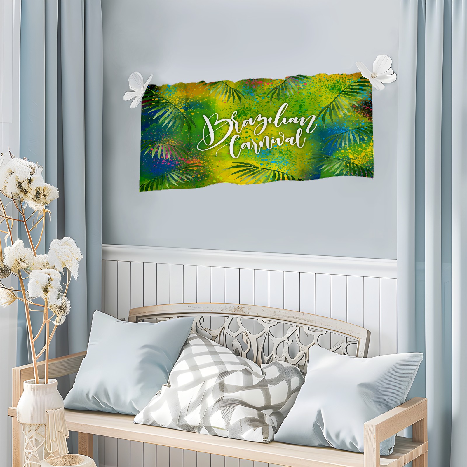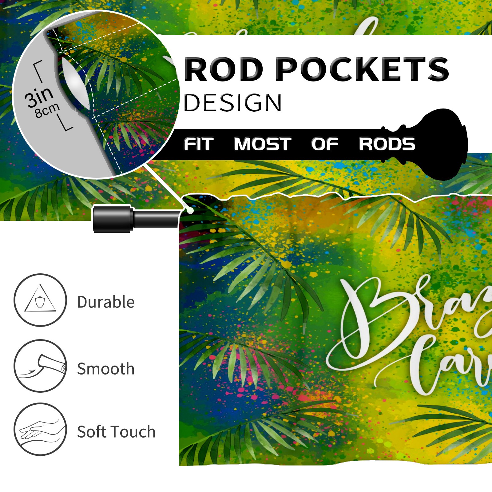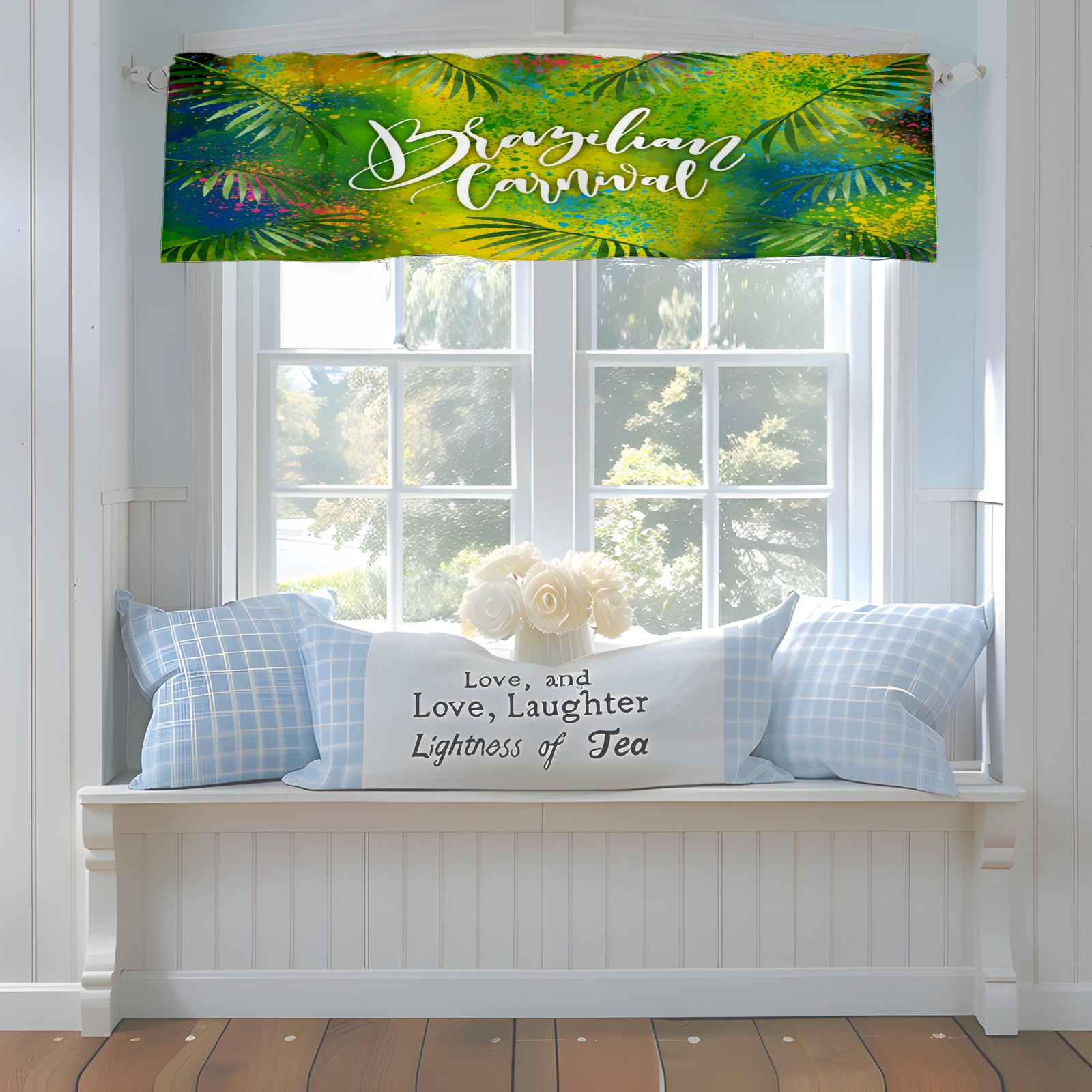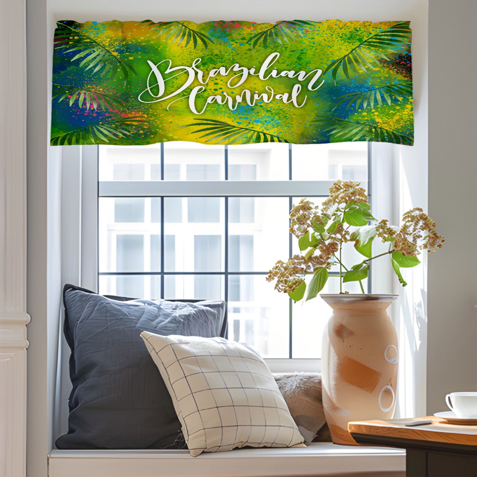 Blackout Curtain Valance for Living Room/Bathroom/Kitchen Valance Rod Pocket Curtain 14 x 52 Inches Brazilian Carnival Doodling Leaves