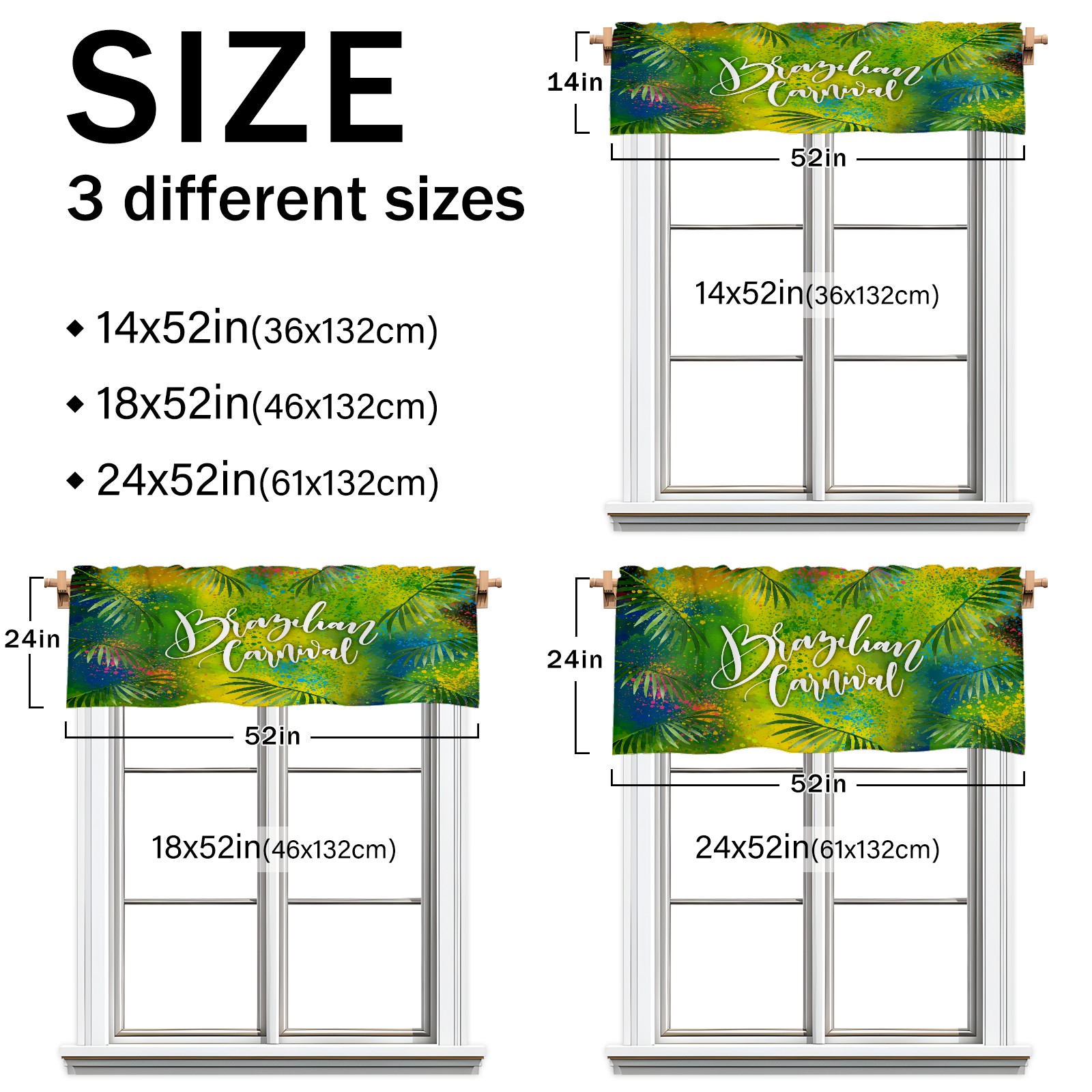 • <p>This rod-pocket curtain combines functionality and style, making it an ideal choice for home window decoration. Available in three practical sizes—14×52 inches, 18×52 inches, and 24×52 inches—it fits most standard curtain rods. Made from high-quality polyester, it's durable and comfortable, resisting wear and deformation from daily use. Its semi-blackout properties and moderate thickness balance light intensity, allowing for views while maintaining privacy, ensuring a balanced experience.</p><p>It's suitable for a variety of spaces and is ideal for covering the upper half of windows in areas like kitchens, bathrooms, laundry rooms, and studios. For a coordinated look, pair with matching curtain fabrics in the same pattern. Cleaning is also easy: machine washable in cold water without bleaching, tumble dry on low, and gently iron for finishing touches, making it easy to maintain even on a busy schedule.</p><p>Whether you're looking to refresh a small window or add a finishing touch to a room, this curtain effortlessly enhances the space with its practicality and aesthetic.</p>