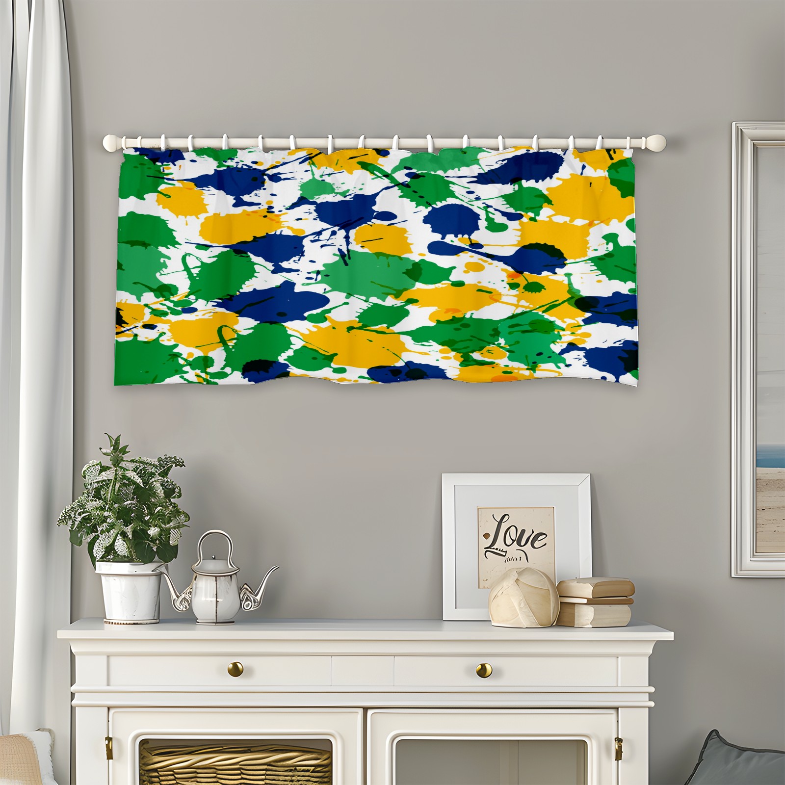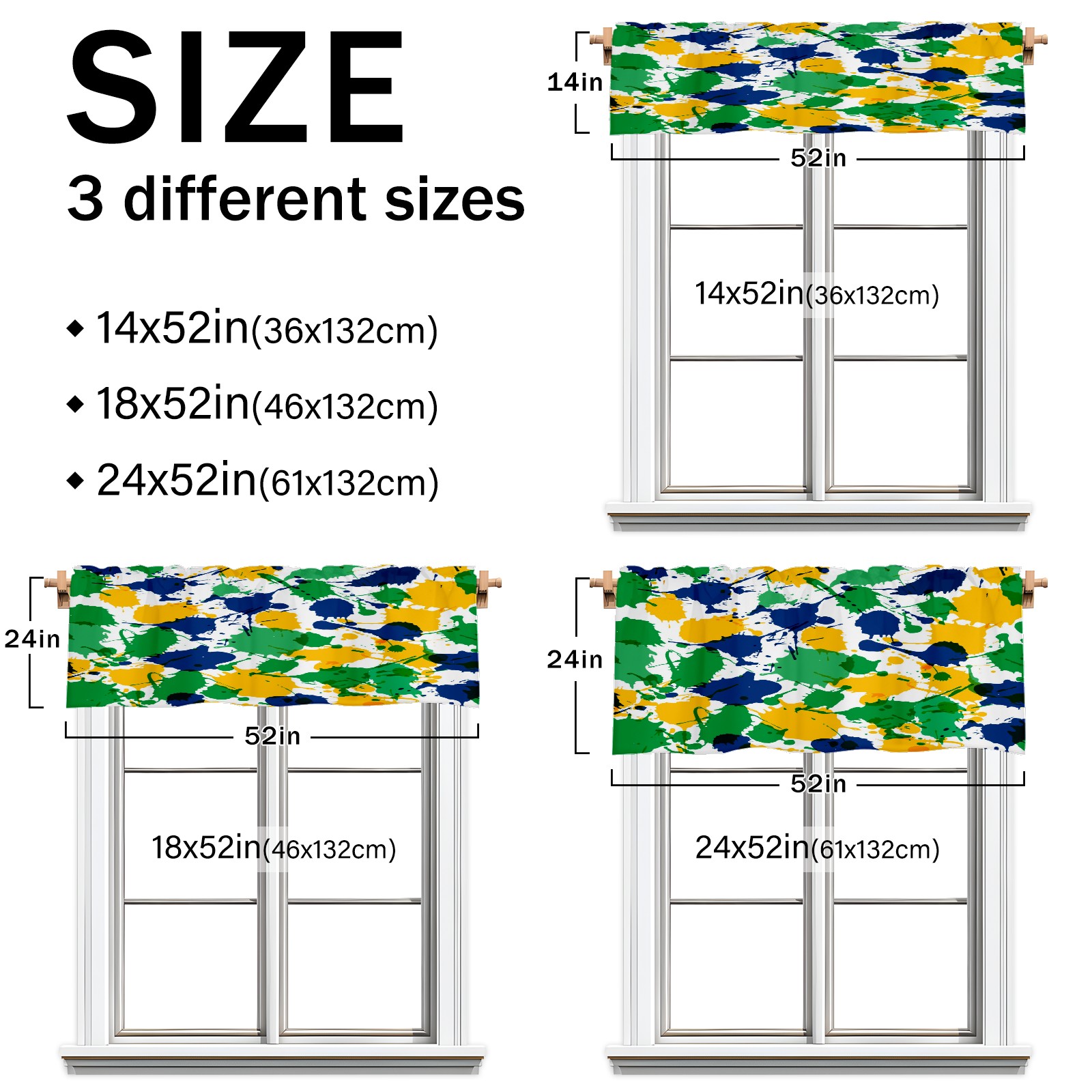 • <p>This rod-pocket curtain combines functionality and style, making it an ideal choice for home window decoration. Available in three practical sizes—14×52 inches, 18×52 inches, and 24×52 inches—it fits most standard curtain rods. Made from high-quality polyester, it's durable and comfortable, resisting wear and deformation from daily use. Its semi-blackout properties and moderate thickness balance light intensity, allowing for views while maintaining privacy, ensuring a balanced experience.</p><p>It's suitable for a variety of spaces and is ideal for covering the upper half of windows in areas like kitchens, bathrooms, laundry rooms, and studios. For a coordinated look, pair with matching curtain fabrics in the same pattern. Cleaning is also easy: machine washable in cold water without bleaching, tumble dry on low, and gently iron for finishing touches, making it easy to maintain even on a busy schedule.</p><p>Whether you're looking to refresh a small window or add a finishing touch to a room, this curtain effortlessly enhances the space with its practicality and aesthetic.</p>