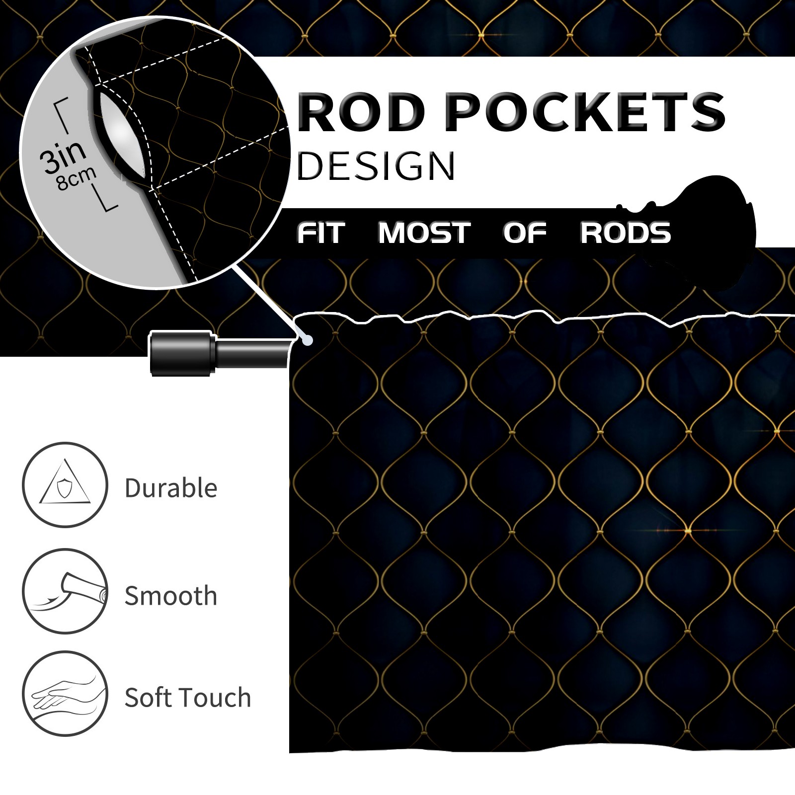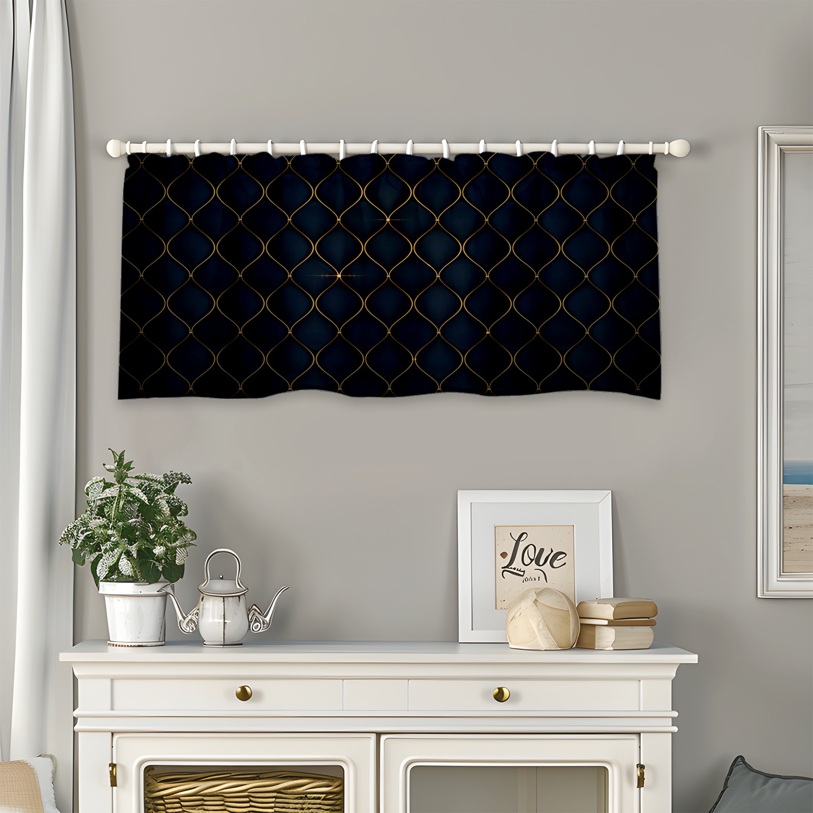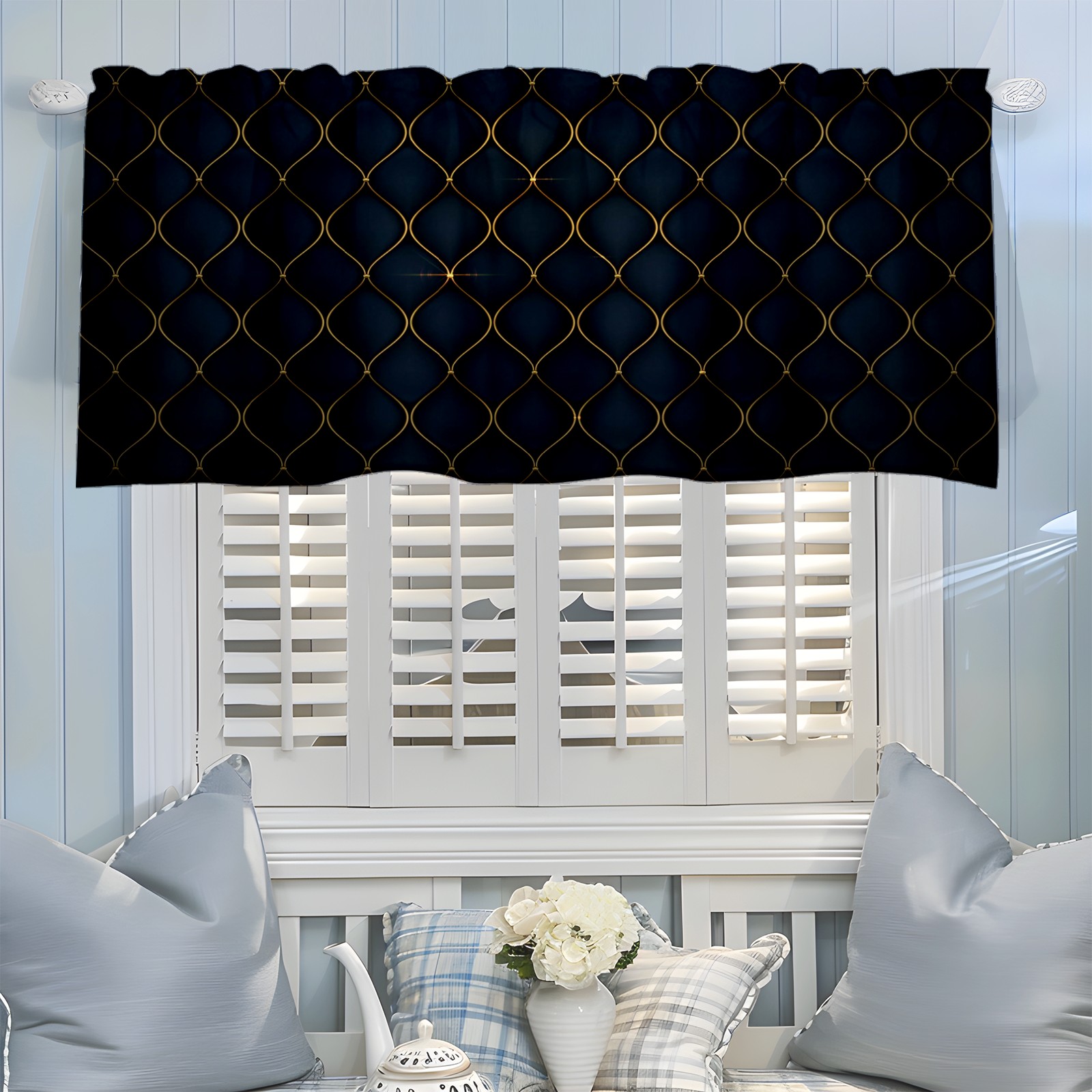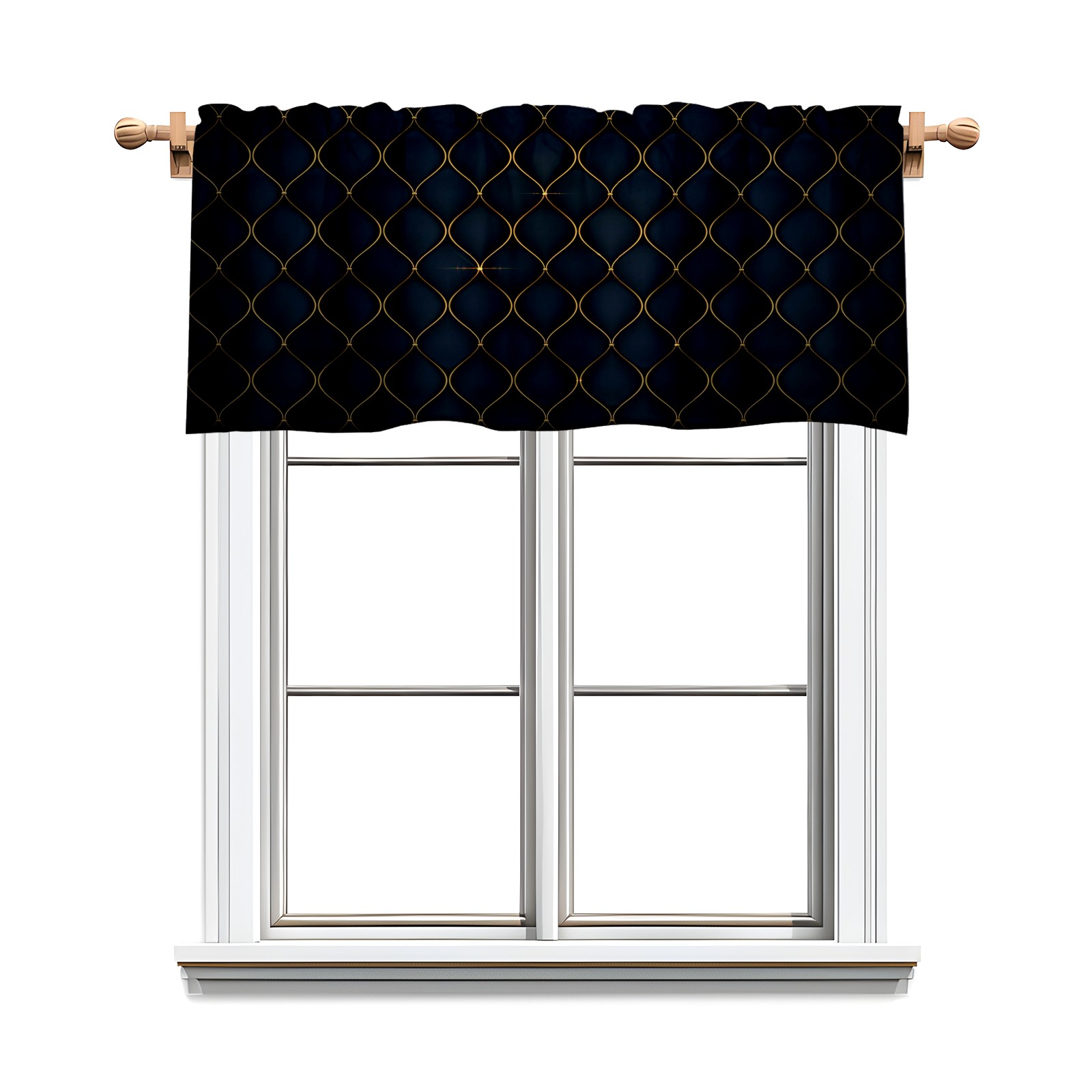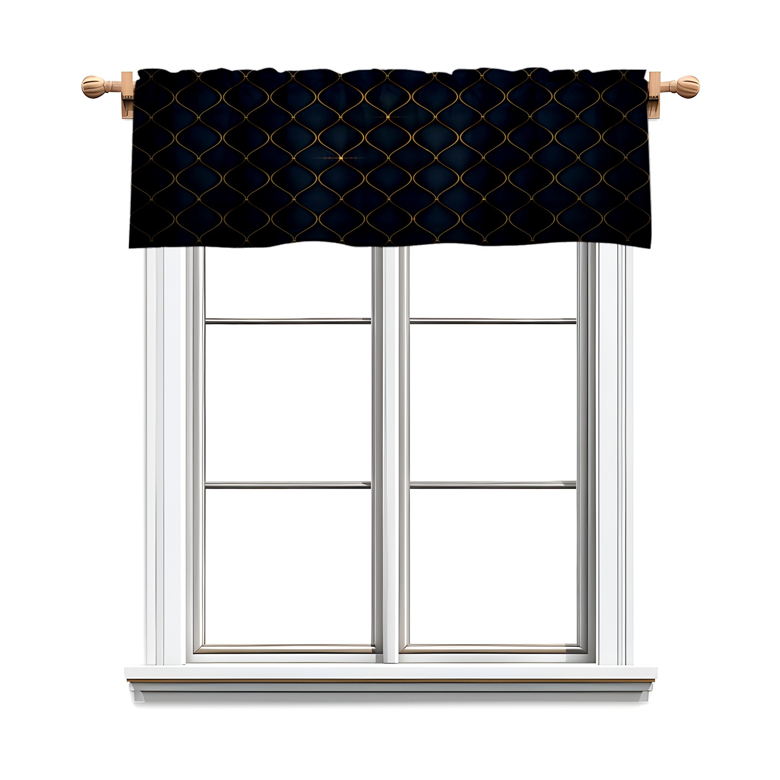 Blackout Curtain Valance for Living Room/Bathroom/Kitchen Valance Rod Pocket Curtain 14 x 52 Inches Black Luxurious Golden Shapes