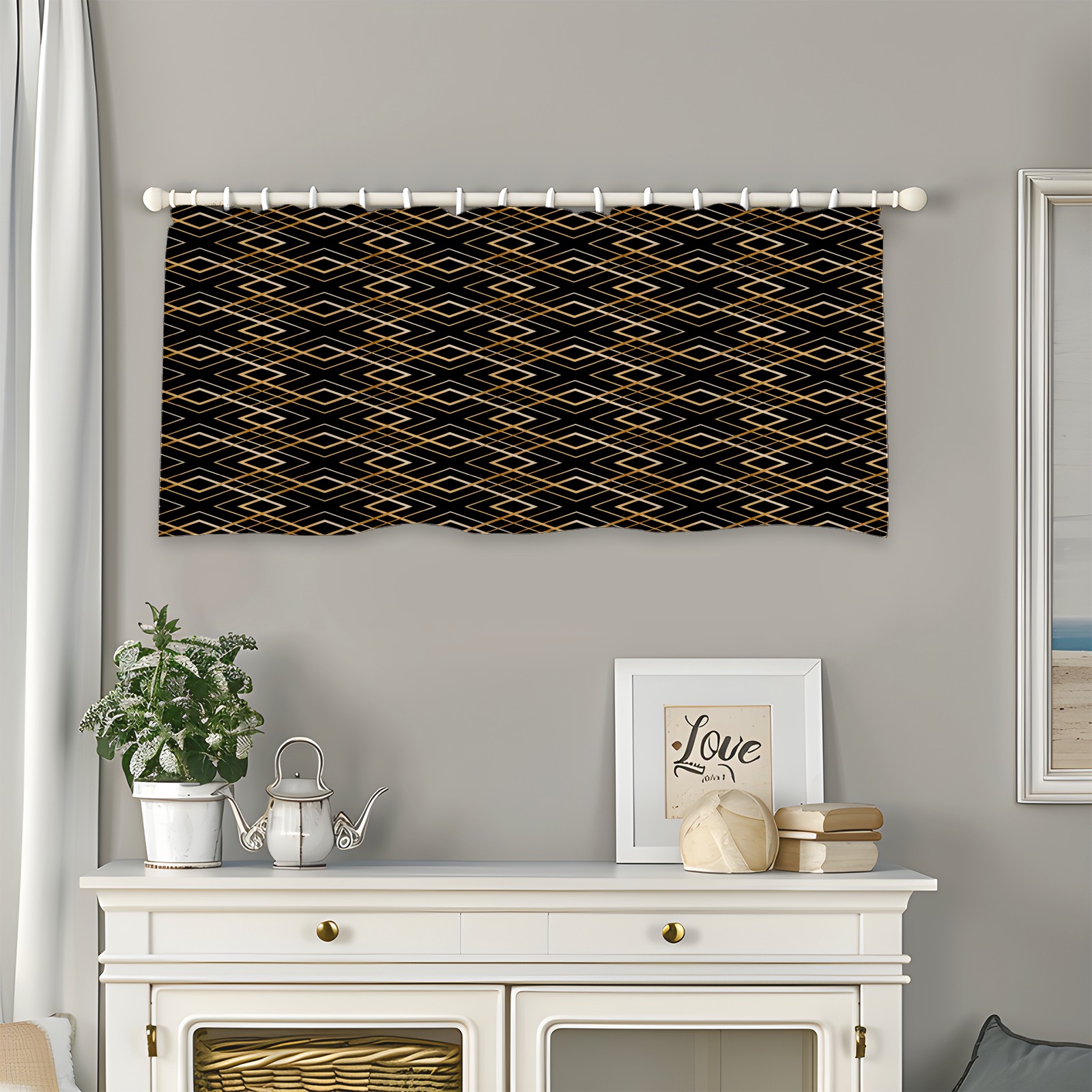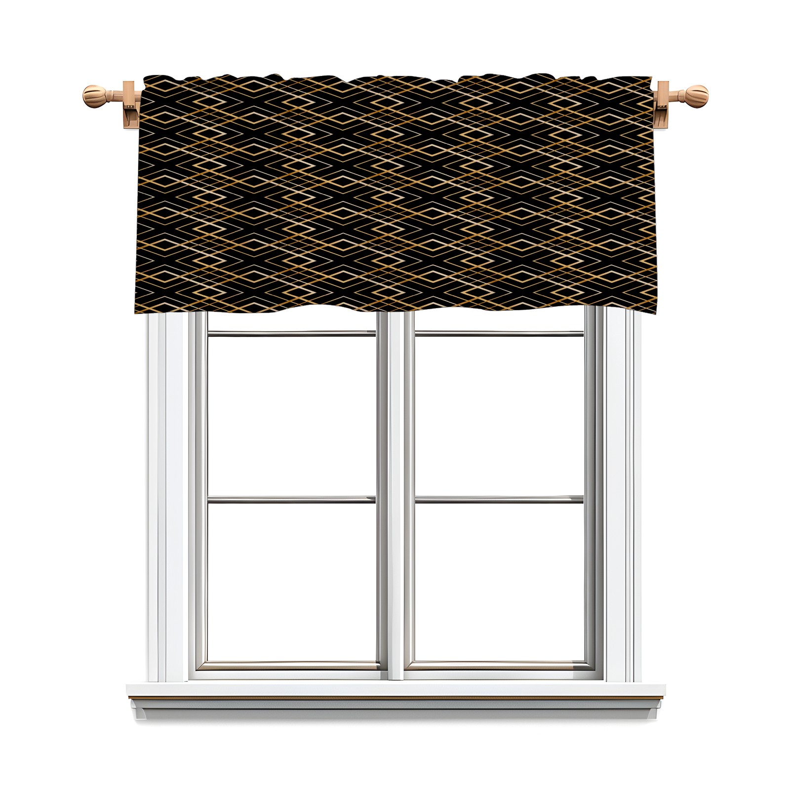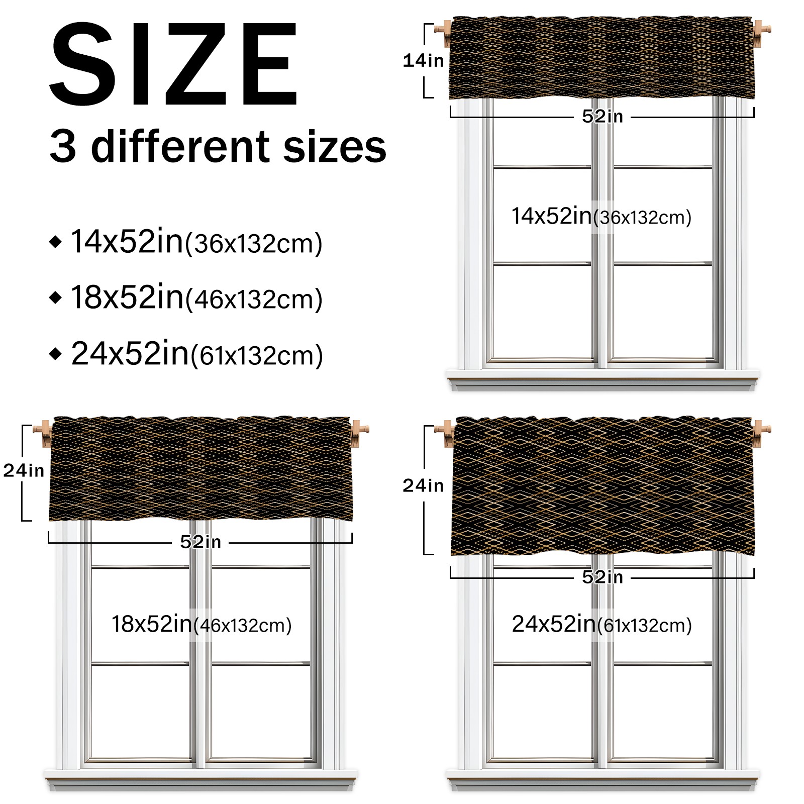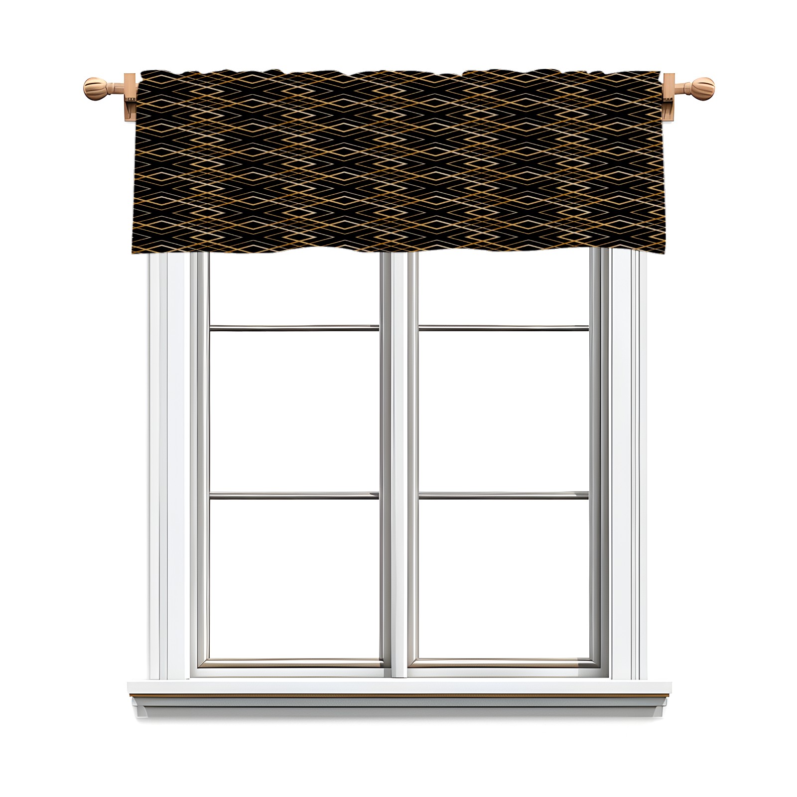 Blackout Curtain Valance for Living Room/Bathroom/Kitchen Valance Rod Pocket Curtain 14 x 52 Inches Black Golden Line Geometry