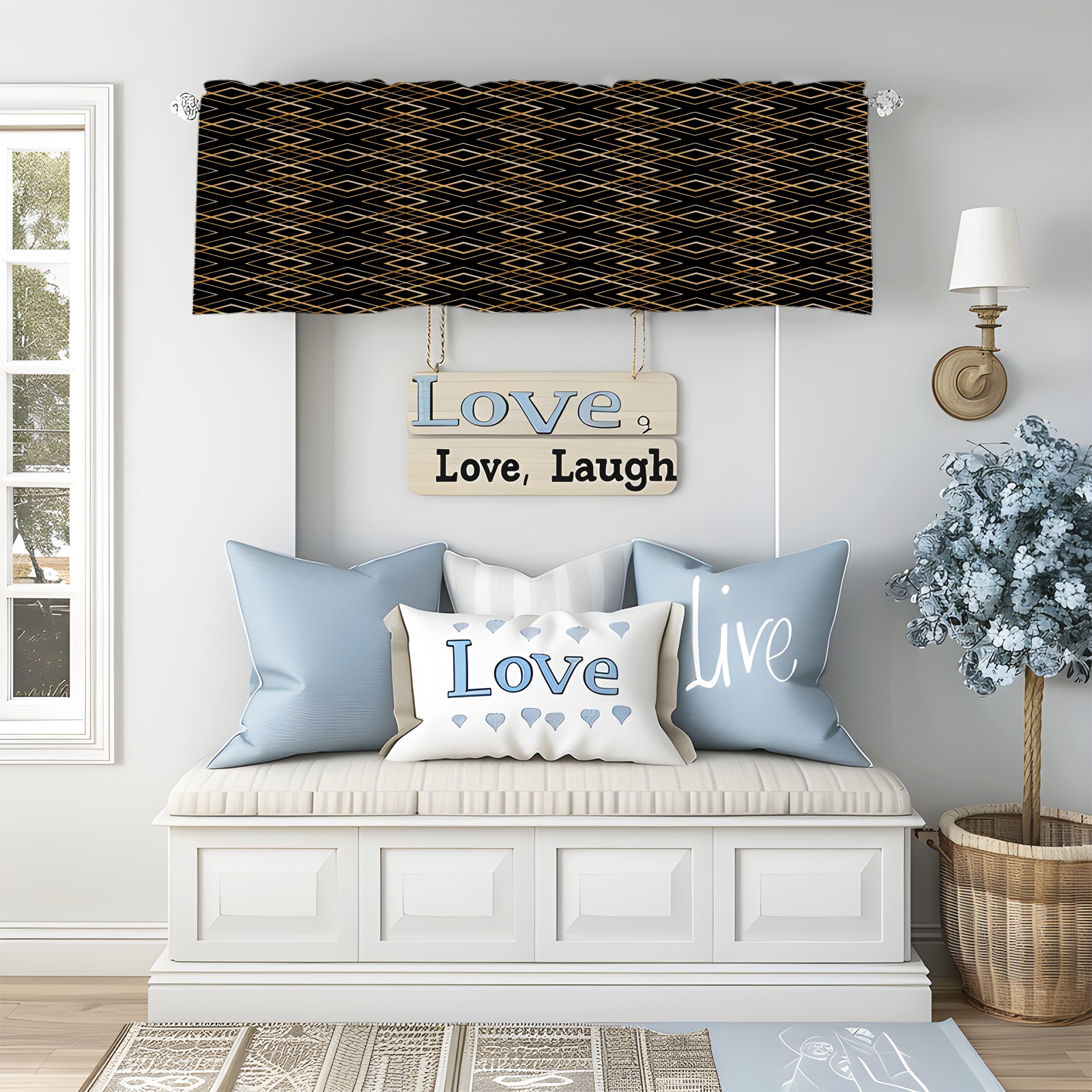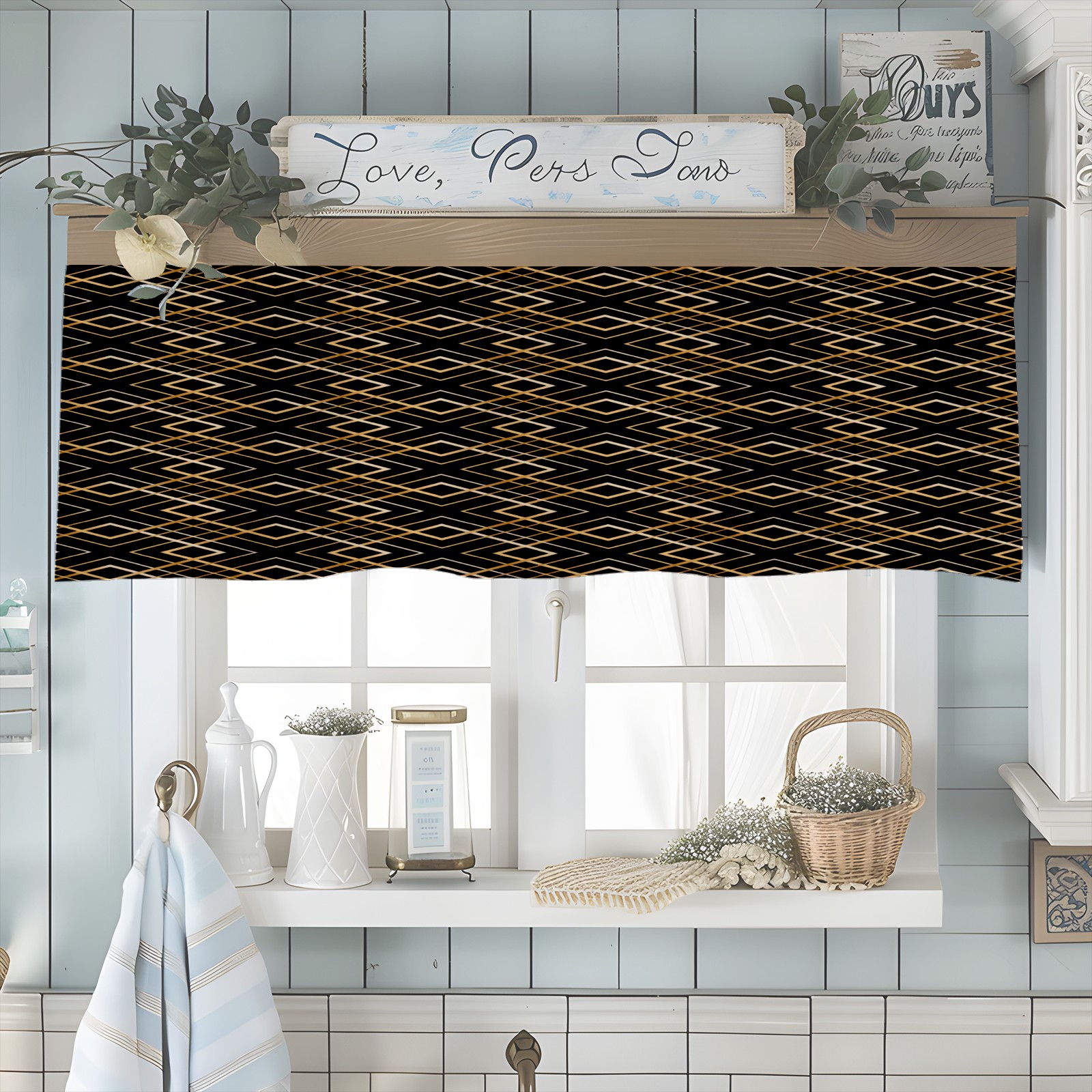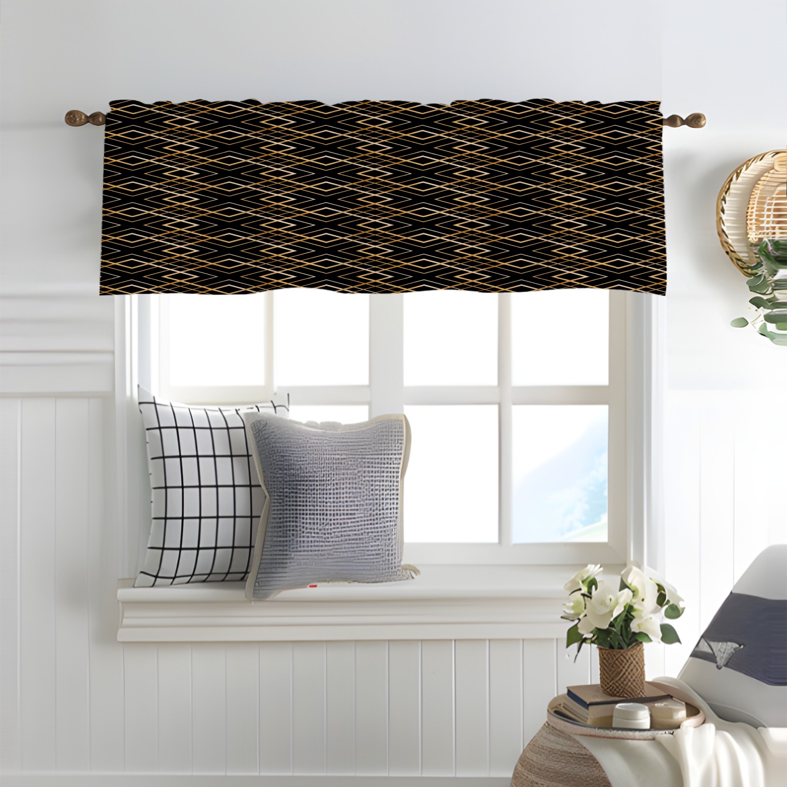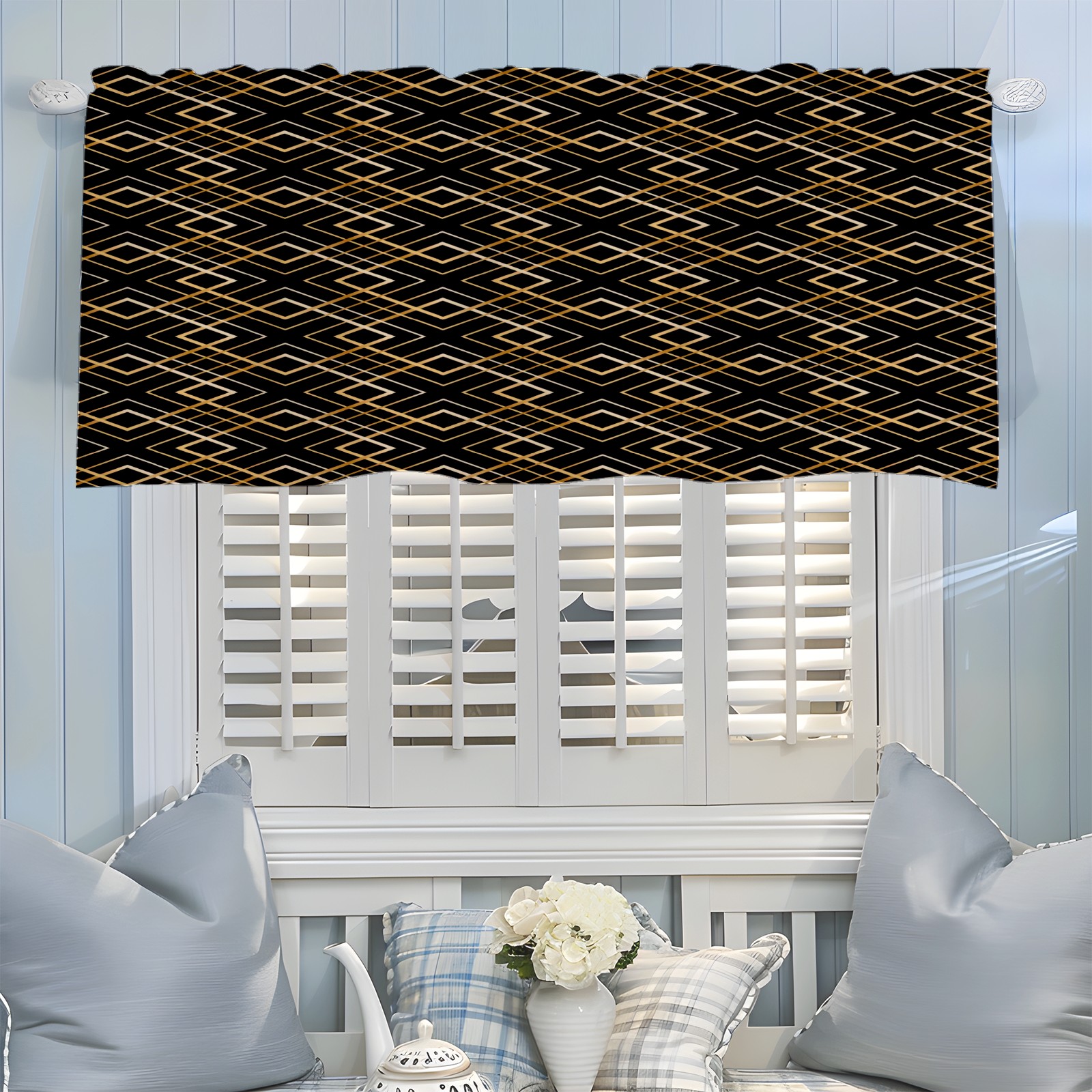 Blackout Curtain Valance for Living Room/Bathroom/Kitchen Valance Rod Pocket Curtain 14 x 52 Inches Black Golden Line Geometry