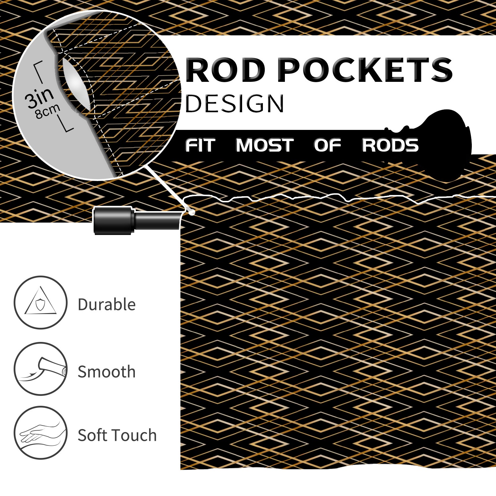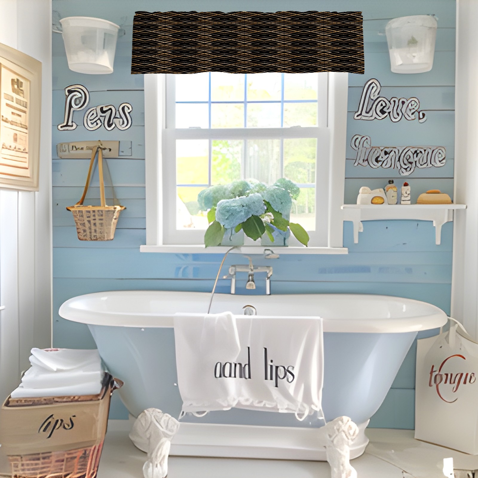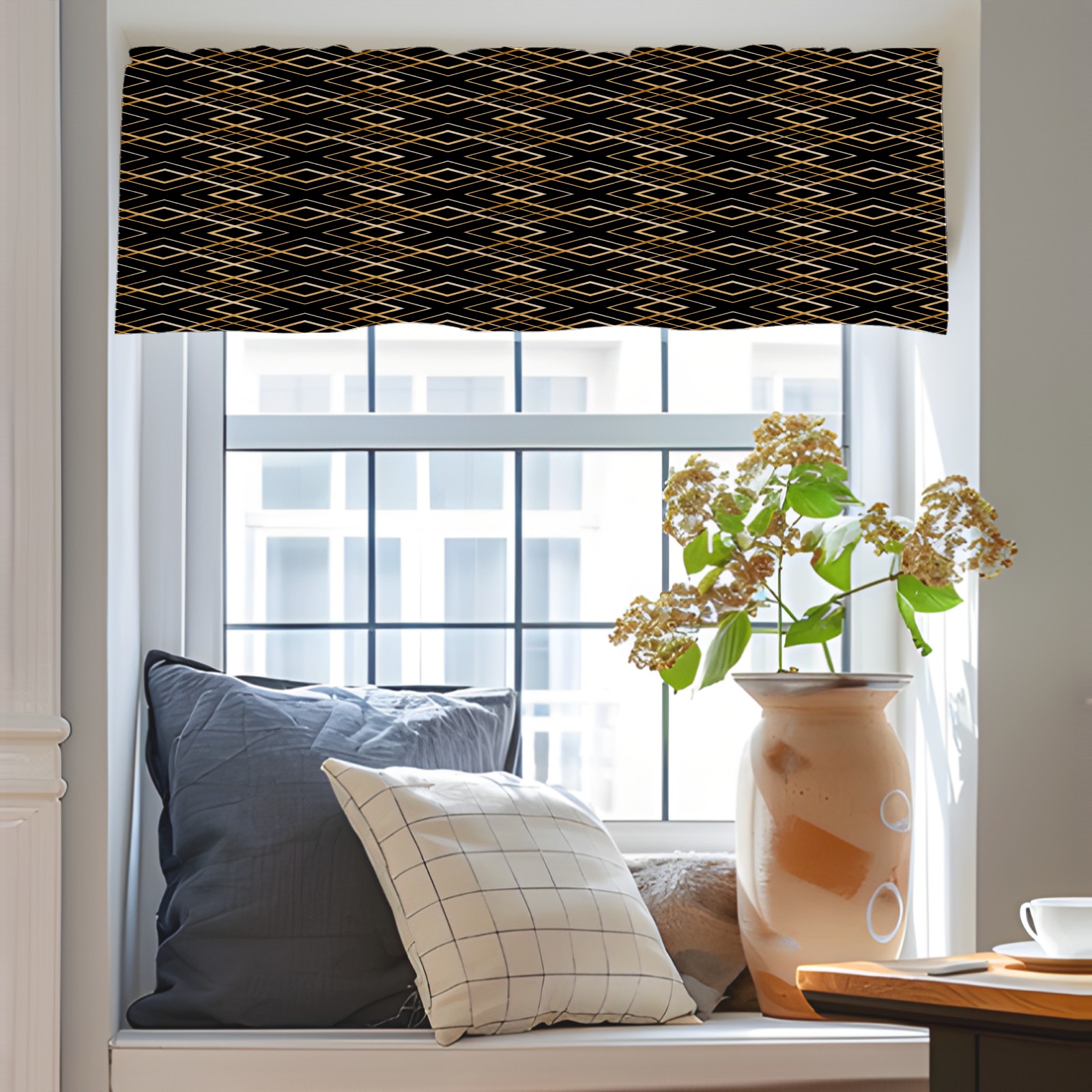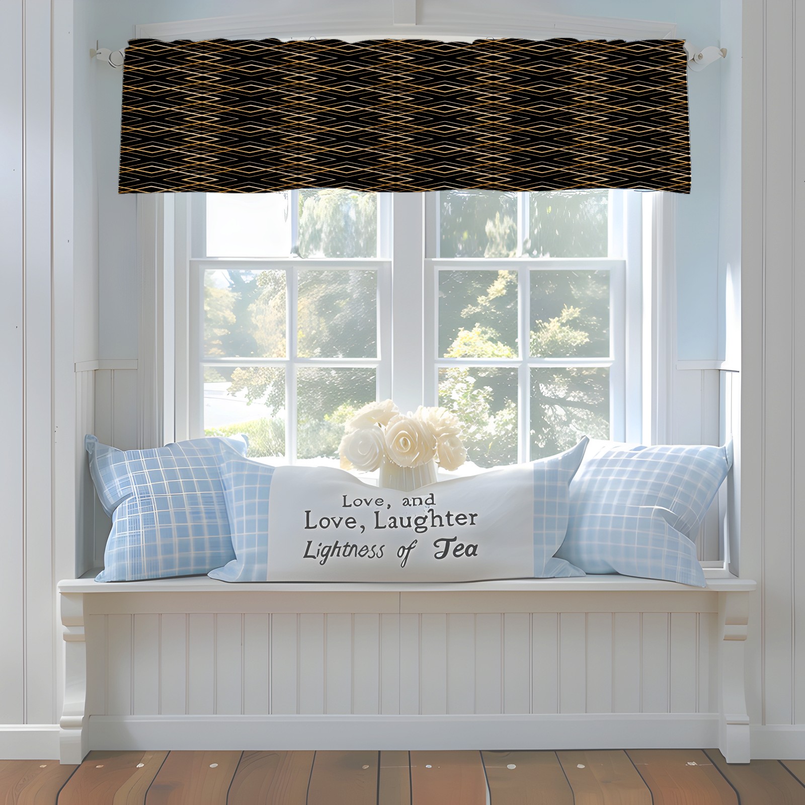 Blackout Curtain Valance for Living Room/Bathroom/Kitchen Valance Rod Pocket Curtain 14 x 52 Inches Black Golden Line Geometry