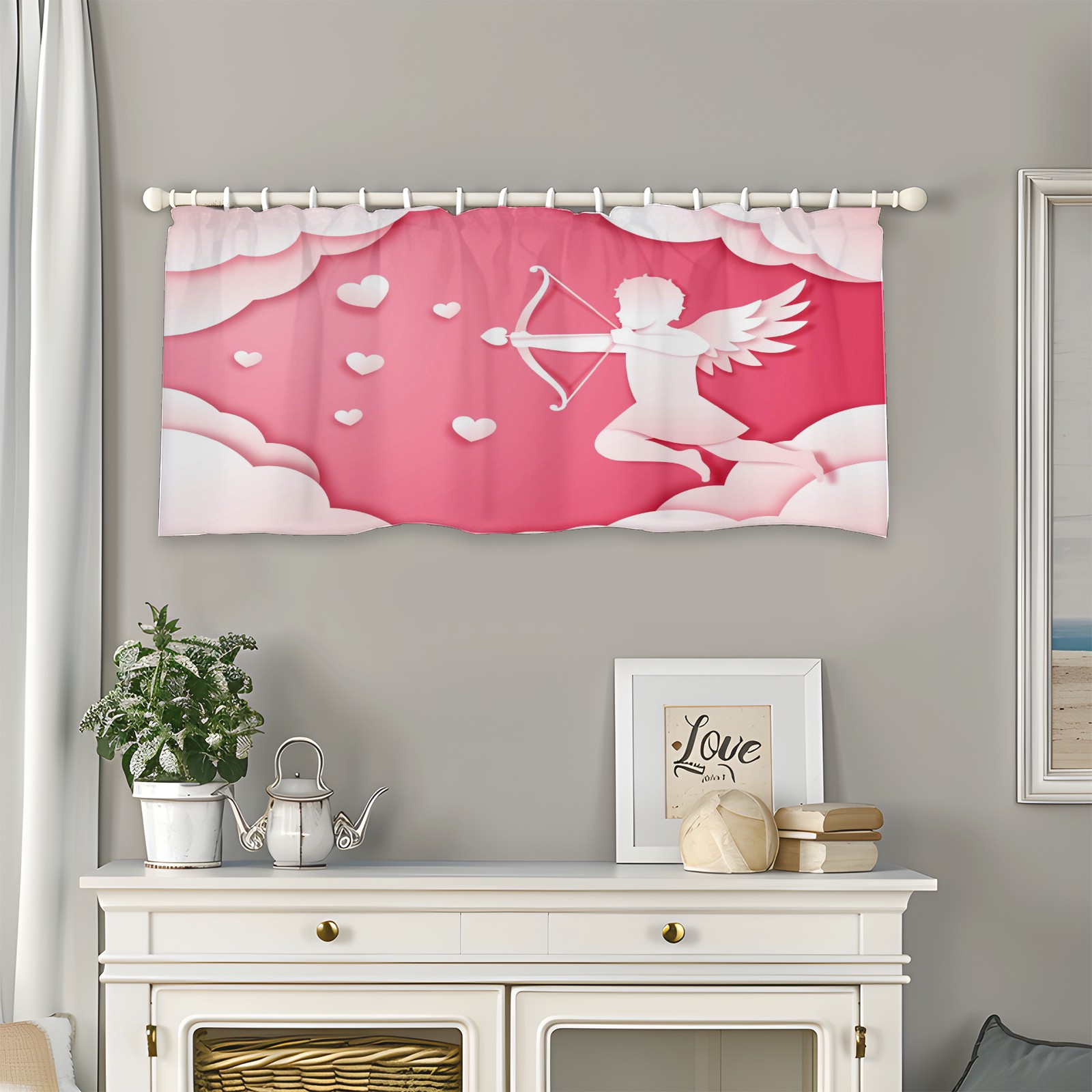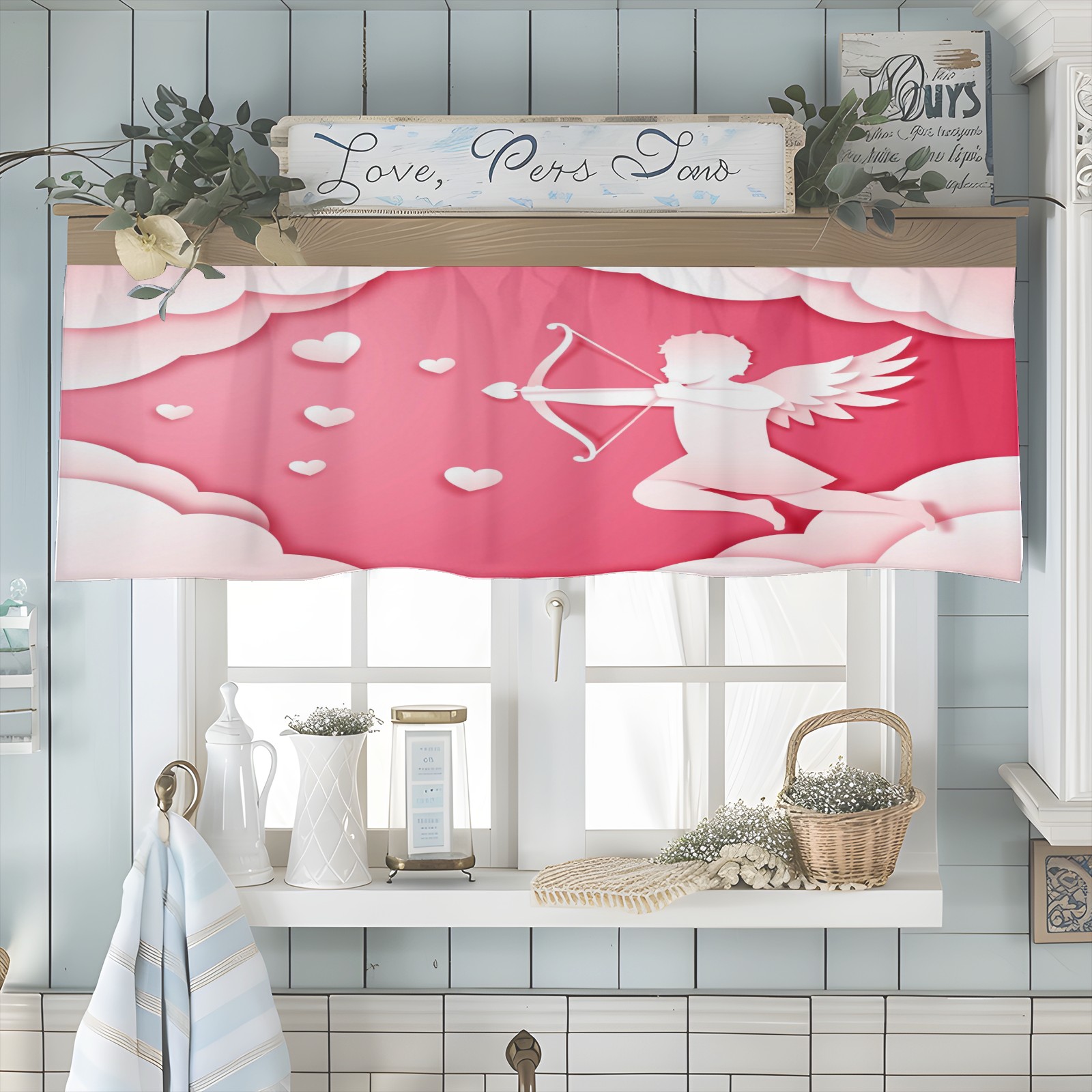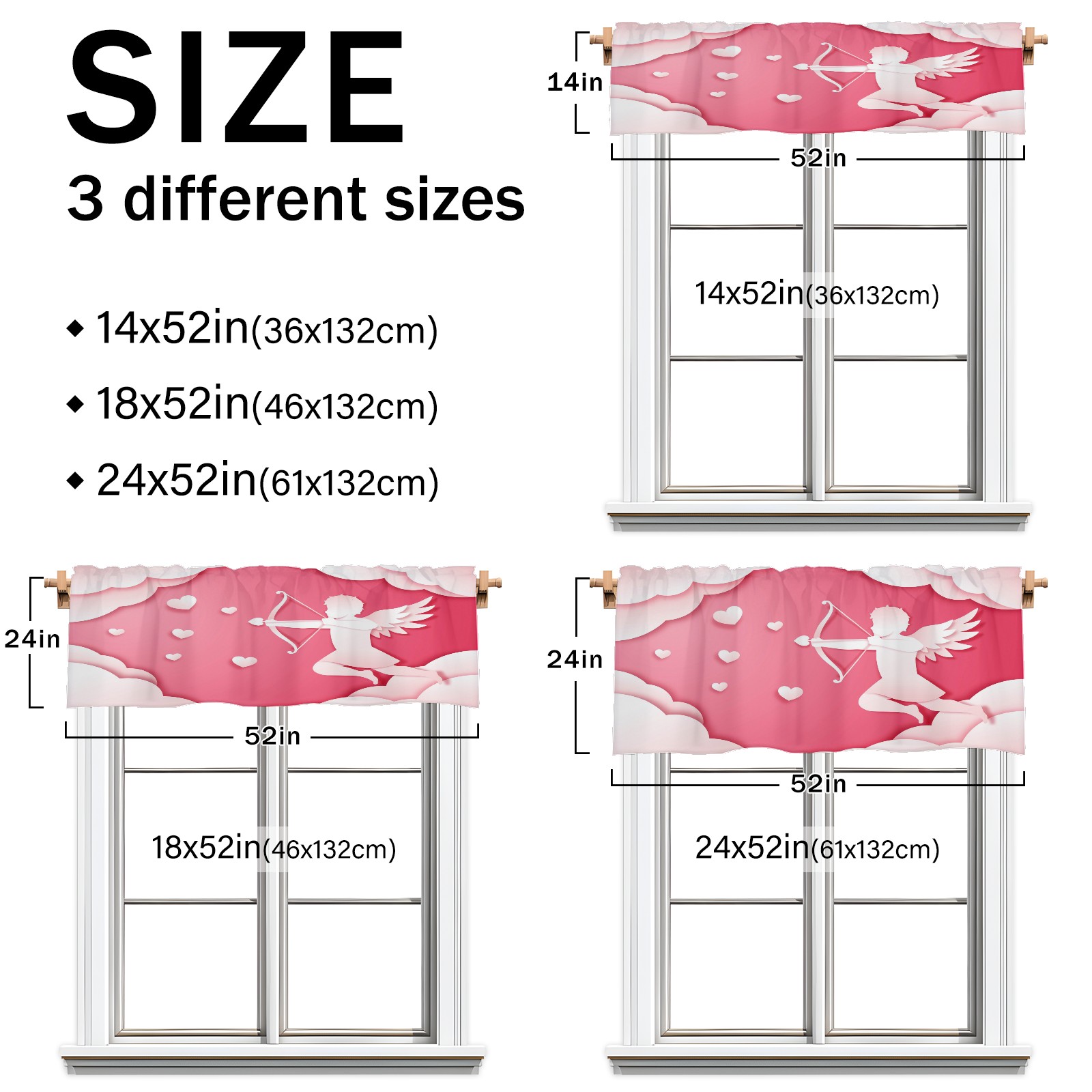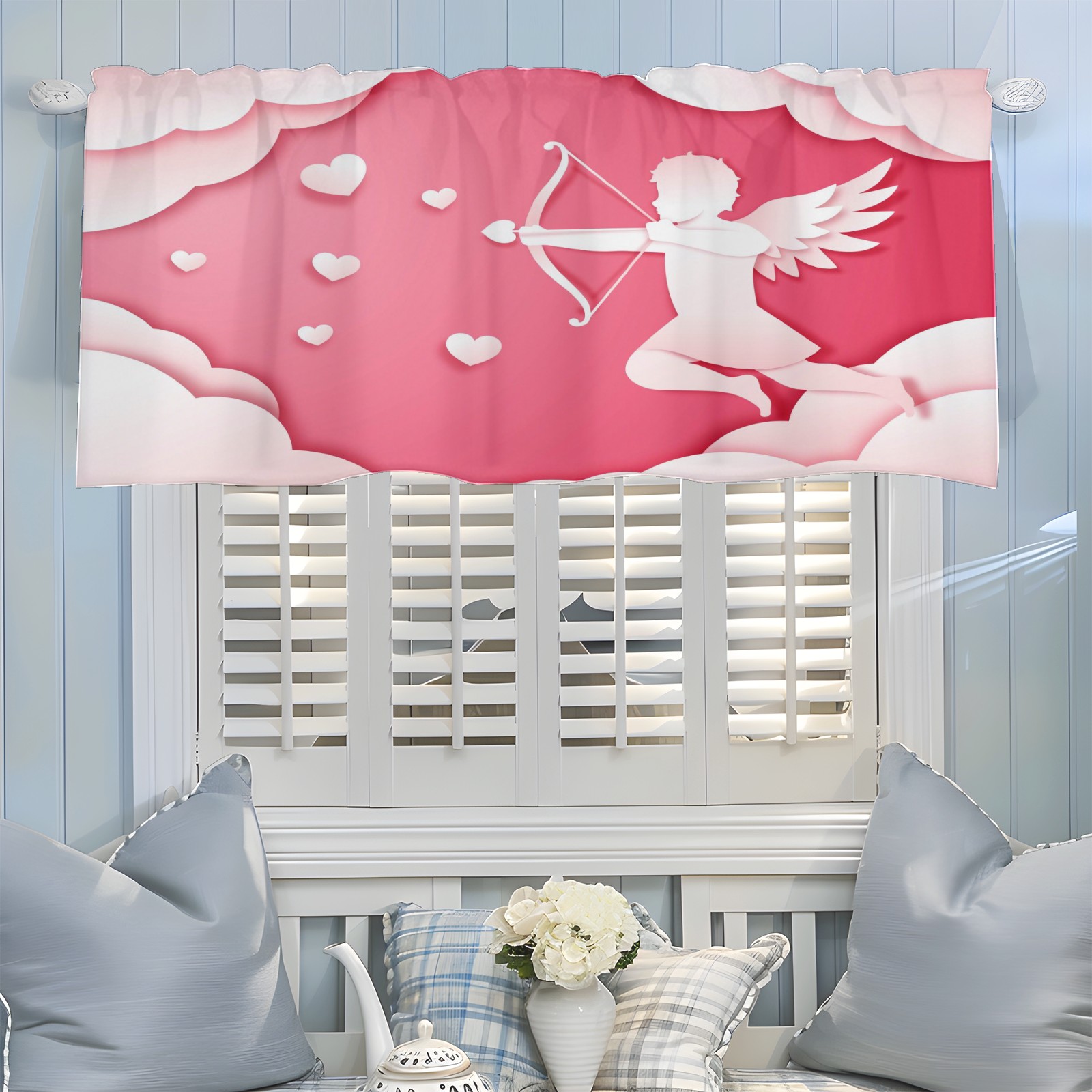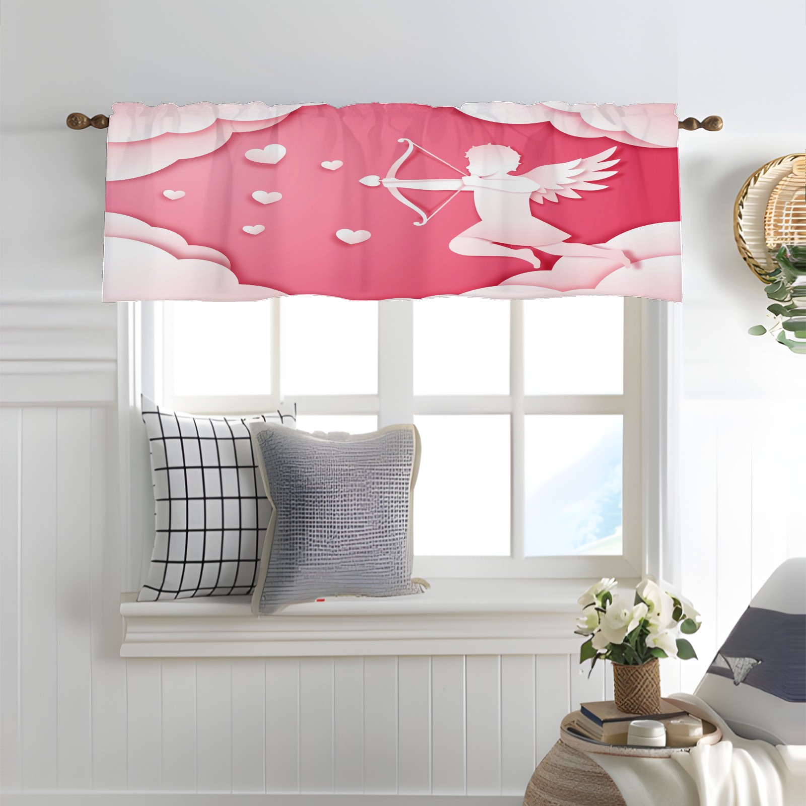 Blackout Curtain Valance for Living Room/Bathroom/Kitchen Valance Rod Pocket Curtain 14 x 52 Inches Angel Love Paper Style
