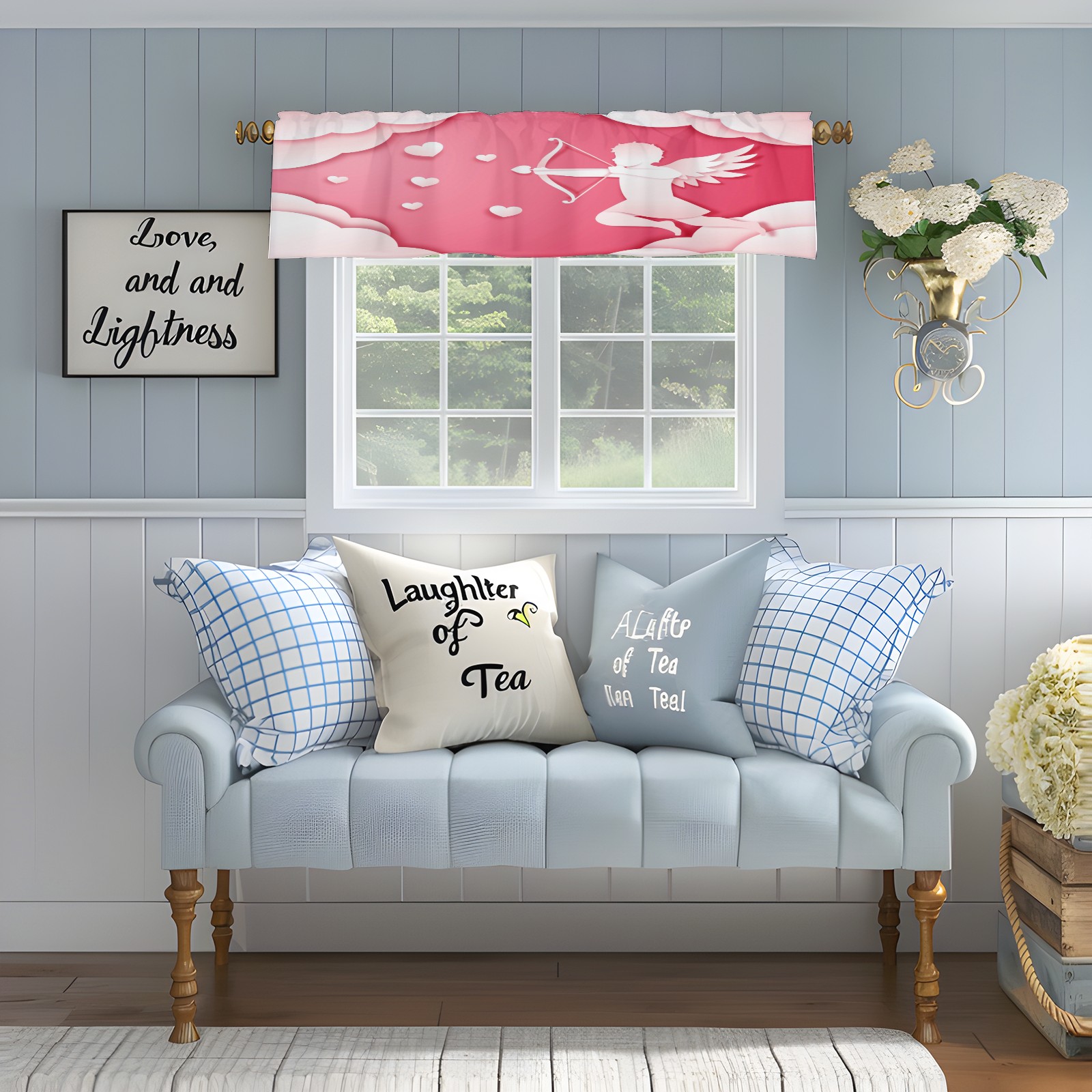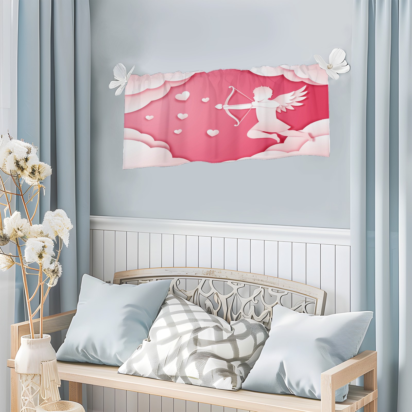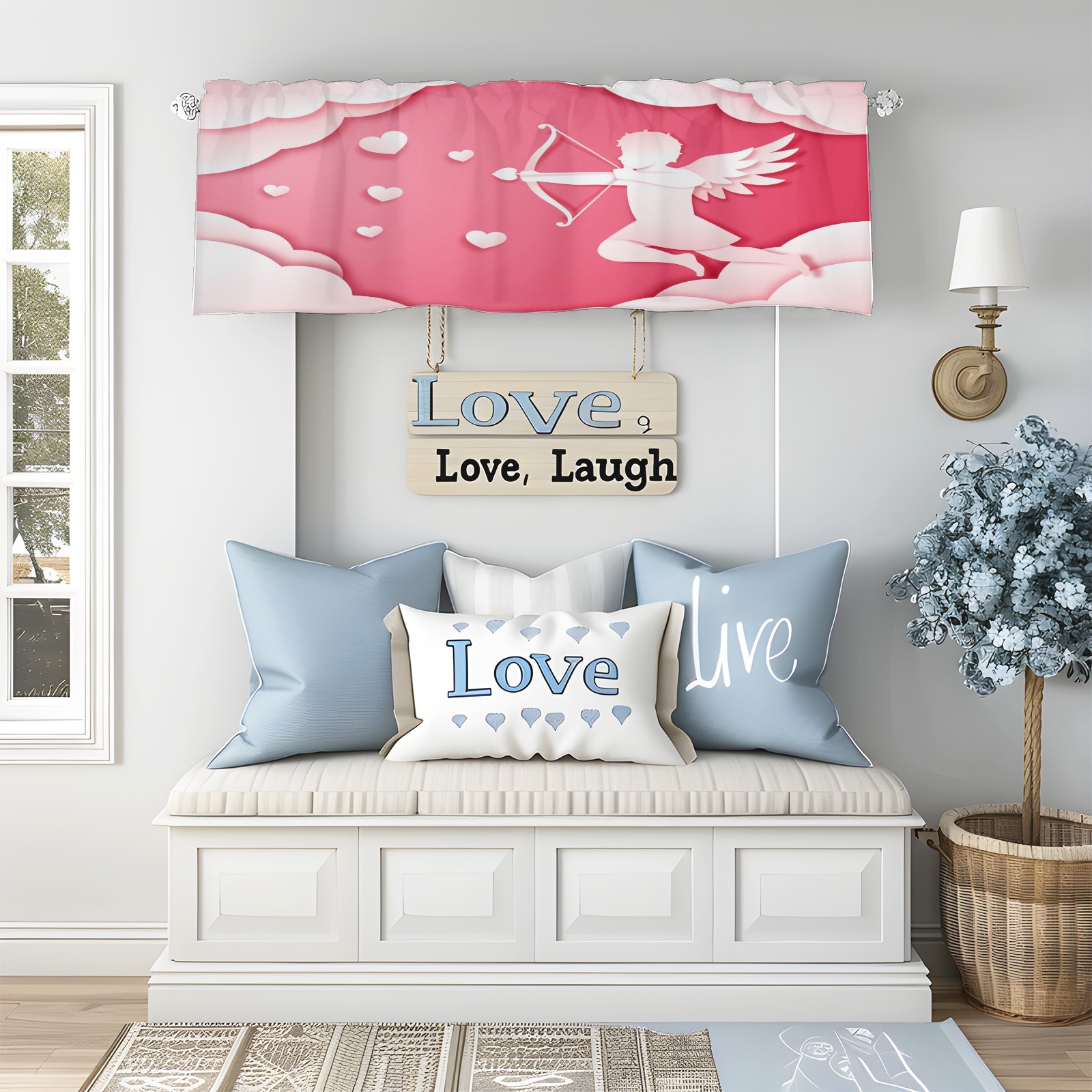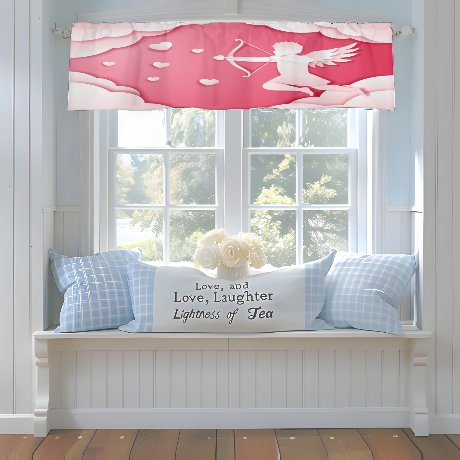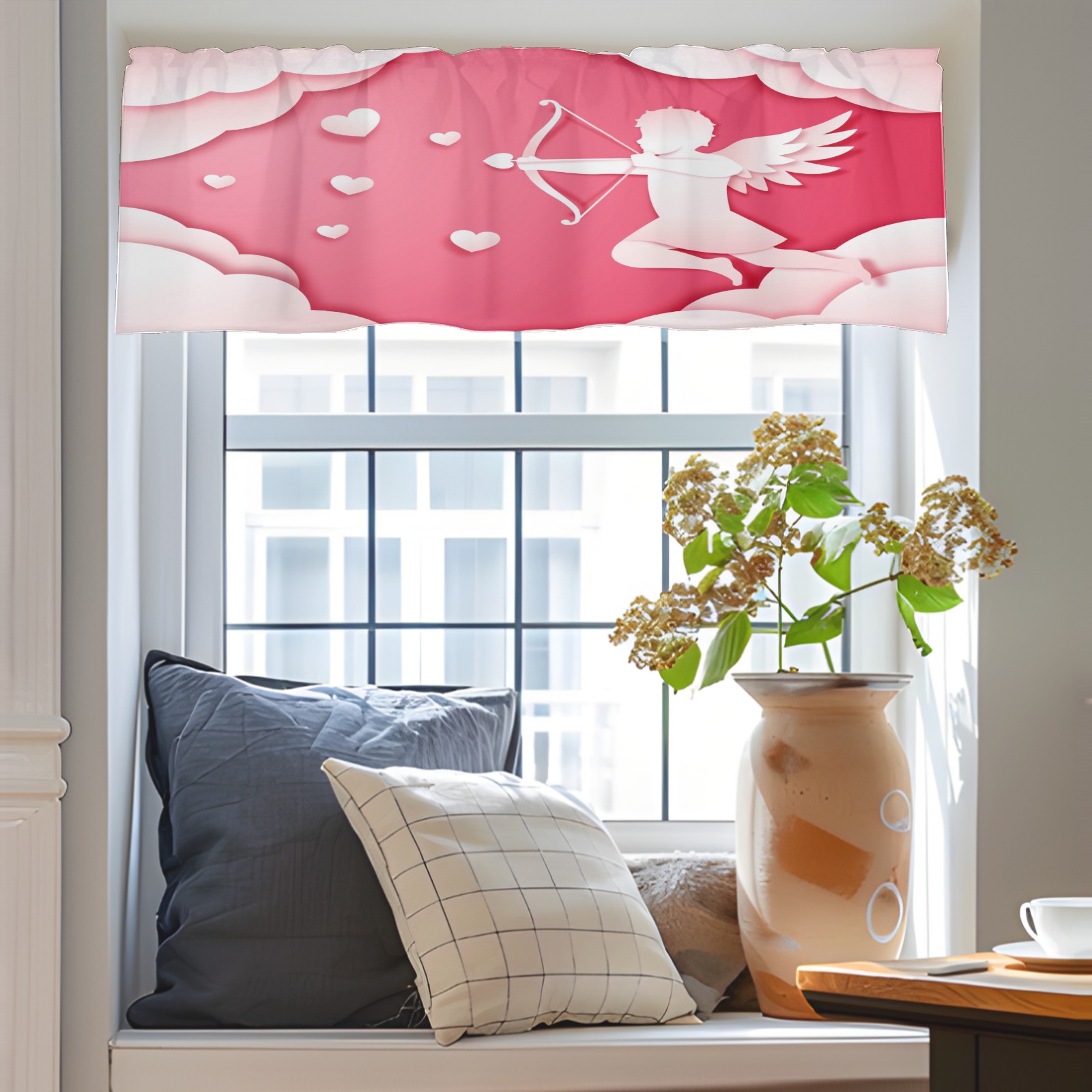 Blackout Curtain Valance for Living Room/Bathroom/Kitchen Valance Rod Pocket Curtain 14 x 52 Inches Angel Love Paper Style