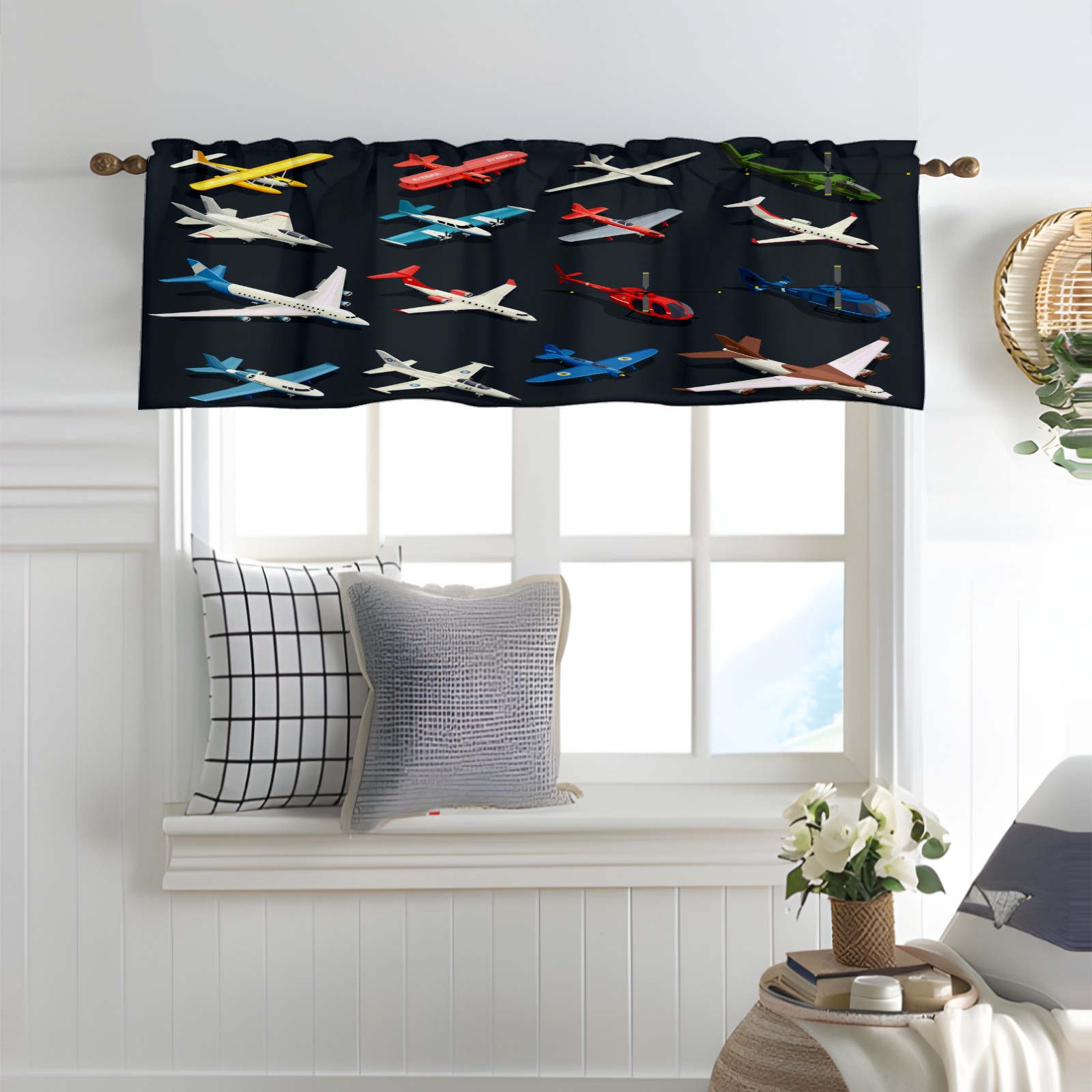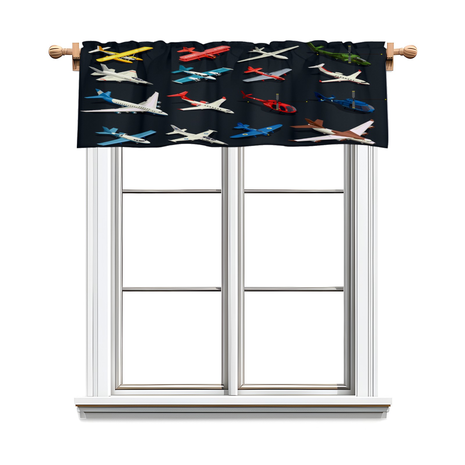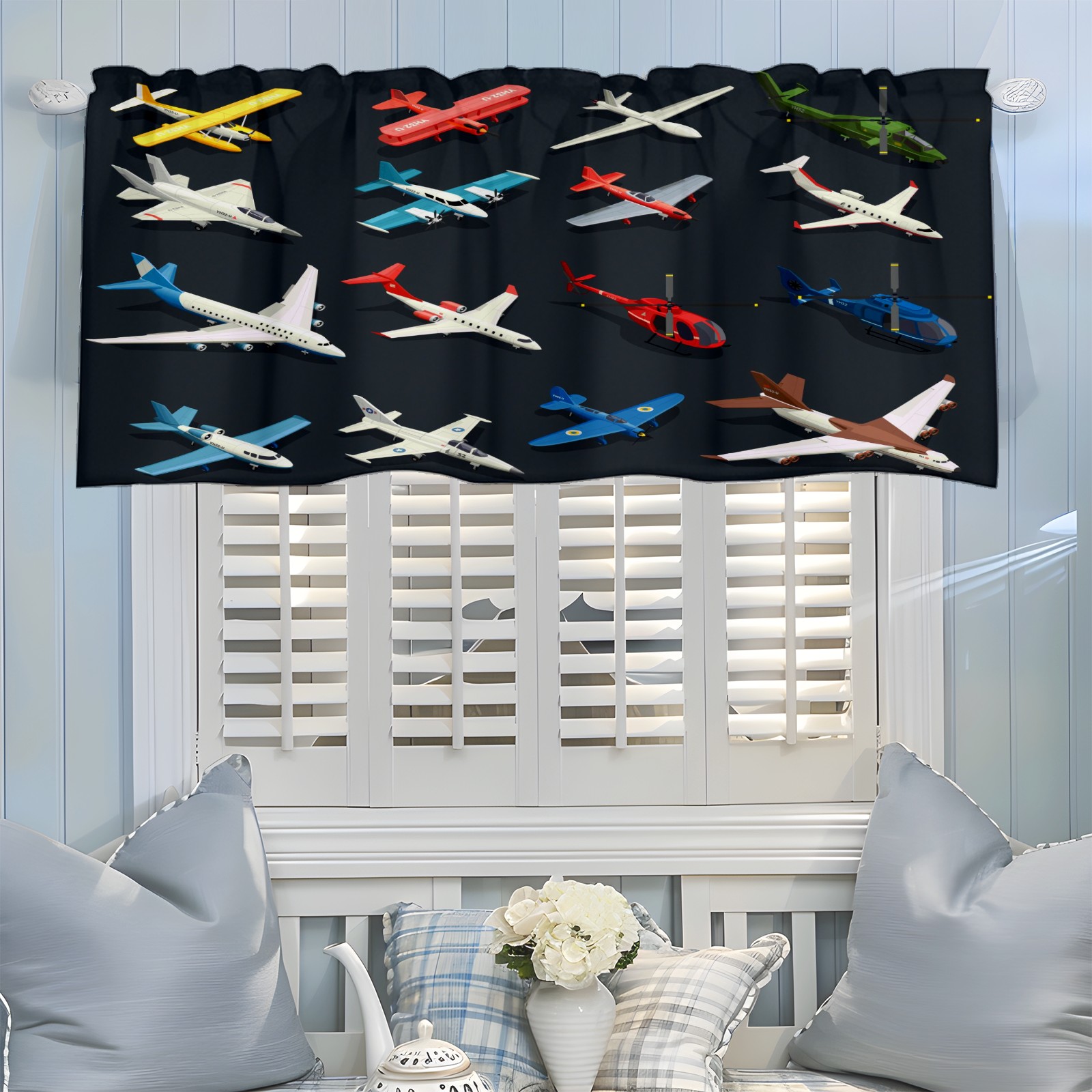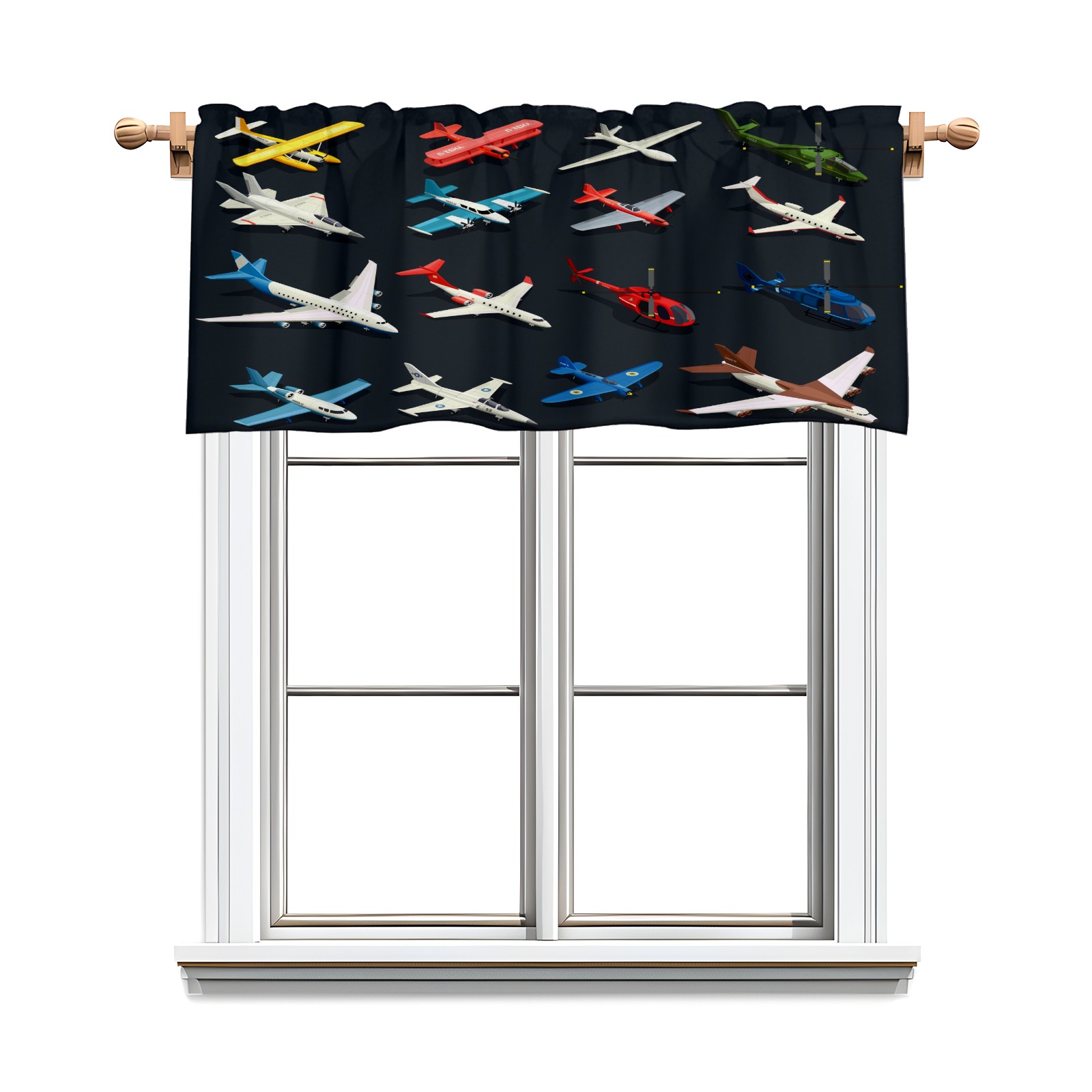 Blackout Curtain Valance for Living Room/Bathroom/Kitchen Valance Rod Pocket Curtain 14 x 52 Inches Airplanes Helicopters Model-Colorful Toys