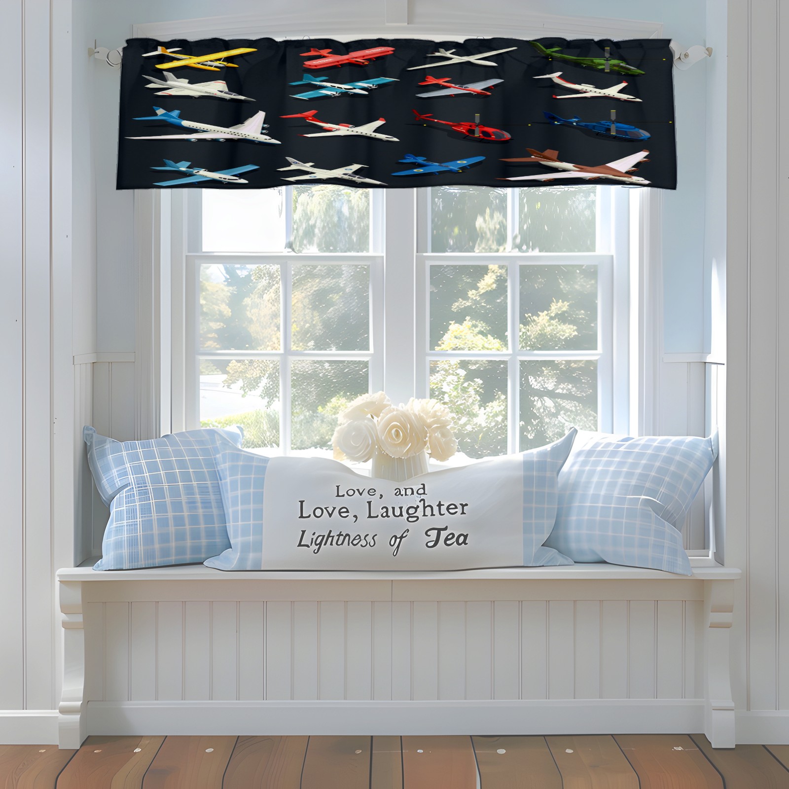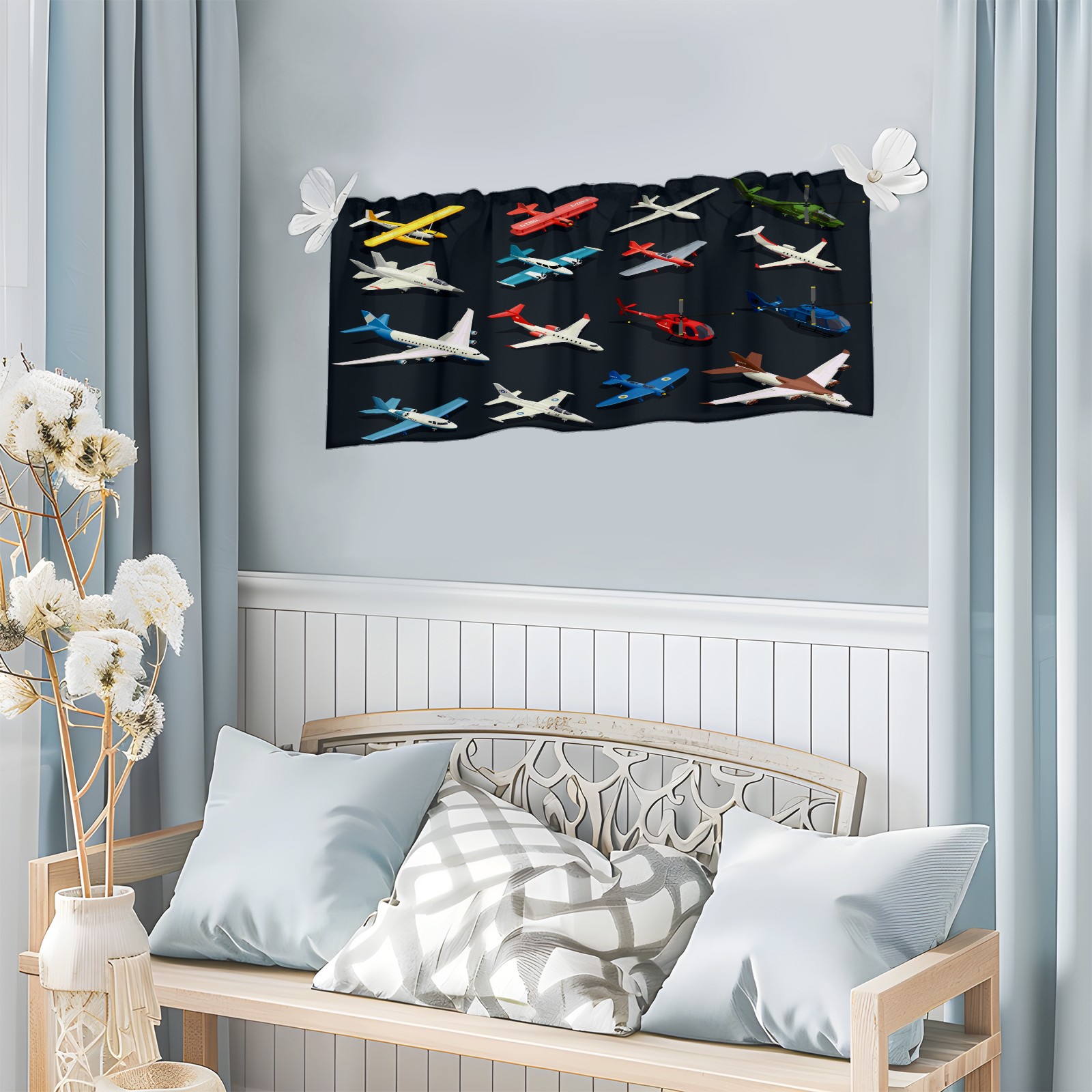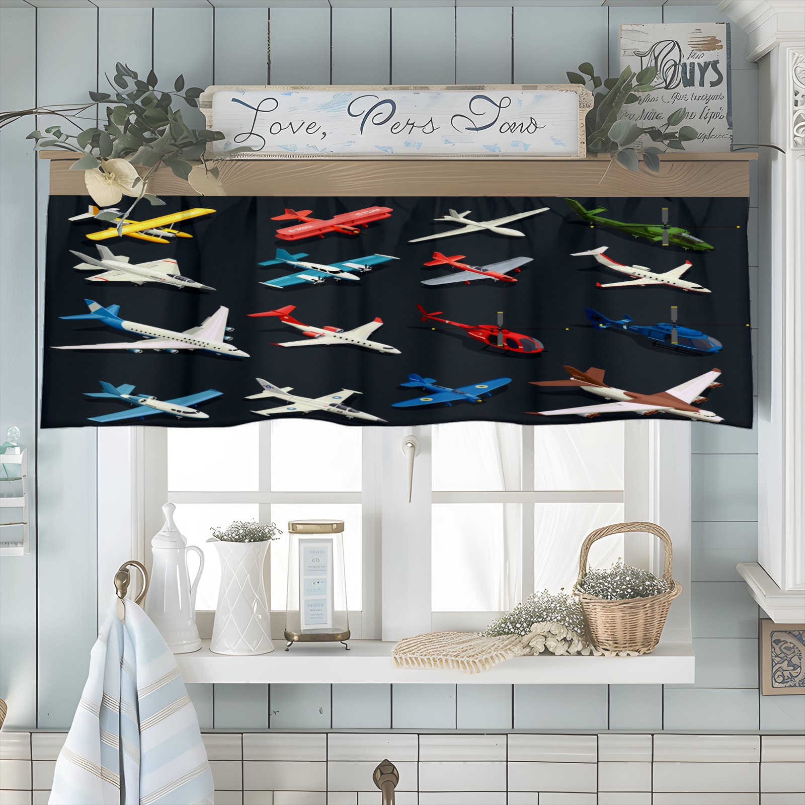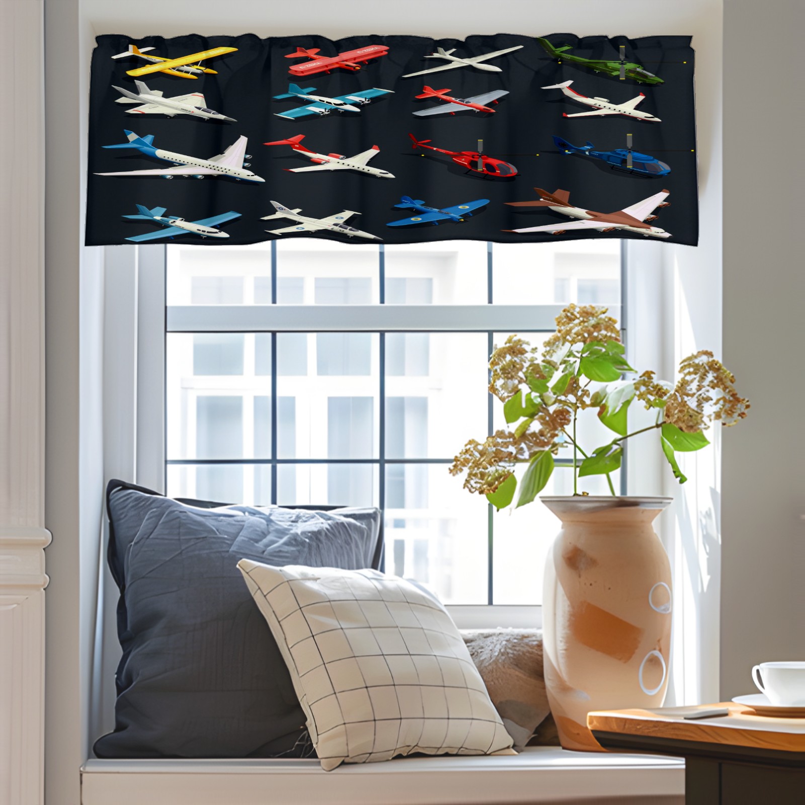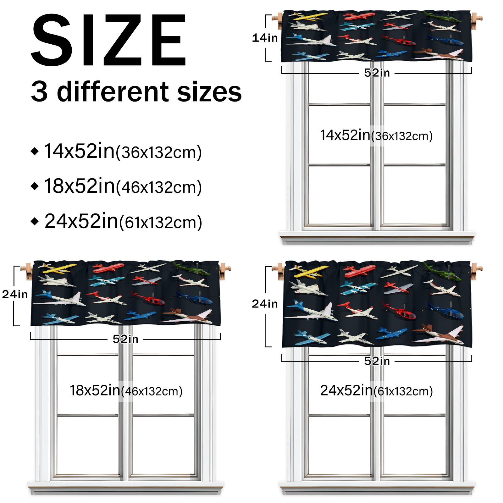 Blackout Curtain Valance for Living Room/Bathroom/Kitchen Valance Rod Pocket Curtain 14 x 52 Inches Airplanes Helicopters Model-Colorful Toys