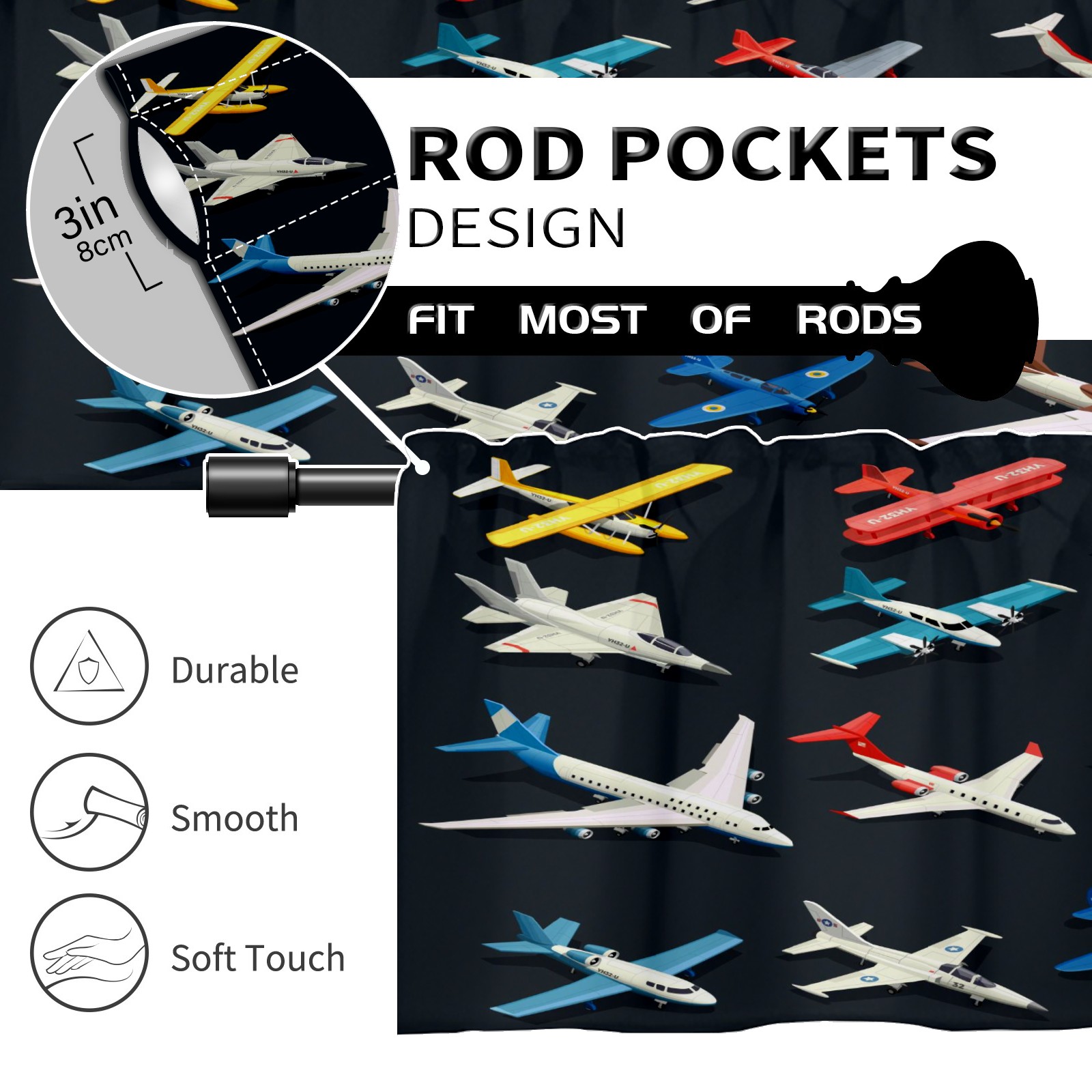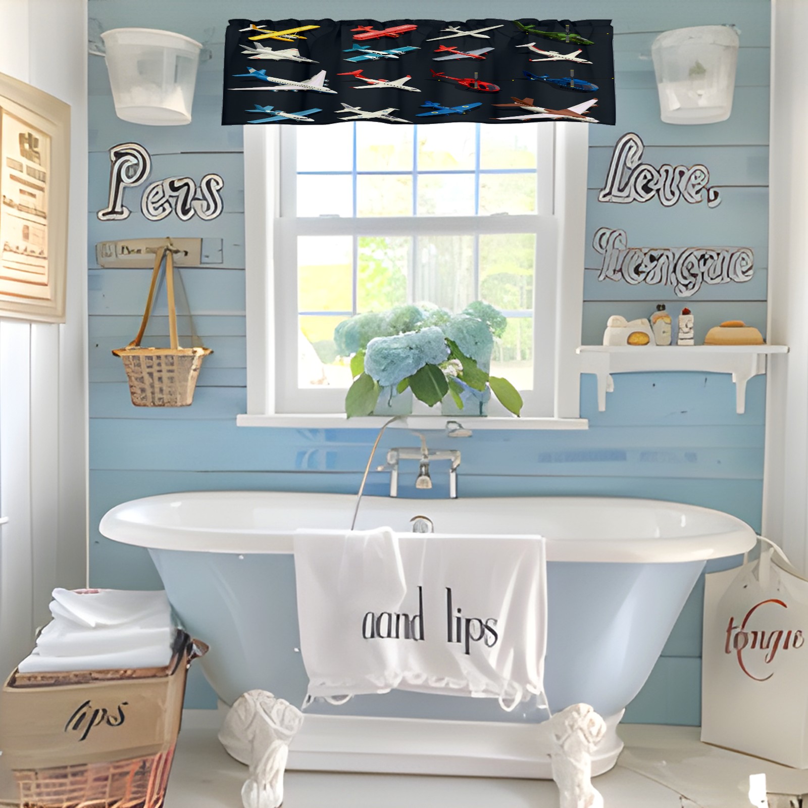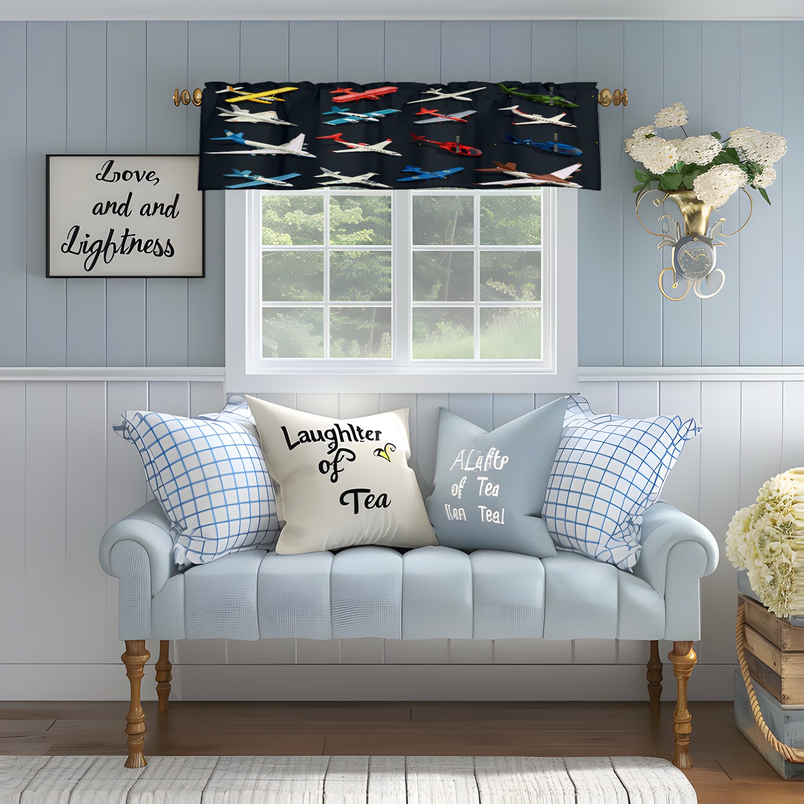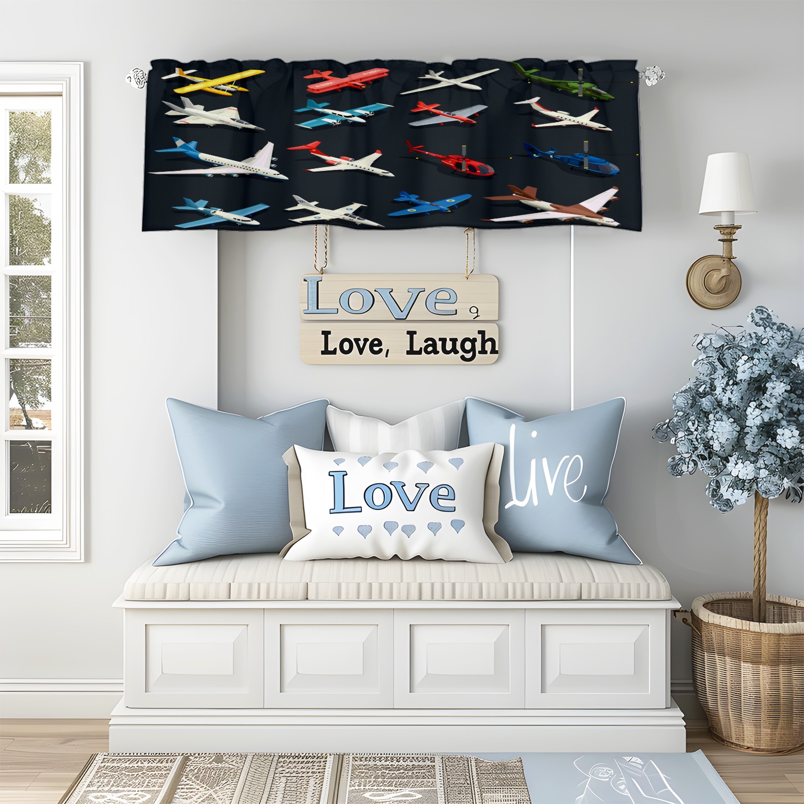 Blackout Curtain Valance for Living Room/Bathroom/Kitchen Valance Rod Pocket Curtain 14 x 52 Inches Airplanes Helicopters Model-Colorful Toys