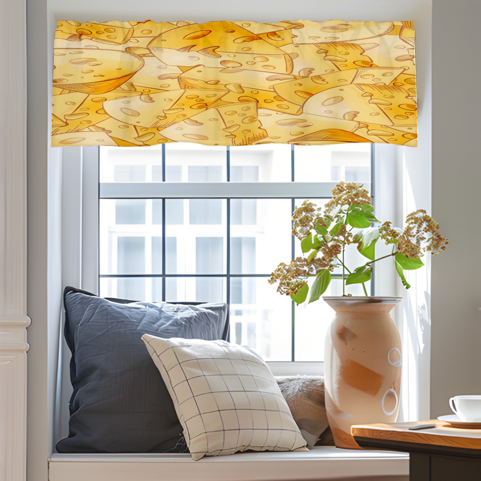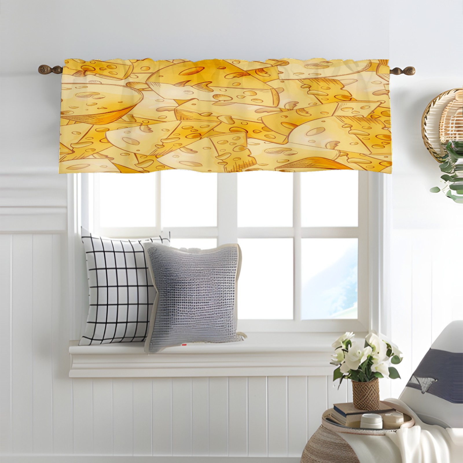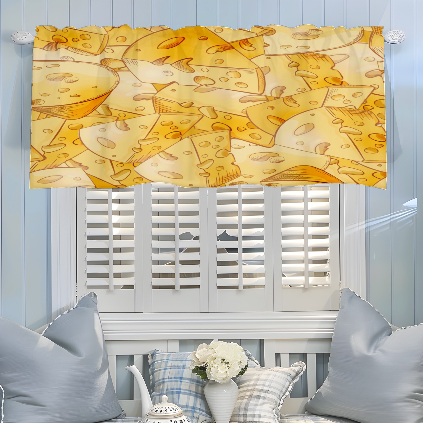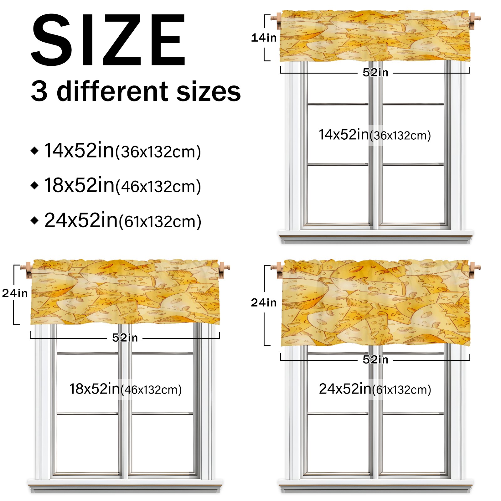 Blackout Curtain Valance for Living Room/Bathroom/Kitchen Valance Rod Pocket Curtain 14 x 52 Inches Yellow Cheese Slices