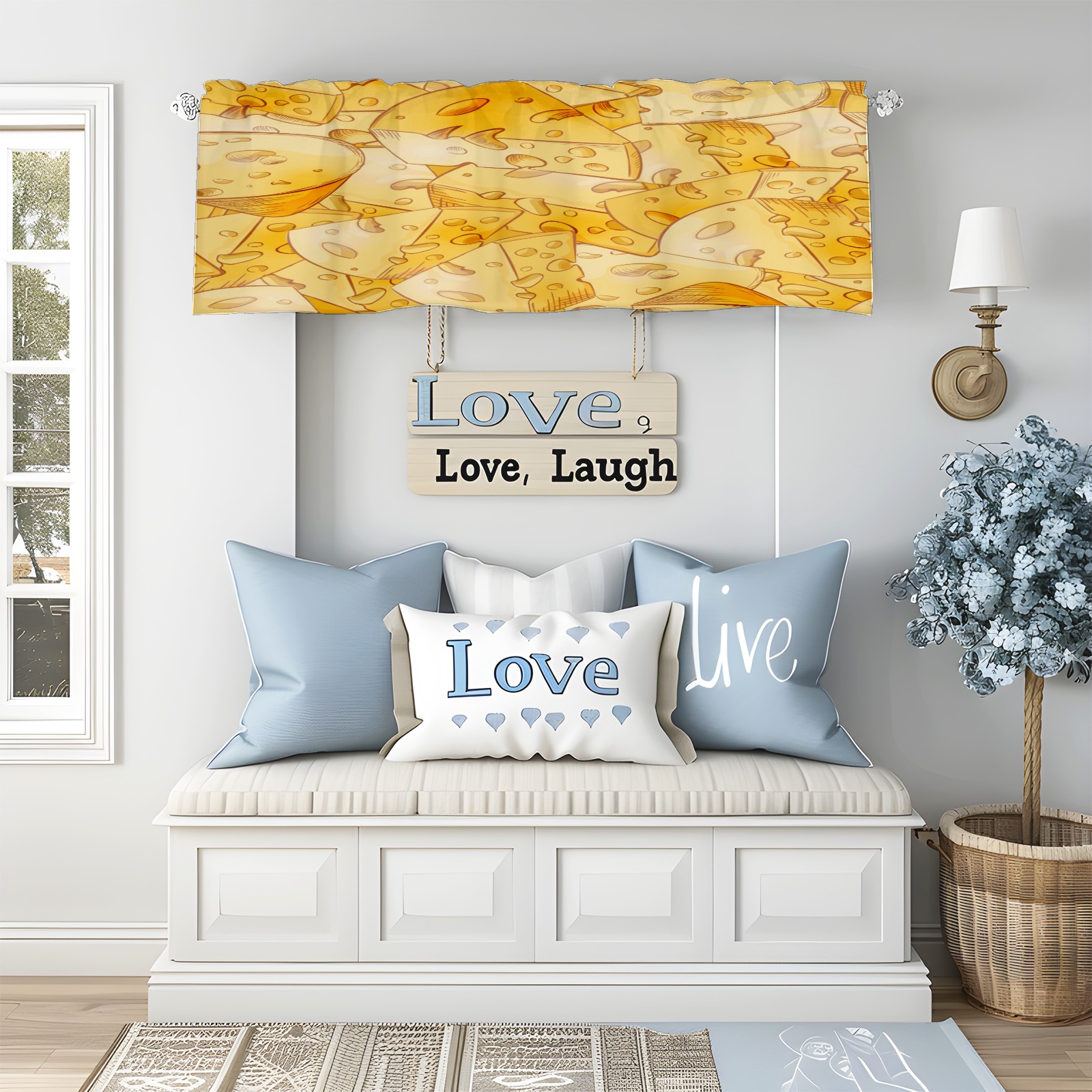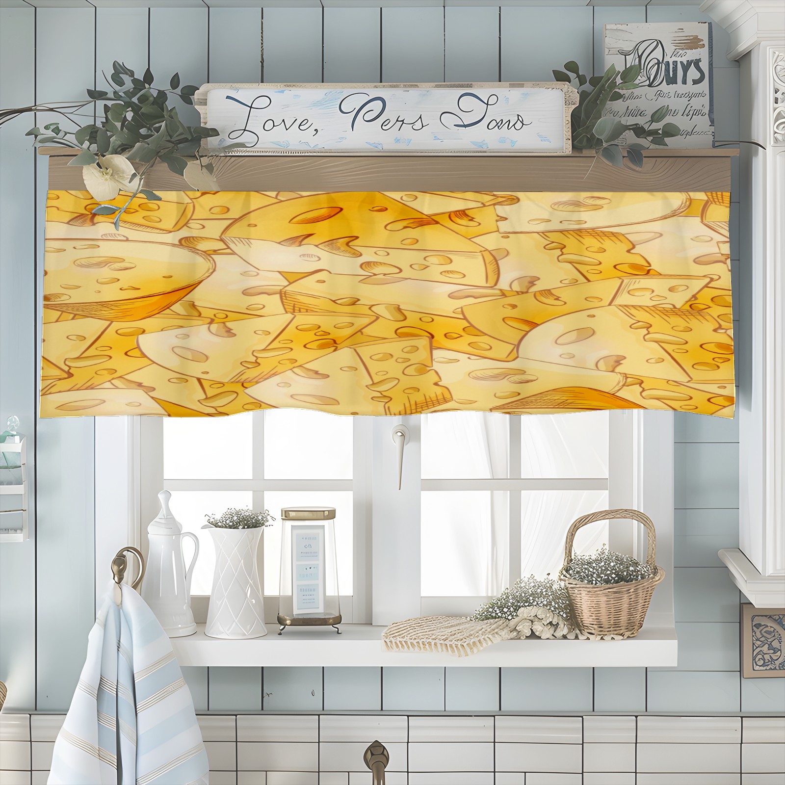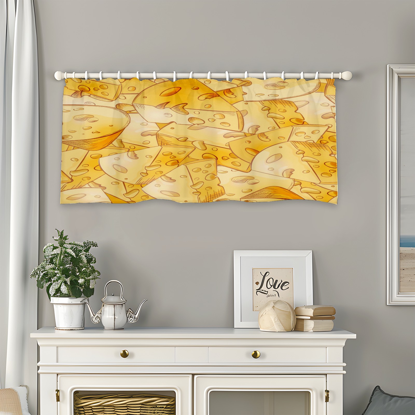 Blackout Curtain Valance for Living Room/Bathroom/Kitchen Valance Rod Pocket Curtain 14 x 52 Inches Yellow Cheese Slices