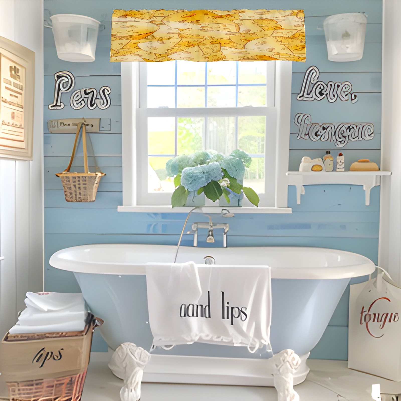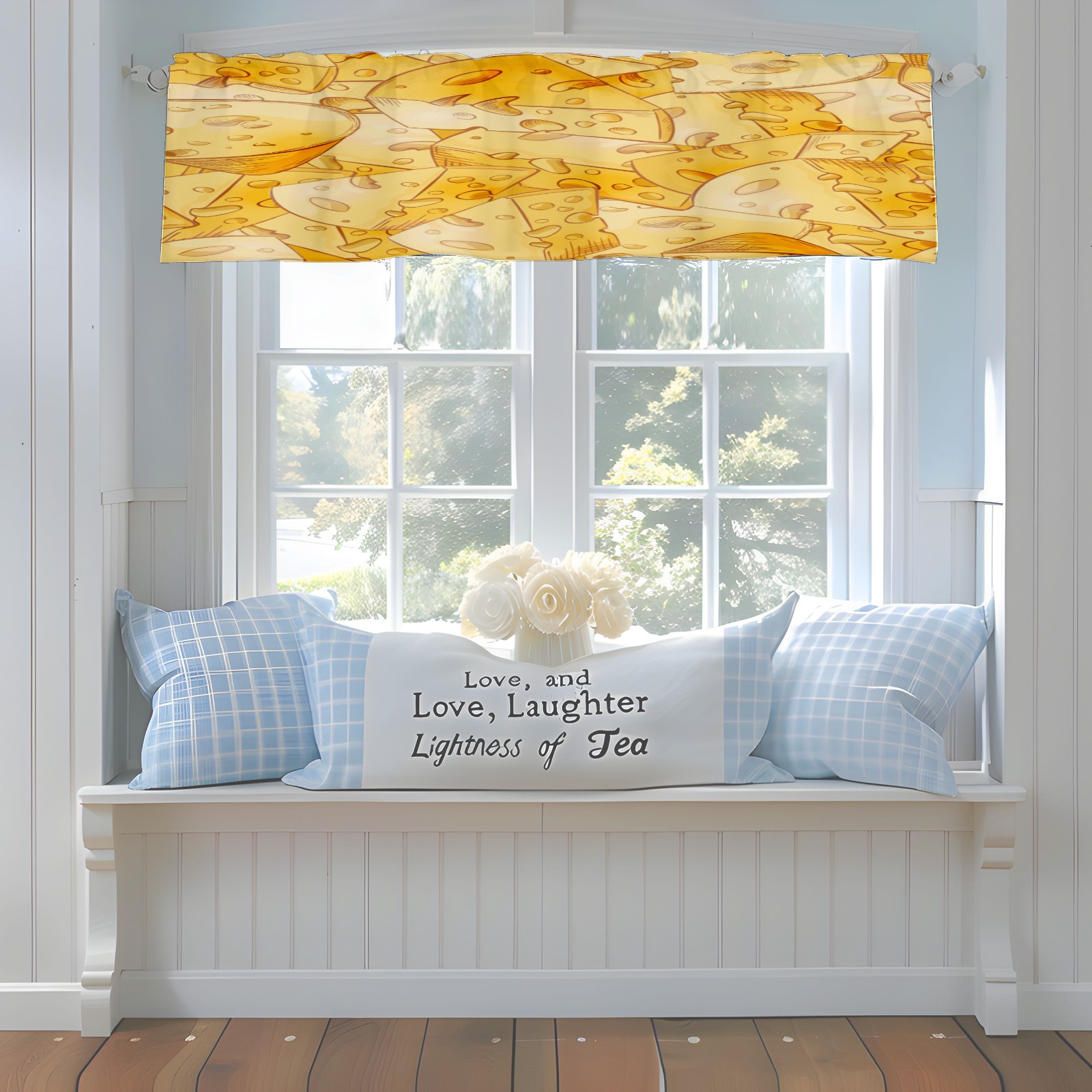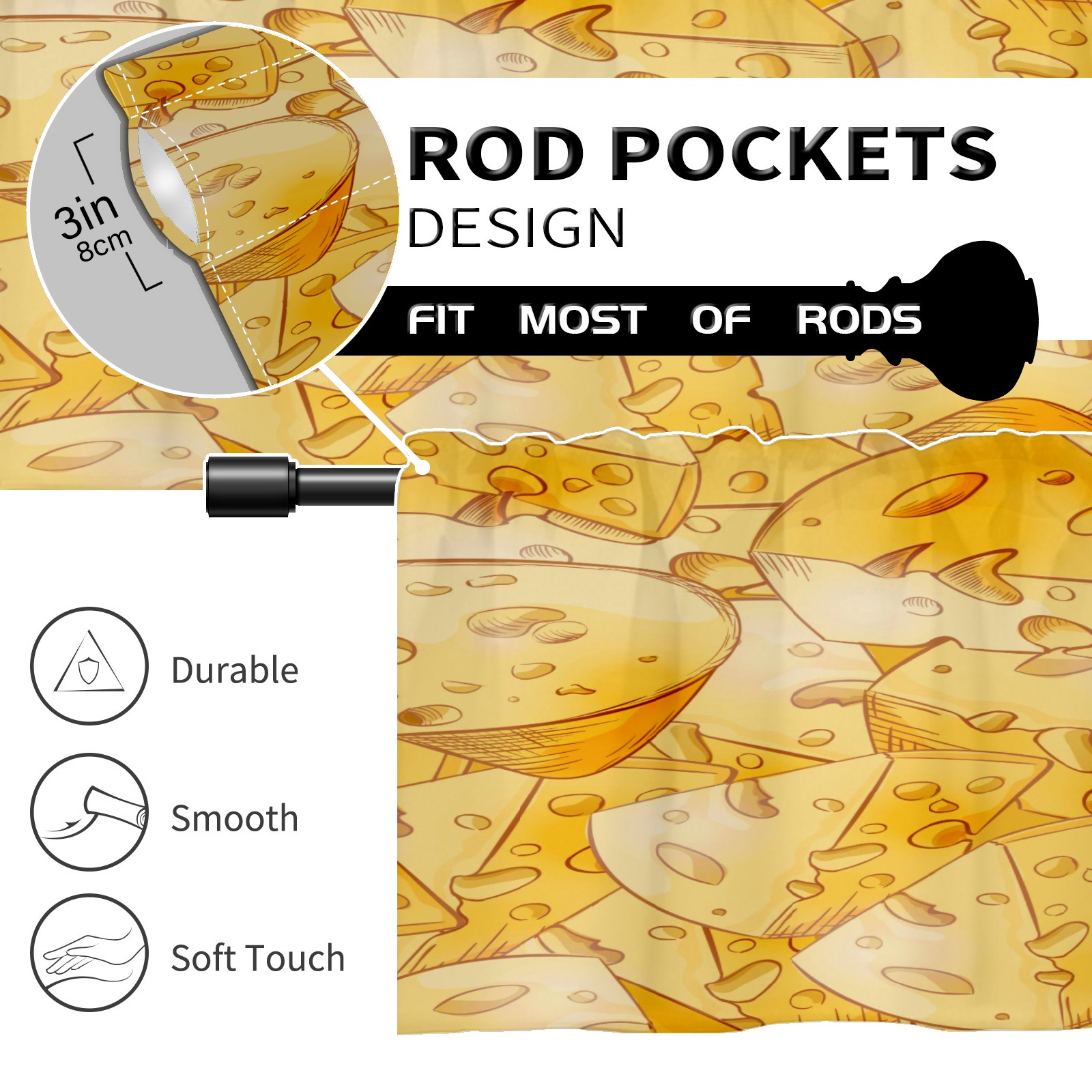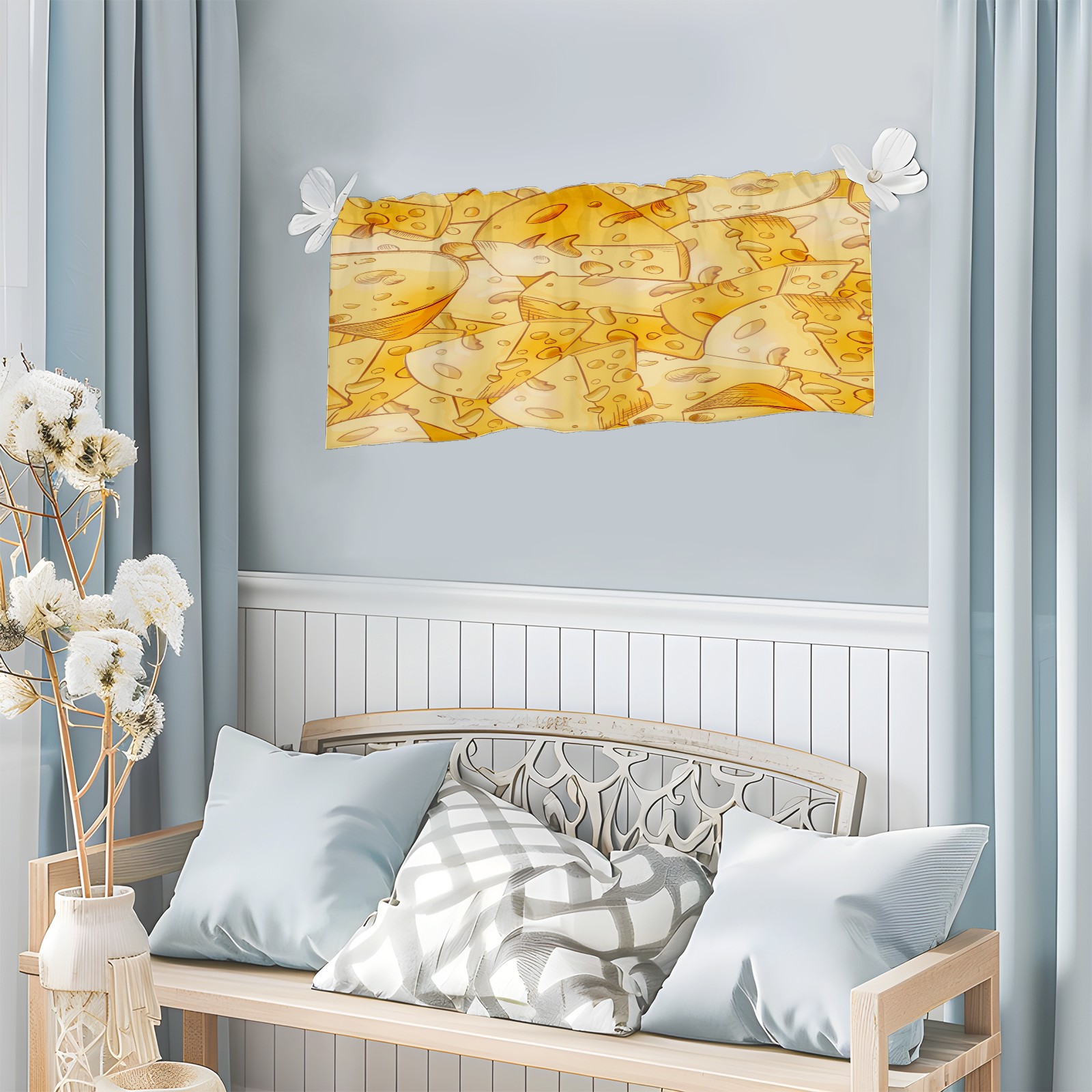 Blackout Curtain Valance for Living Room/Bathroom/Kitchen Valance Rod Pocket Curtain 14 x 52 Inches Yellow Cheese Slices