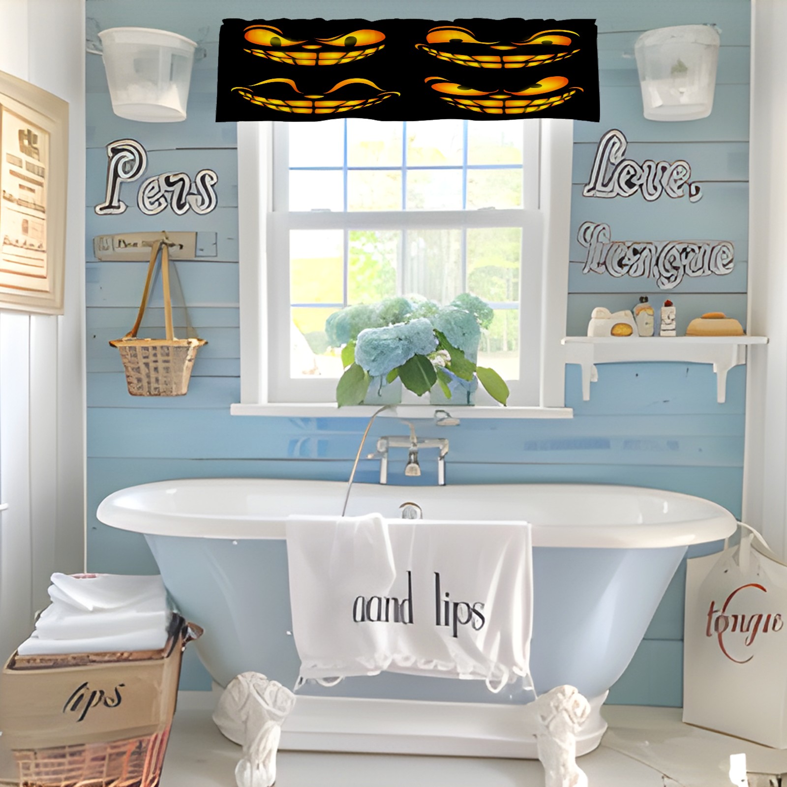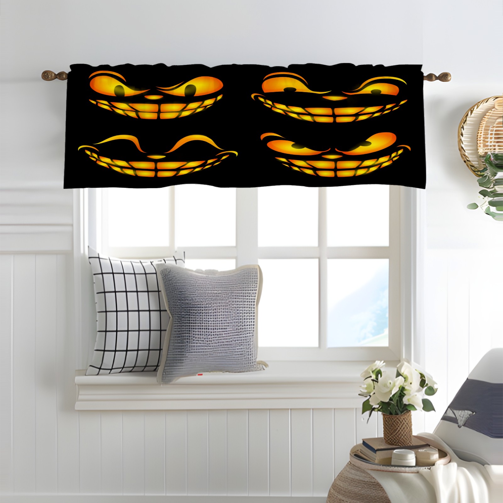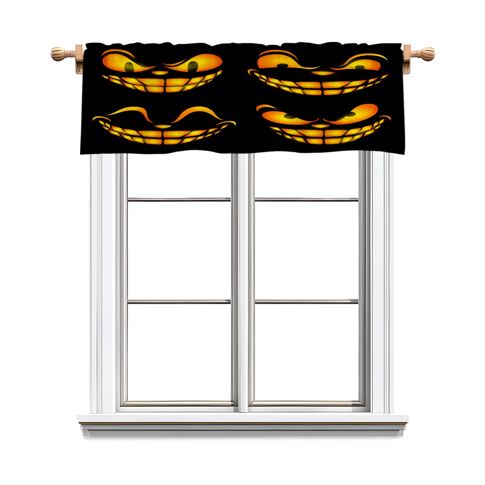 Blackout Curtain Valance for Living Room/Bathroom/Kitchen Valance Rod Pocket Curtain 14 x 52 Inches Pumpkin Face Expressions