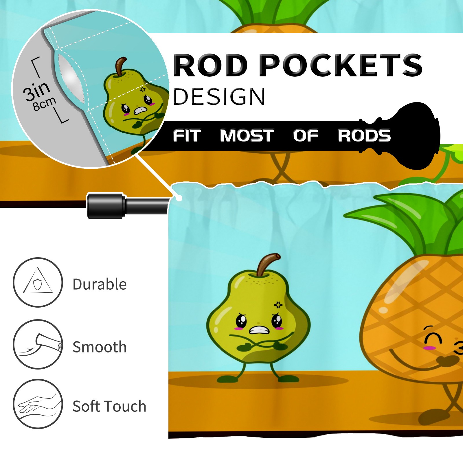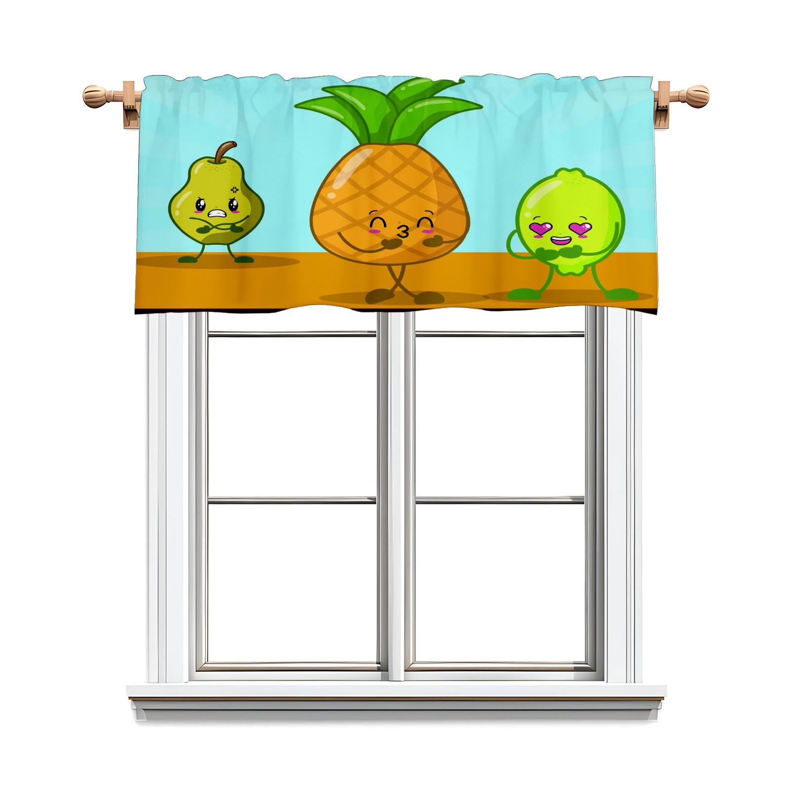 Blackout Curtain Valance for Living Room/Bathroom/Kitchen Valance Rod Pocket Curtain 14 x 52 Inches Lemon Pineapple Pear