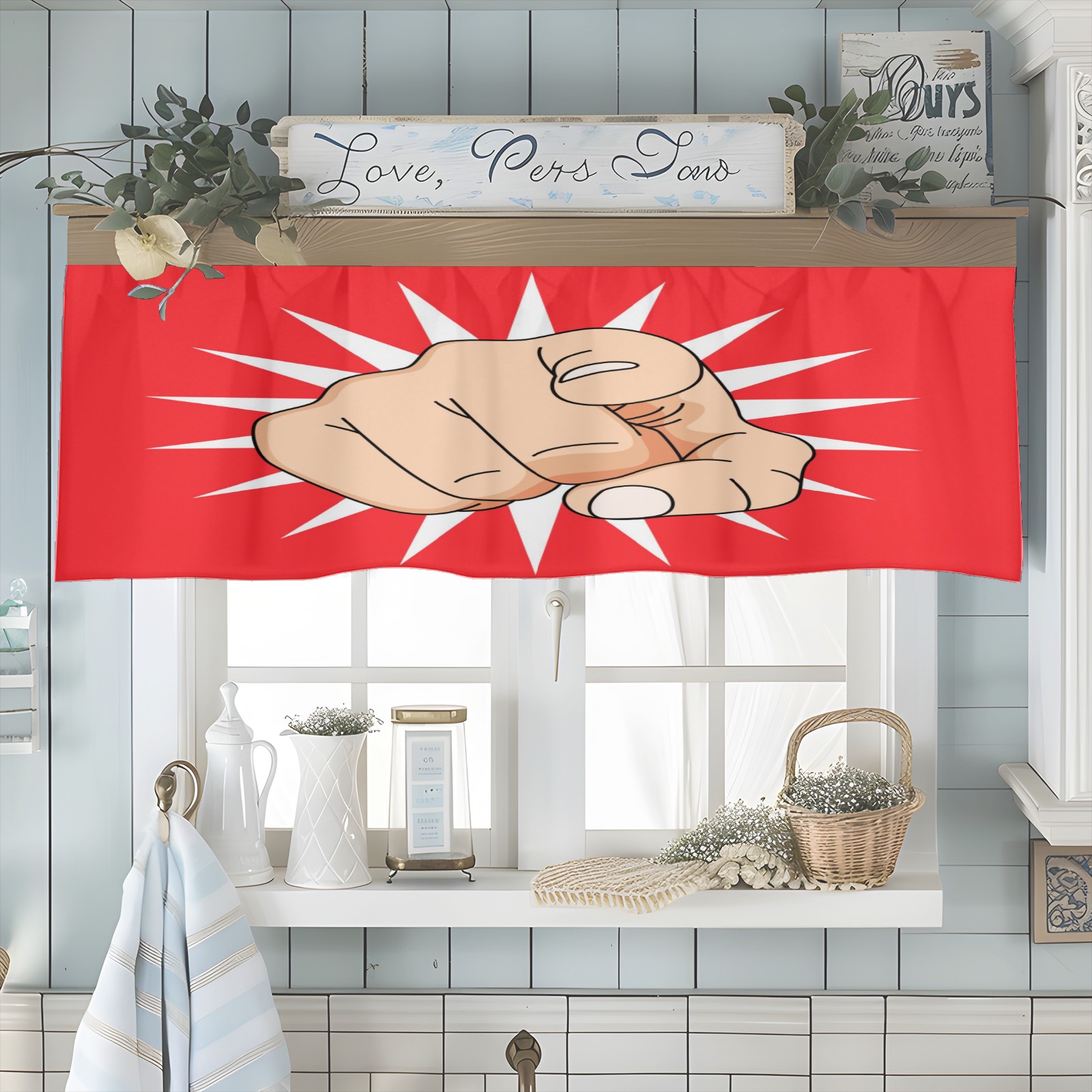 Blackout Curtain Valance for Living Room/Bathroom/Kitchen Valance Rod Pocket Curtain 14 x 52 Inches Hand Pointing You