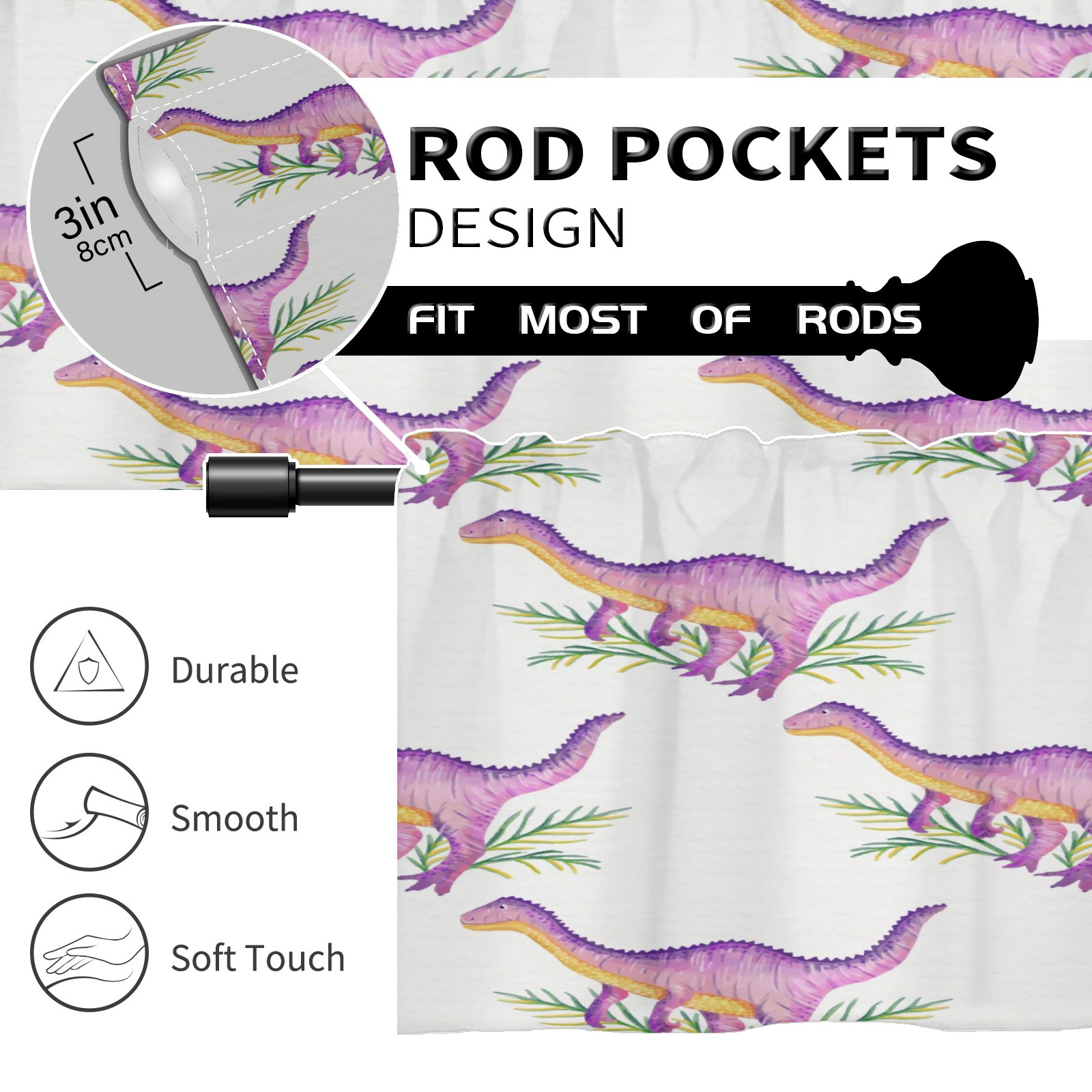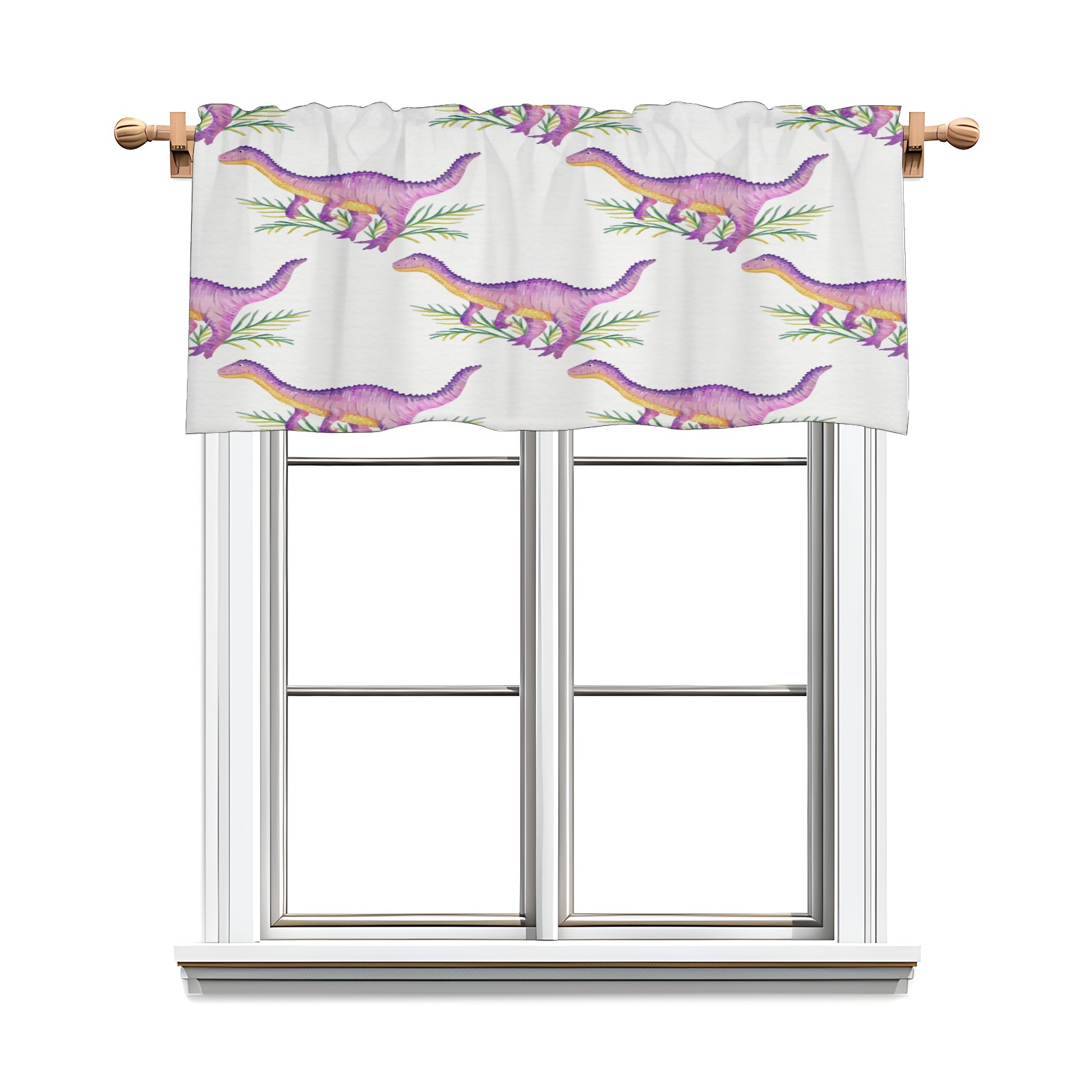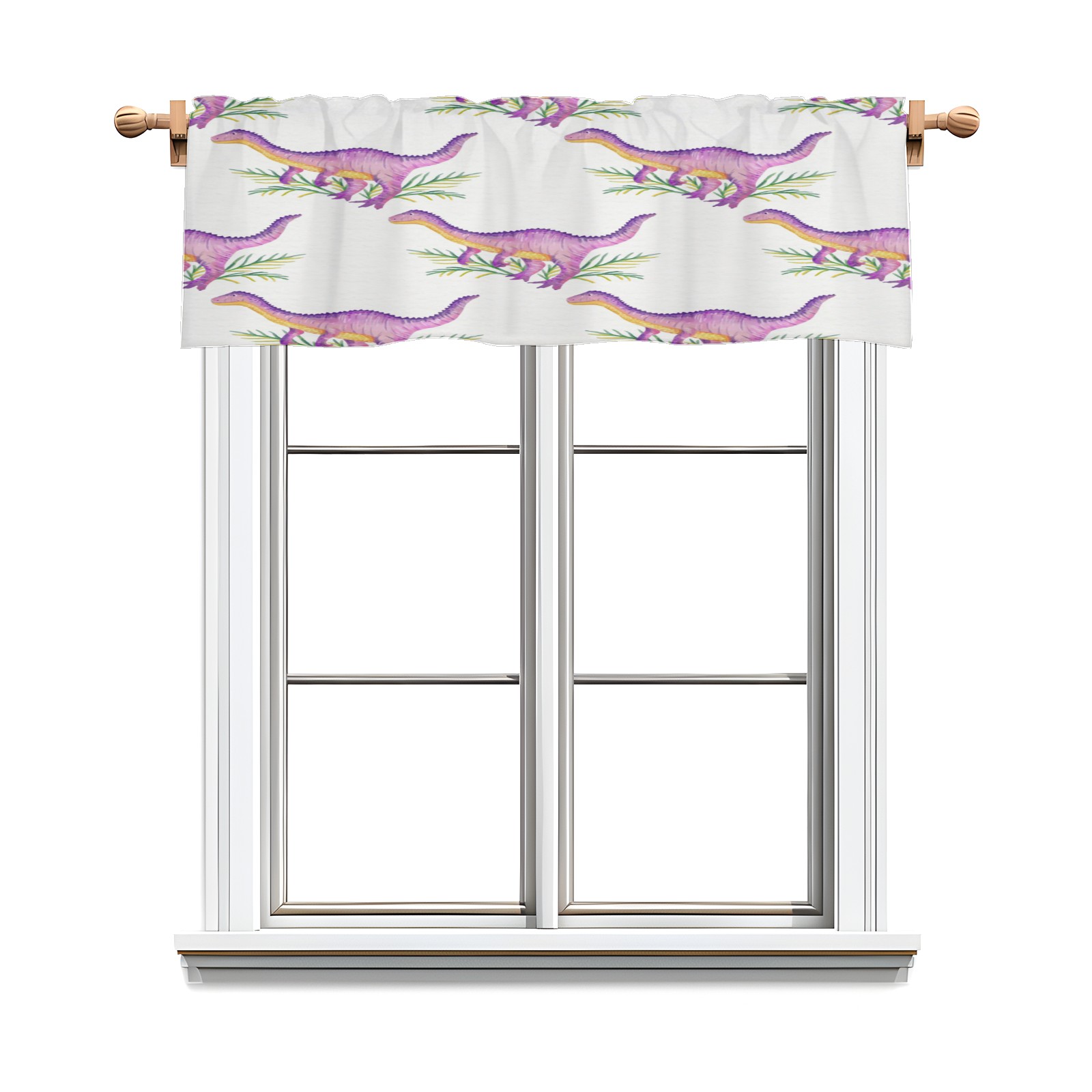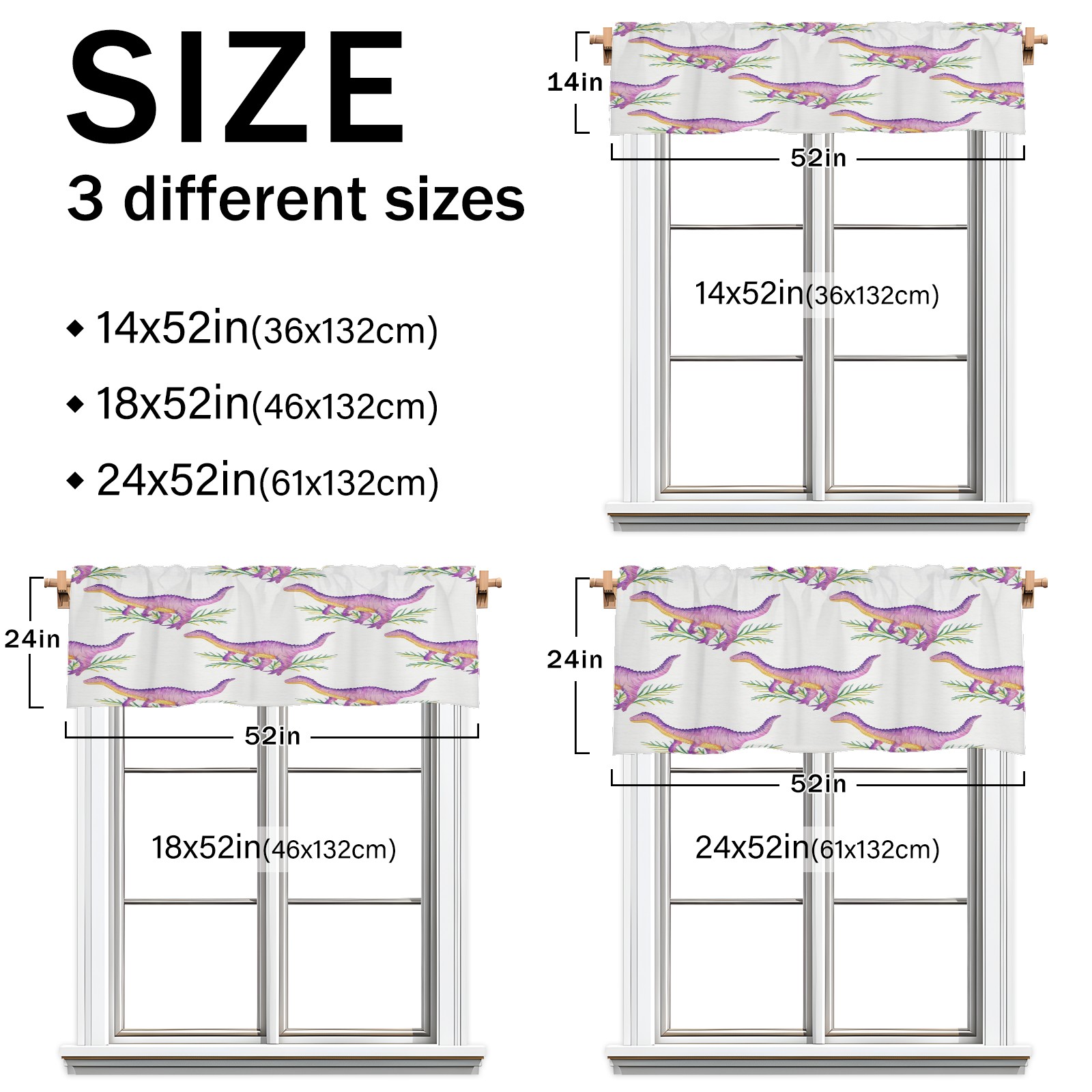 Blackout Curtain Valance for Living Room/Bathroom/Kitchen Valance Rod Pocket Curtain 14 x 52 Inches Hand Painted Purple Dinosaur-cute Cartoon Leaves