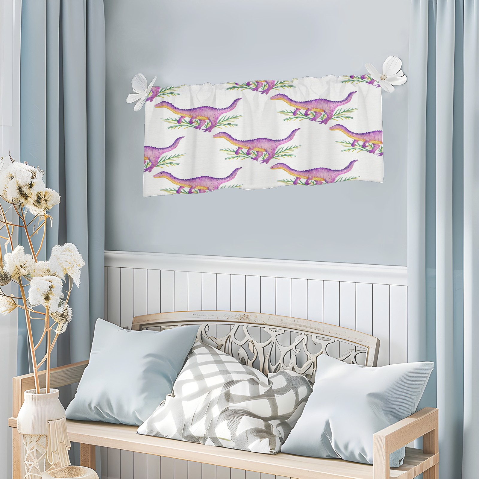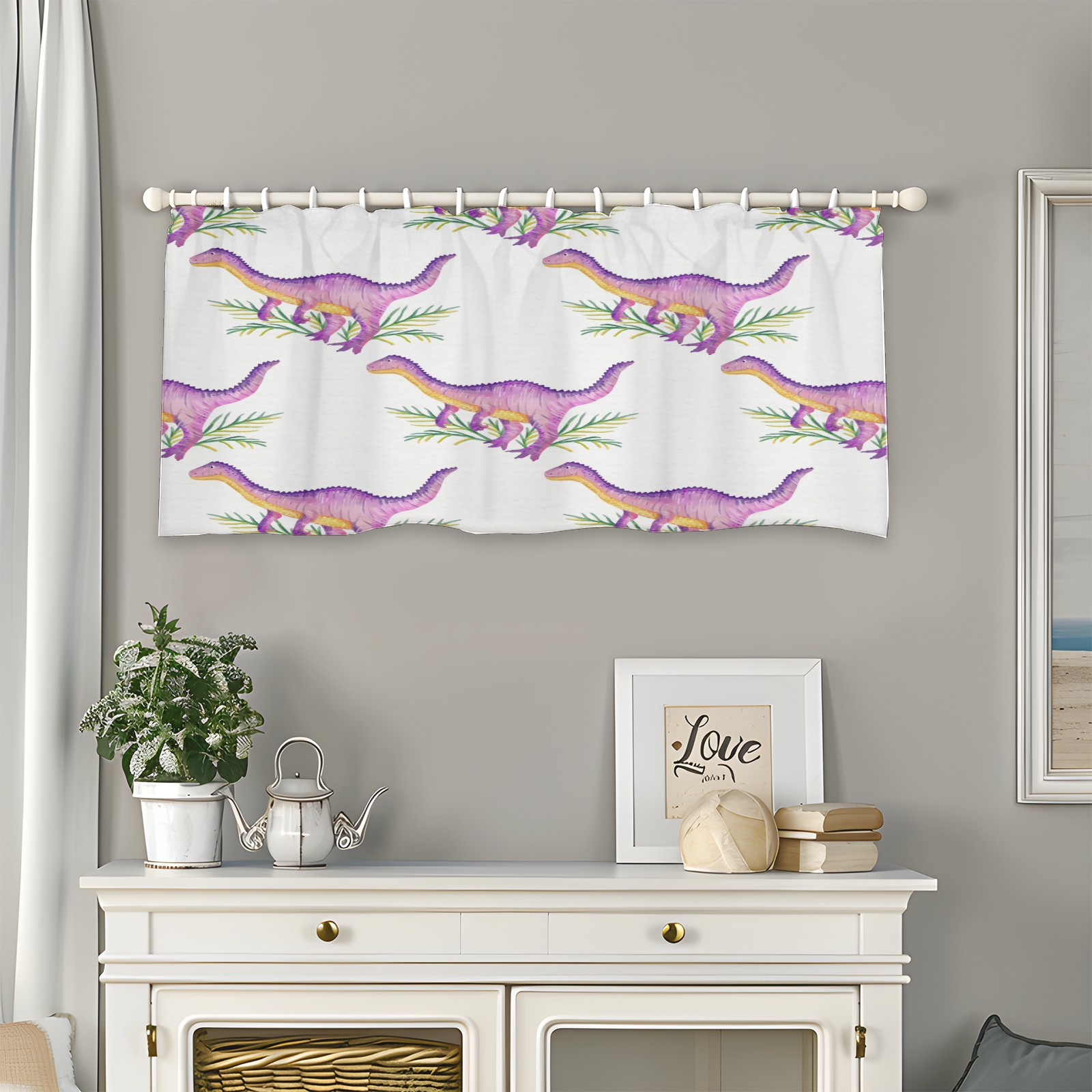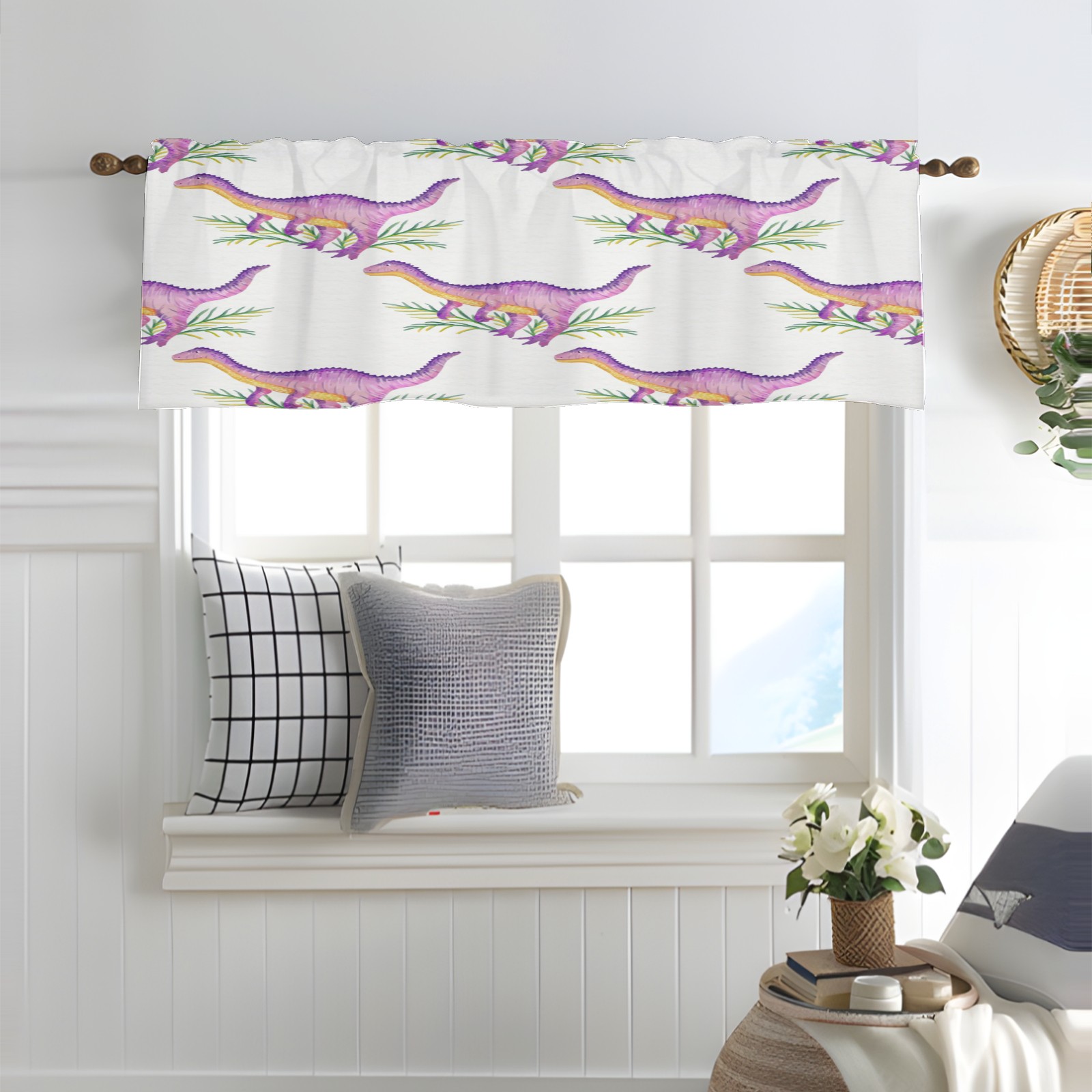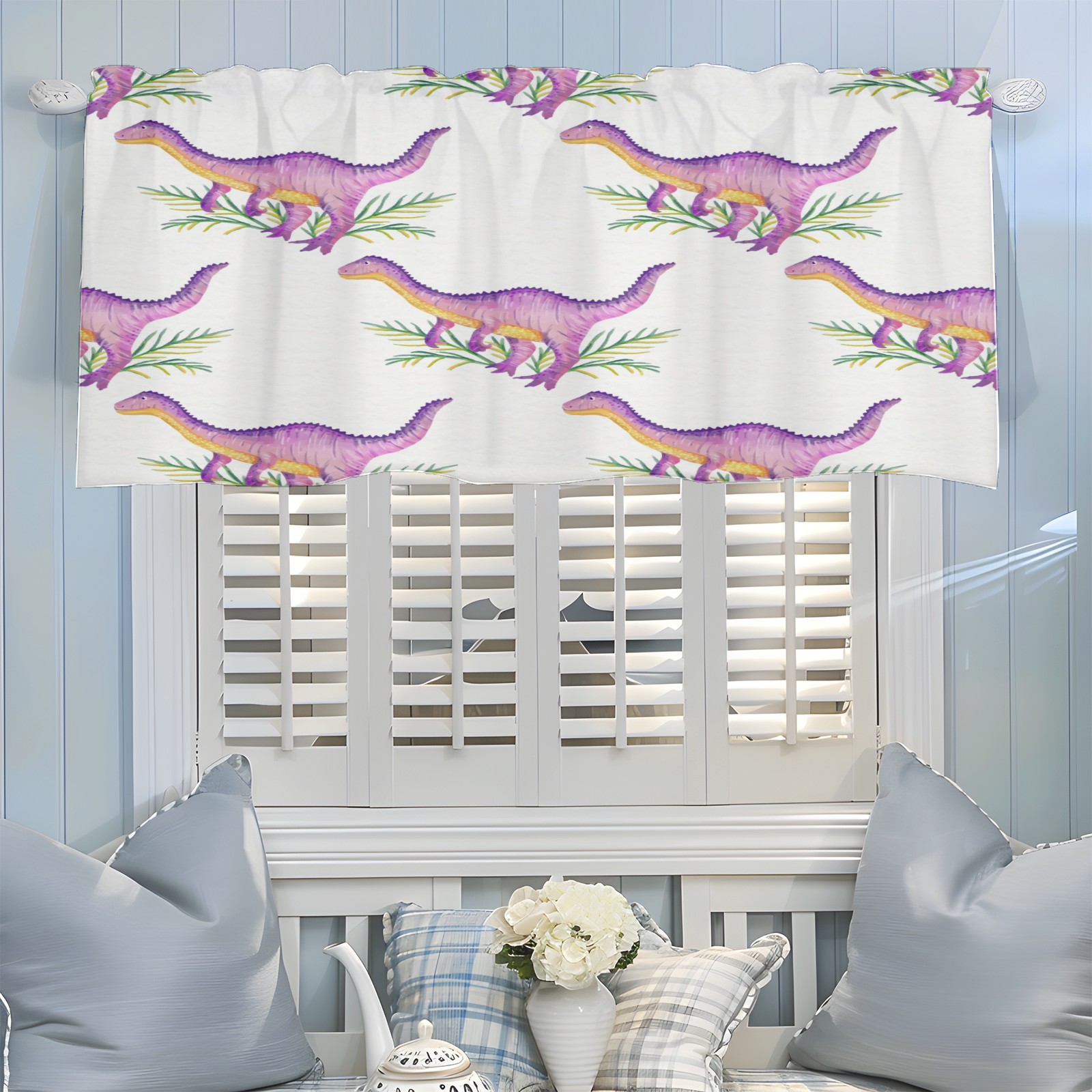 Blackout Curtain Valance for Living Room/Bathroom/Kitchen Valance Rod Pocket Curtain 14 x 52 Inches Hand Painted Purple Dinosaur-cute Cartoon Leaves