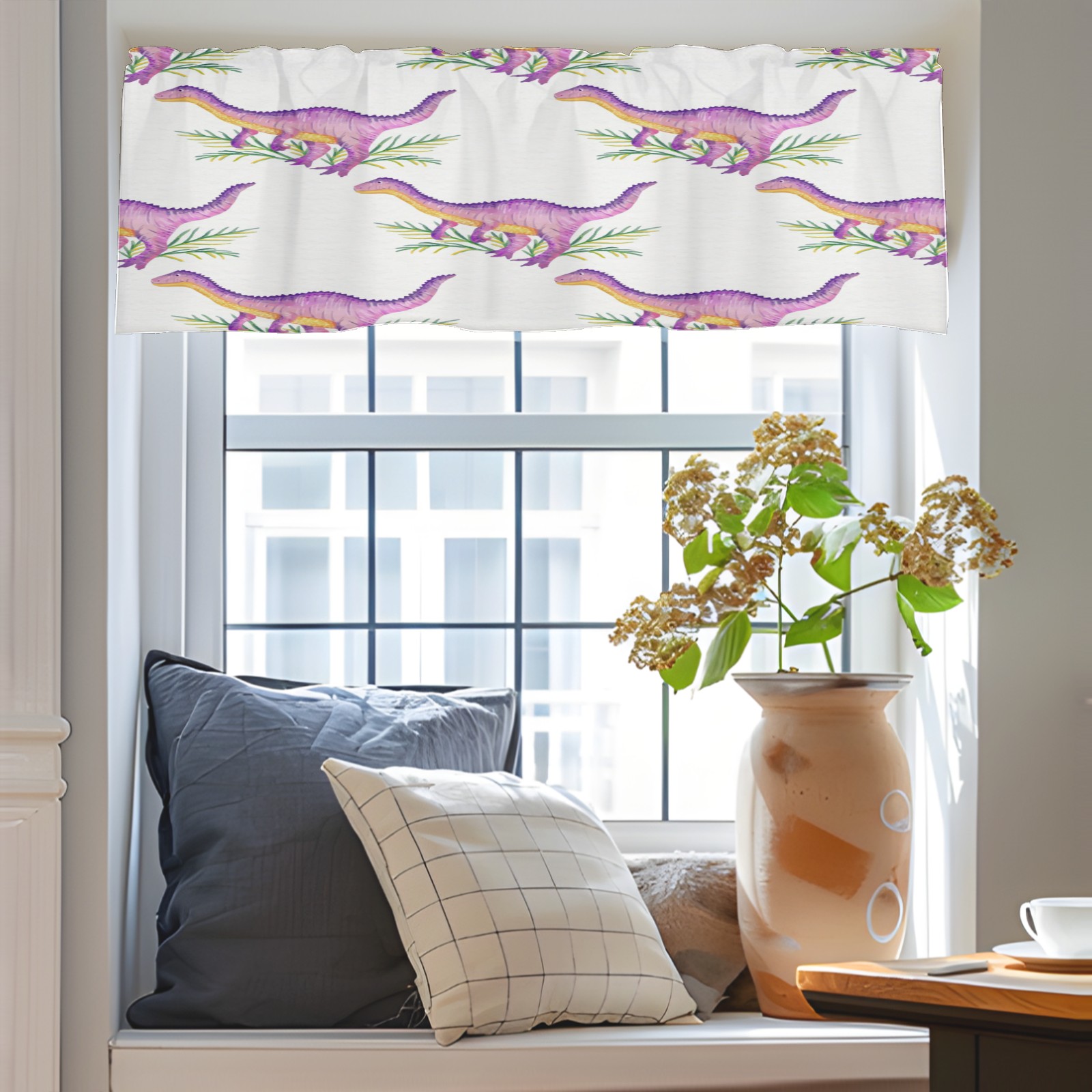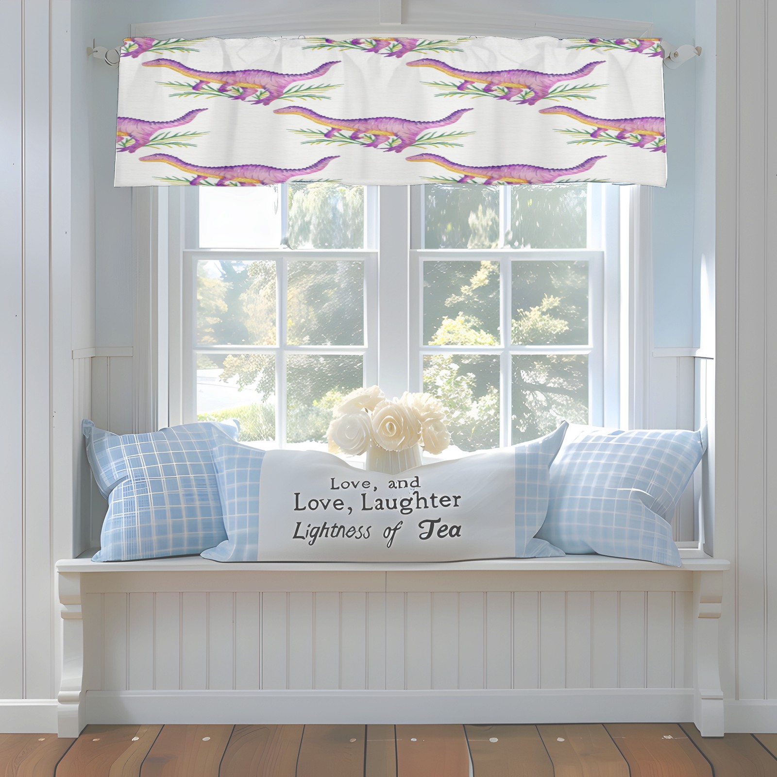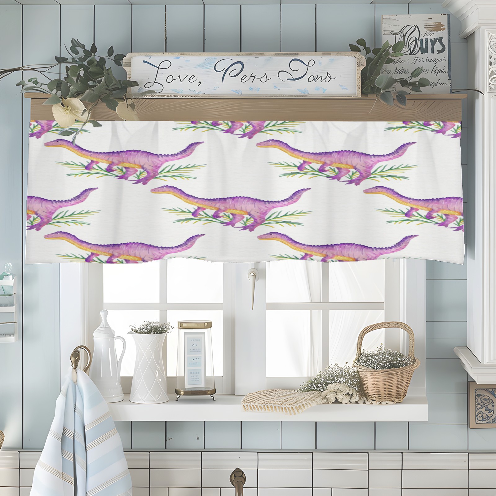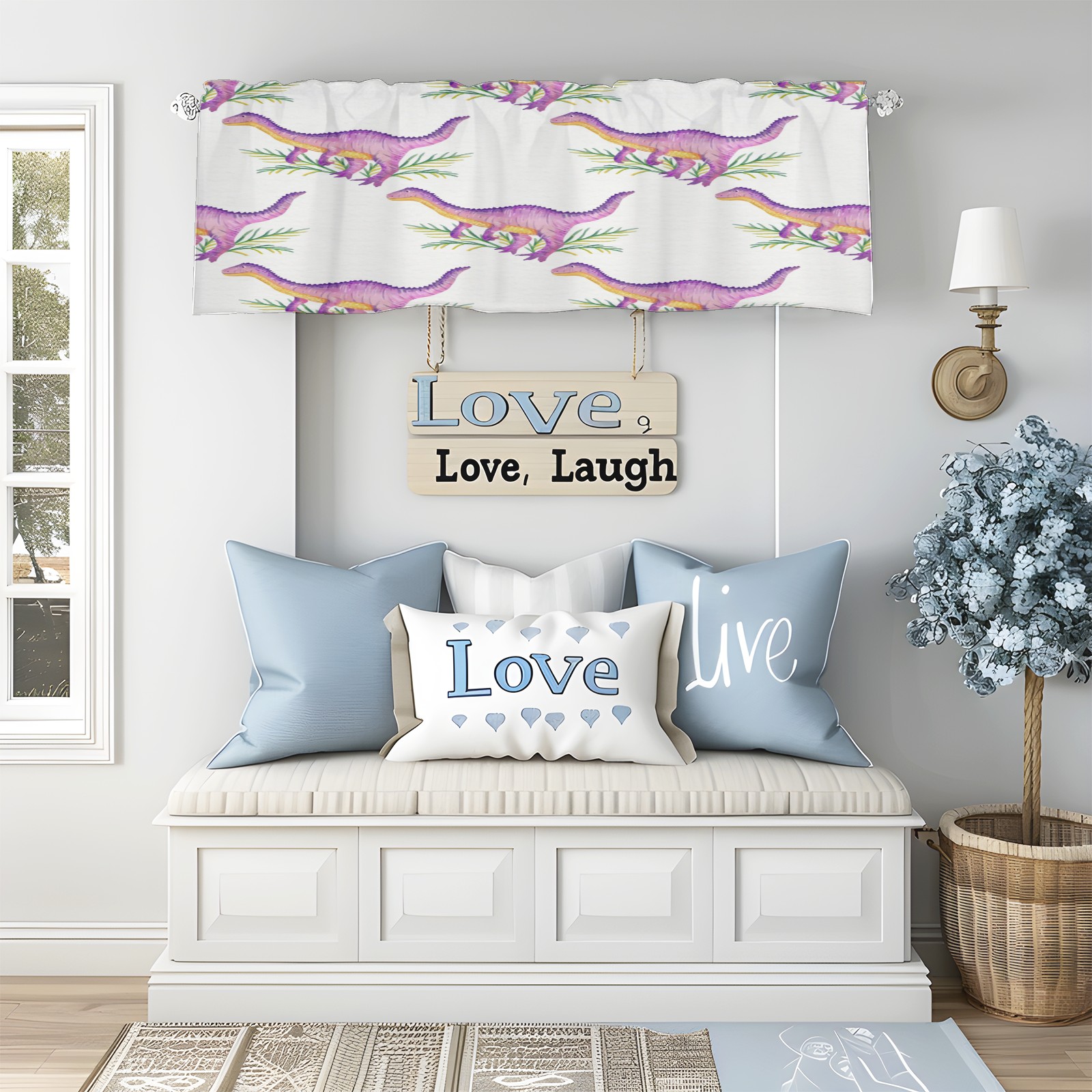 Blackout Curtain Valance for Living Room/Bathroom/Kitchen Valance Rod Pocket Curtain 14 x 52 Inches Hand Painted Purple Dinosaur-cute Cartoon Leaves