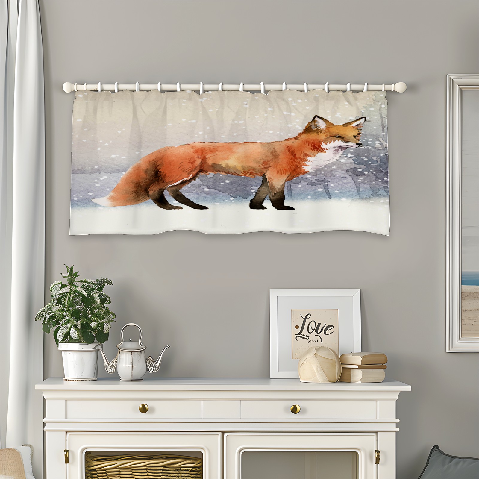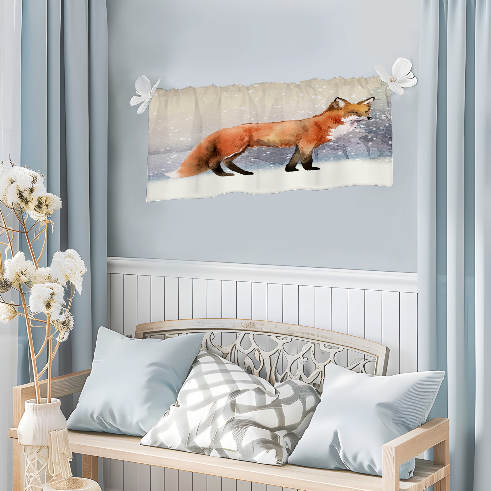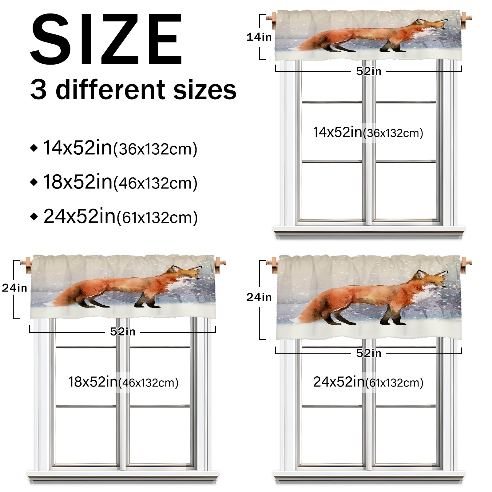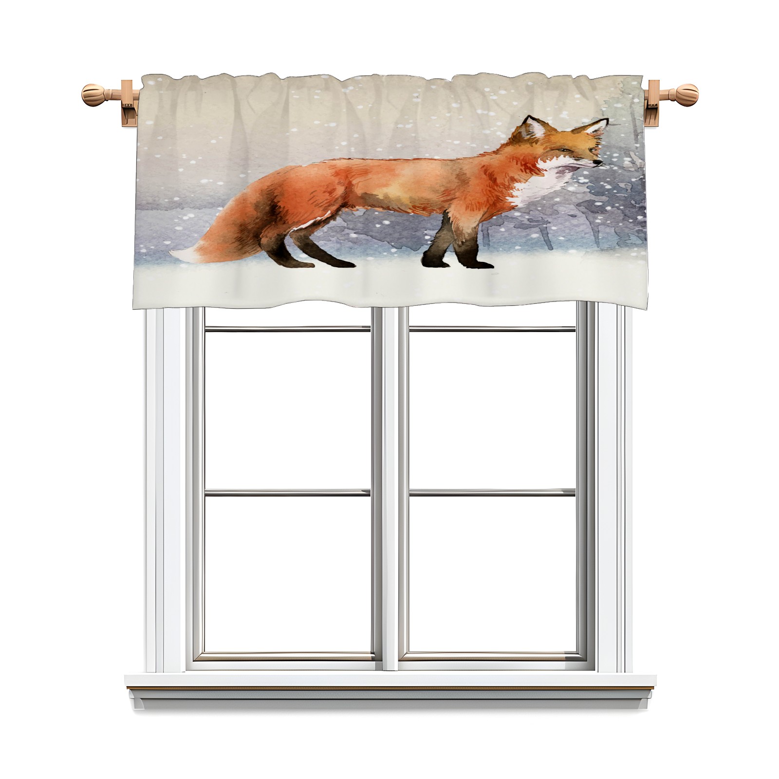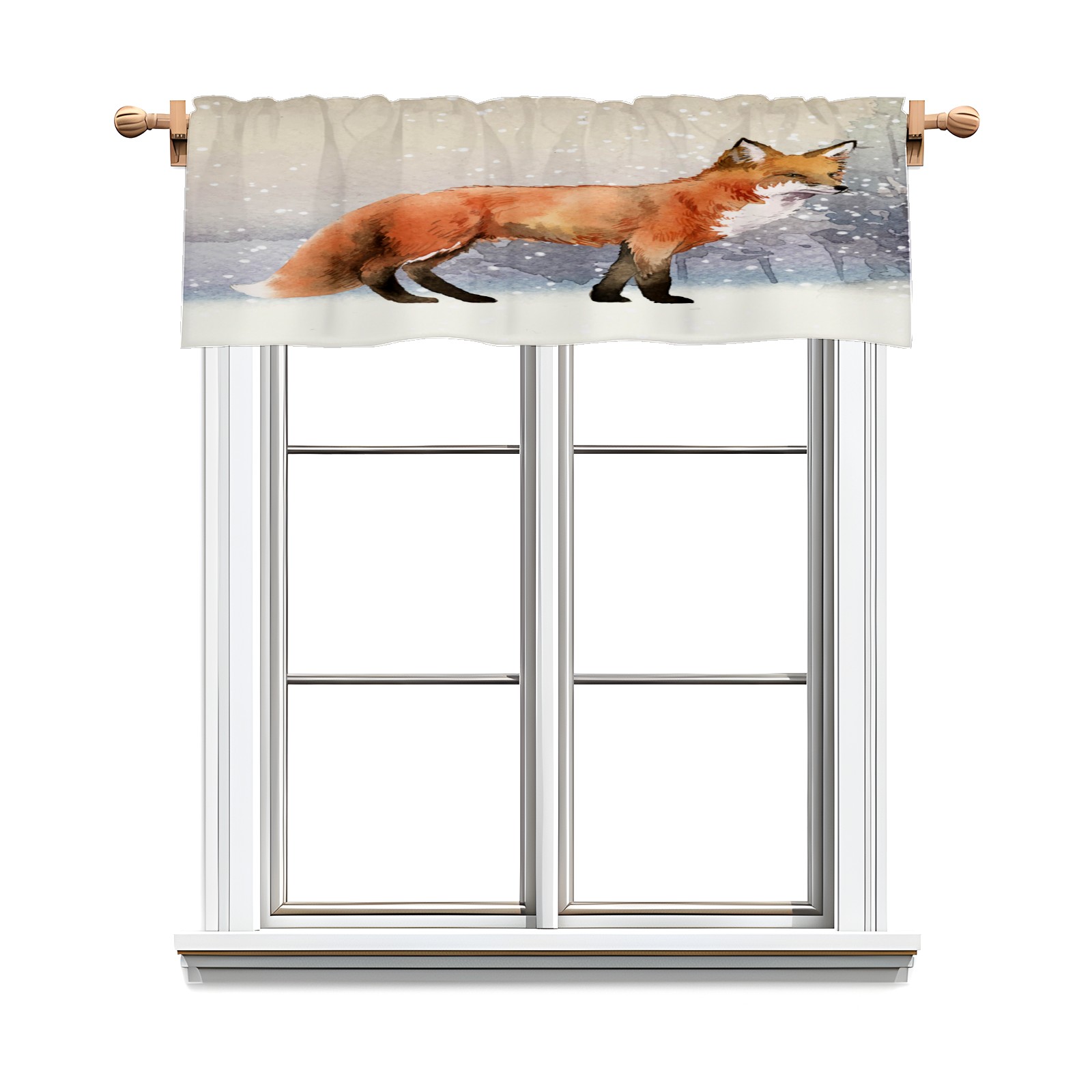 Blackout Curtain Valance for Living Room/Bathroom/Kitchen Valance Rod Pocket Curtain 14 x 52 Inches Hand Drawn Fox Snow-watercolor Animal
