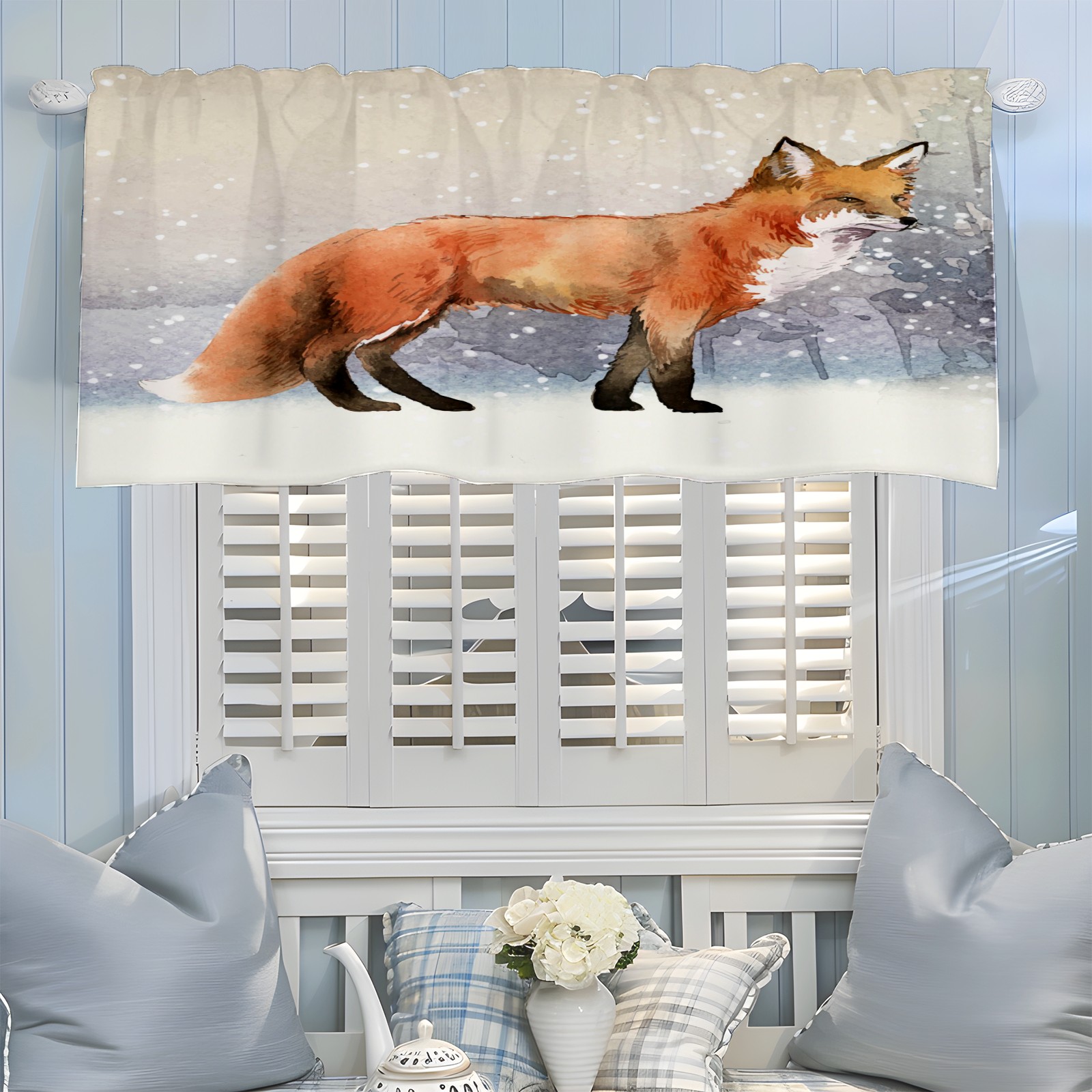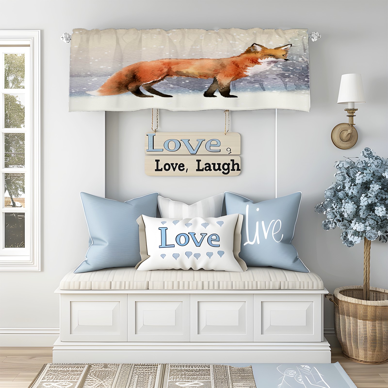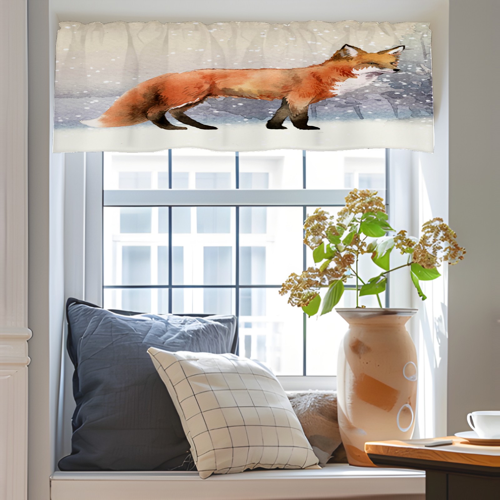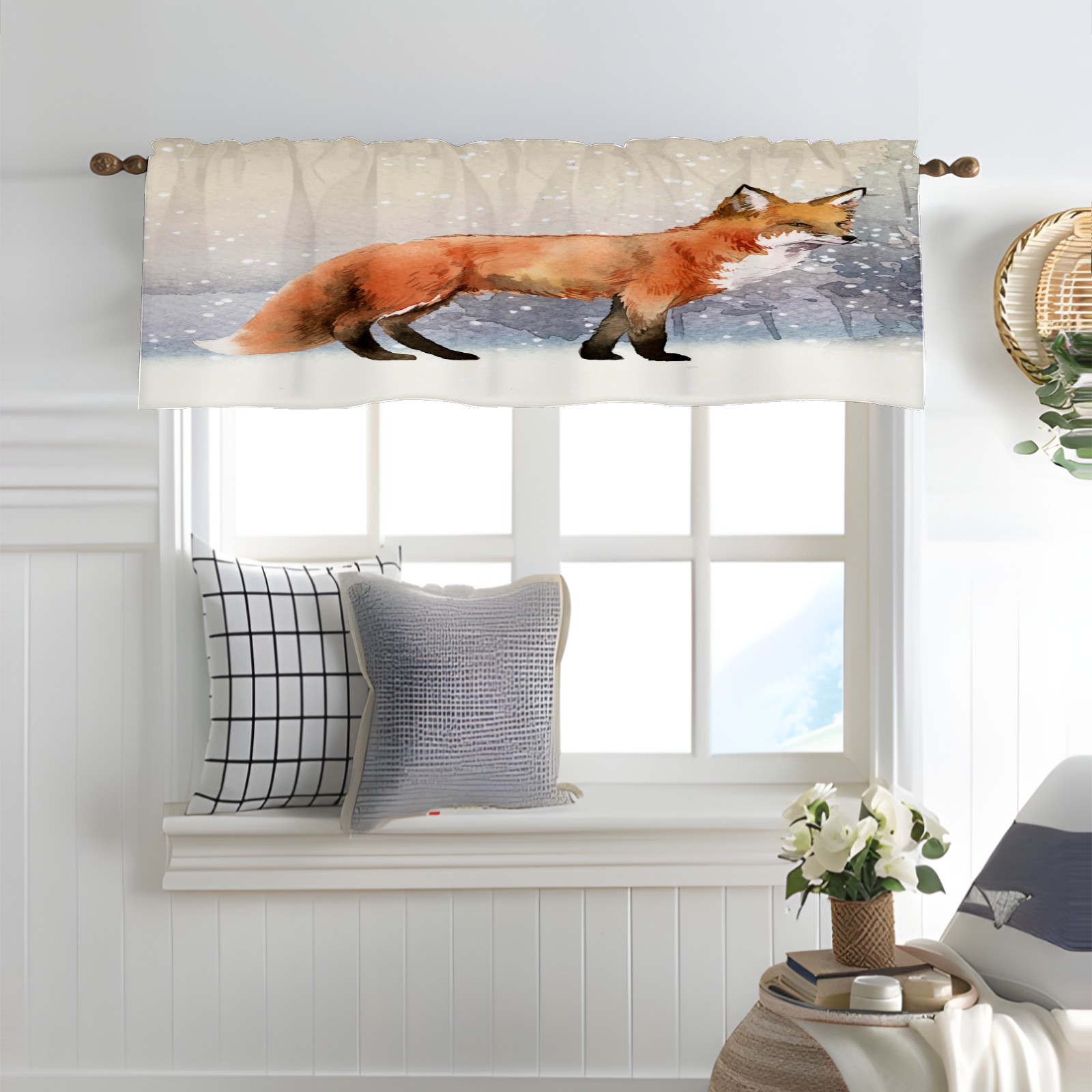 Blackout Curtain Valance for Living Room/Bathroom/Kitchen Valance Rod Pocket Curtain 14 x 52 Inches Hand Drawn Fox Snow-watercolor Animal