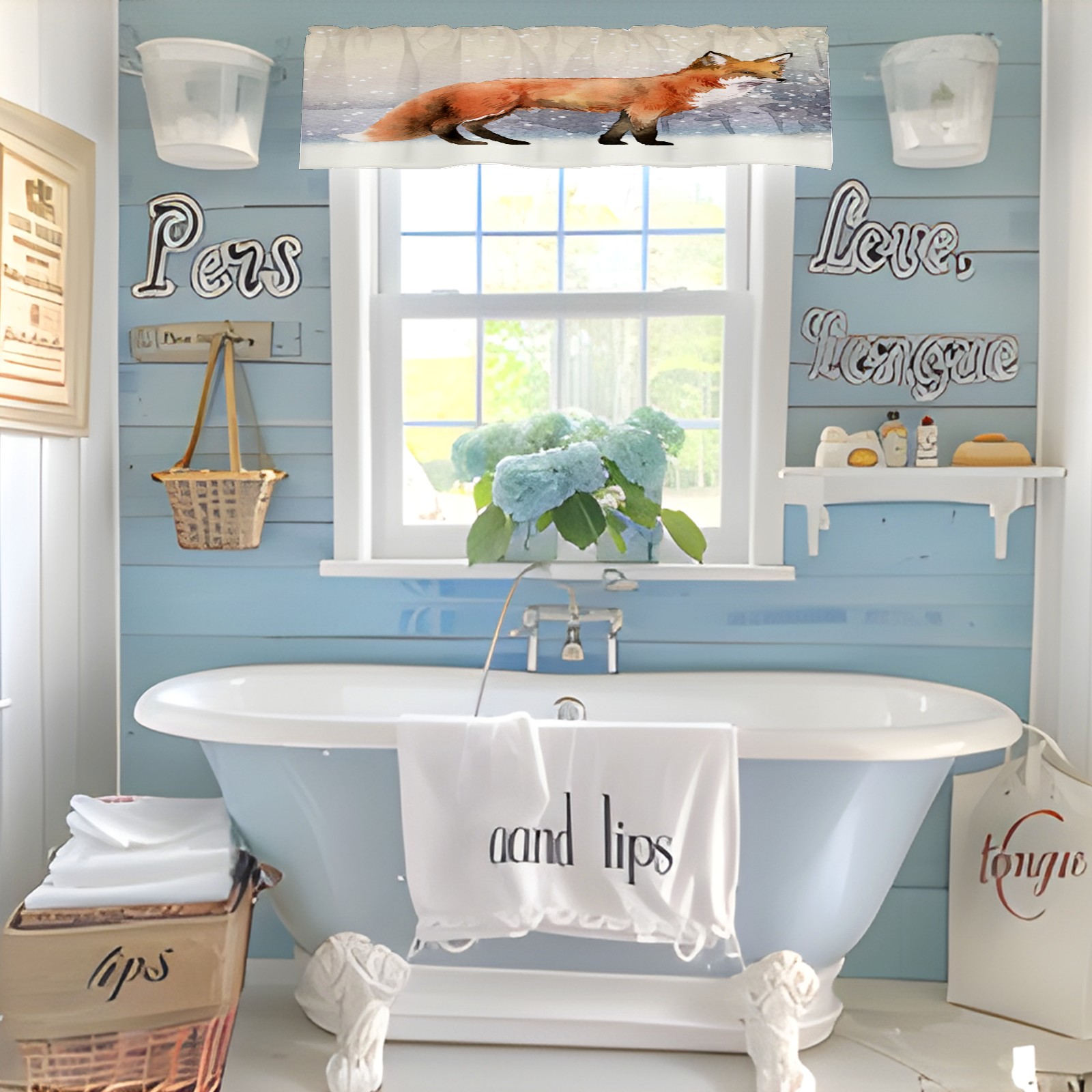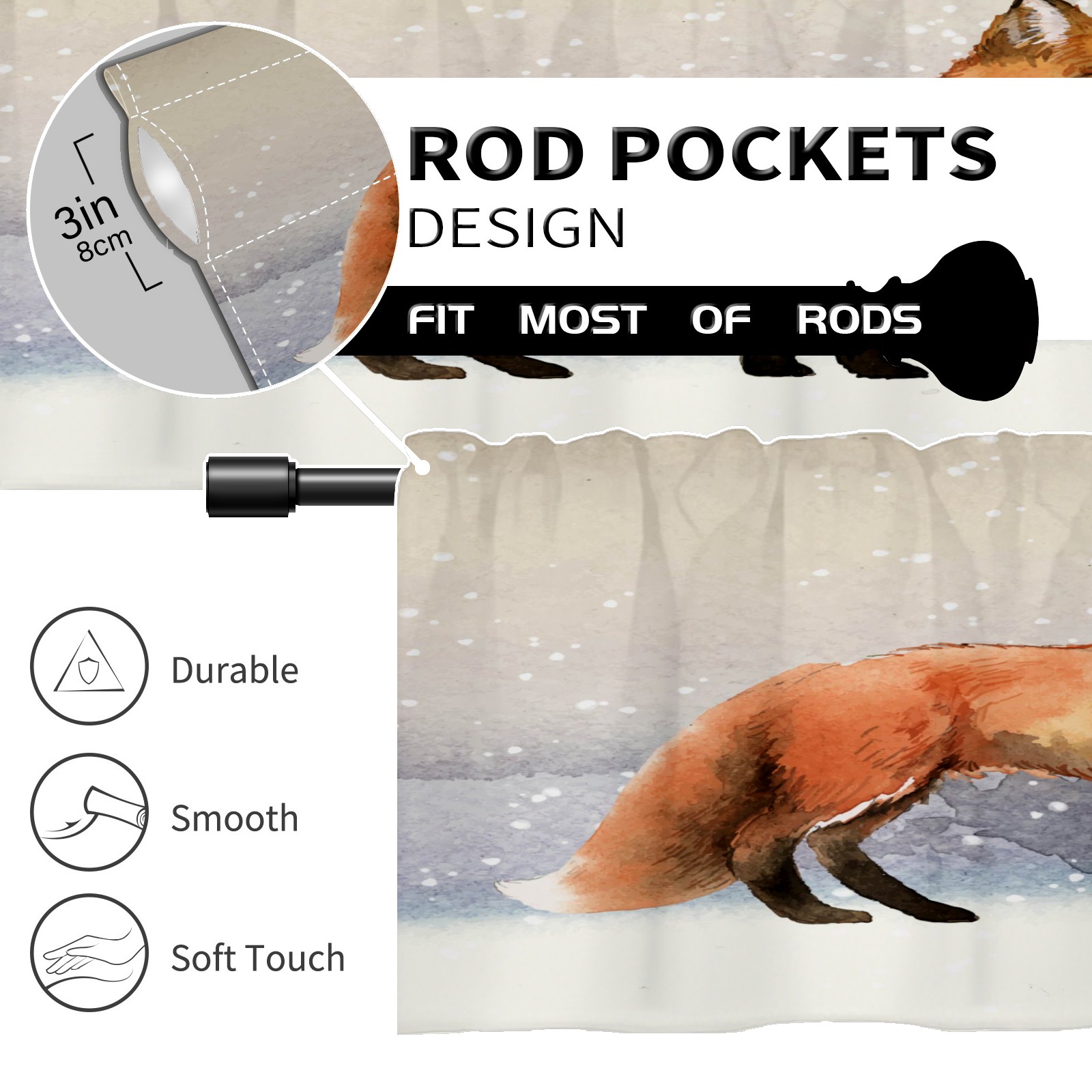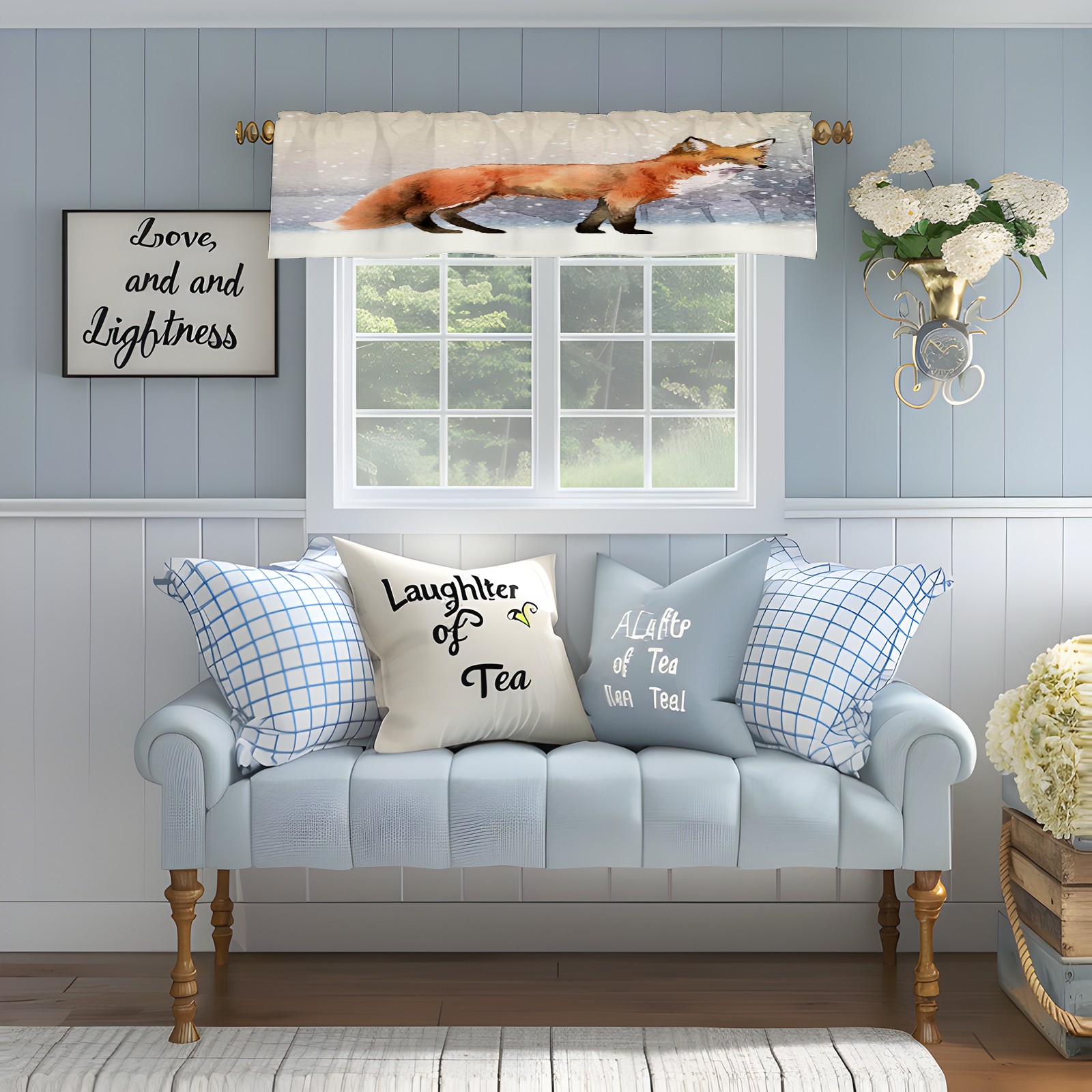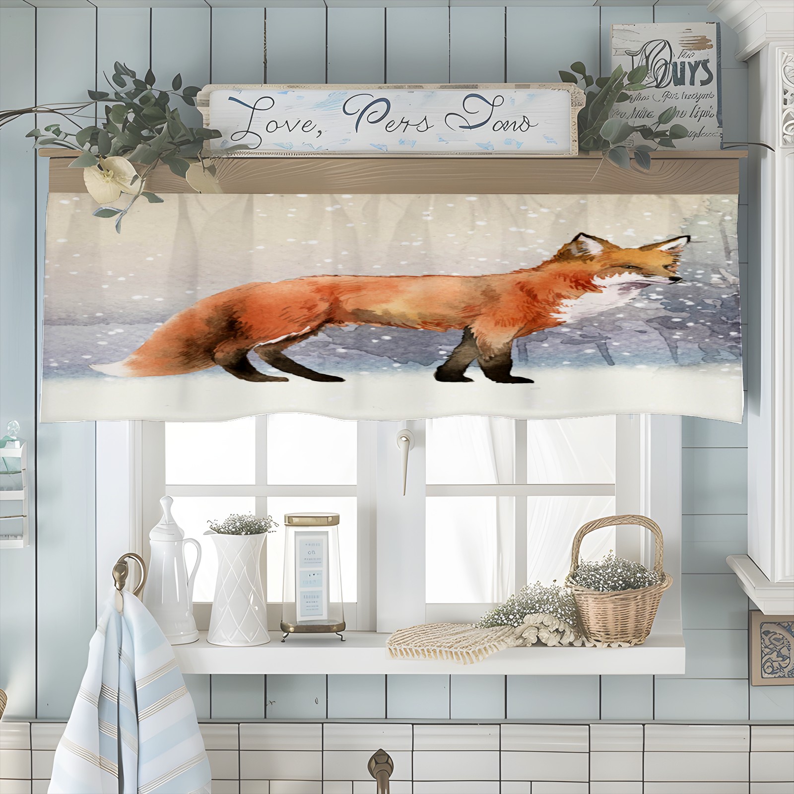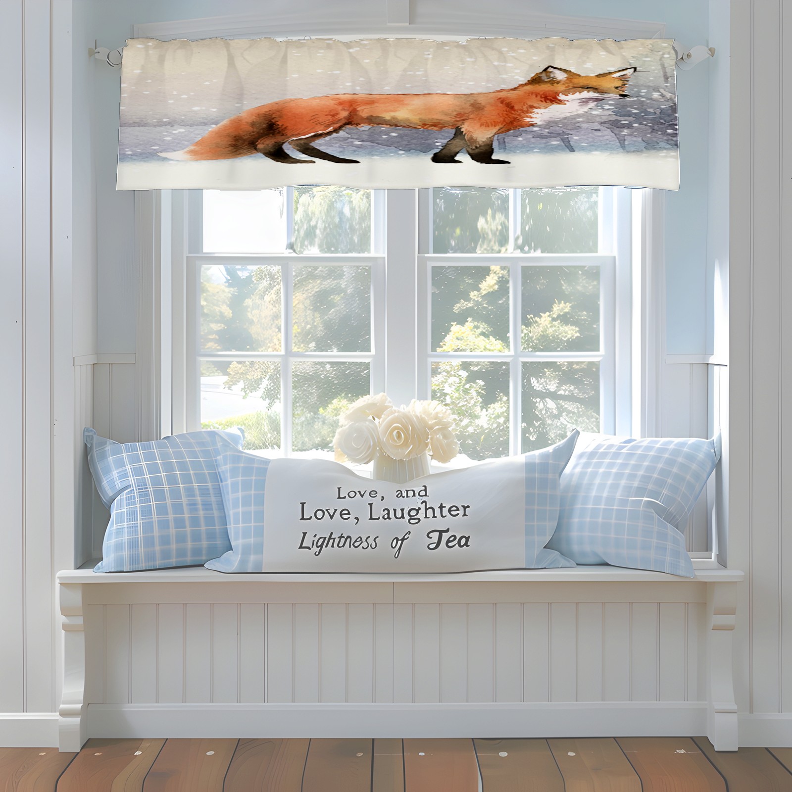 Blackout Curtain Valance for Living Room/Bathroom/Kitchen Valance Rod Pocket Curtain 14 x 52 Inches Hand Drawn Fox Snow-watercolor Animal