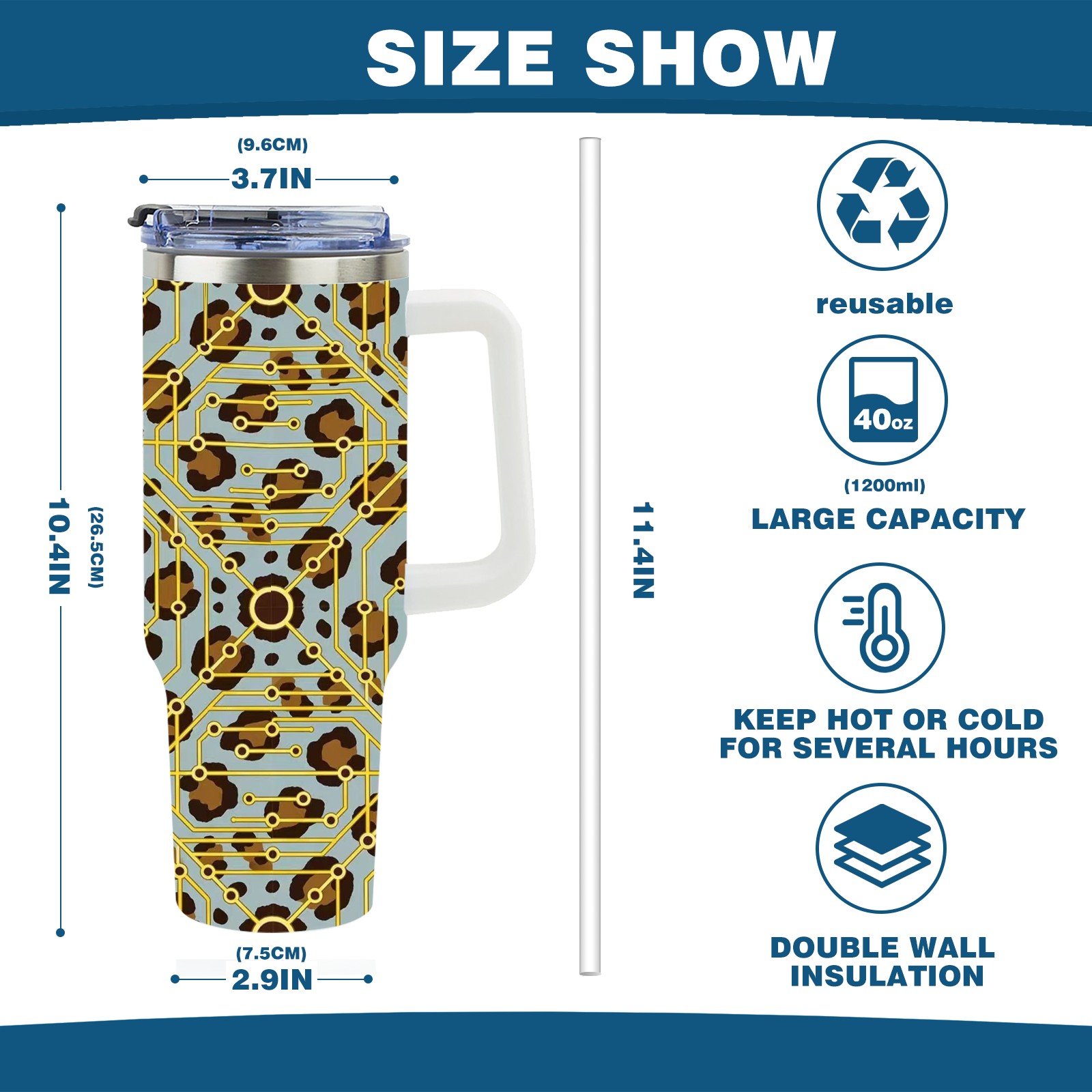 • С большой емкостью 40 унций, он обеспечивает вас гидратацией в течение всего дня, идеально подходит для воды, кофе, сока или других напитков. Эргономичный дизайн идеально вписывается в автомобильные держатели для бутылок, а прочный, герметичный колпачок предотвращает утечки во время передвижения. Путешествие. Антискользящее основание обеспечивает устойчивость, а гладкие поверхности делают уборку легкой — просто мойте вручную или кладите в посудомоечную машину (рекомендуется верхний поддон).