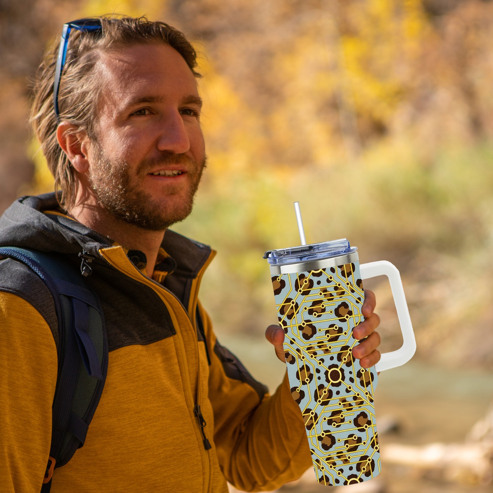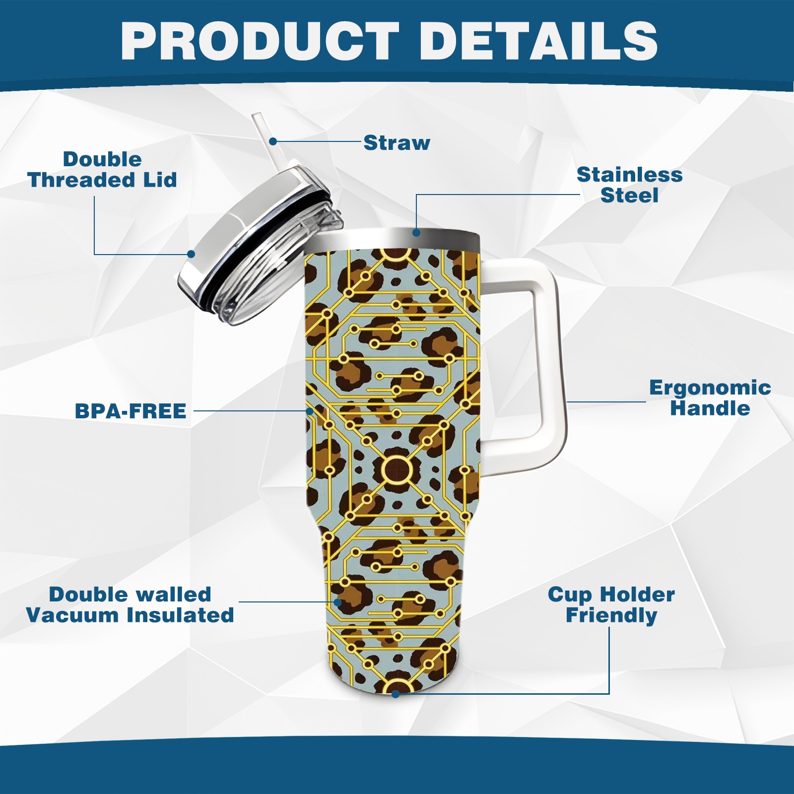 40 унций полностью напечатанный автомобильный стакан Brown Geometric