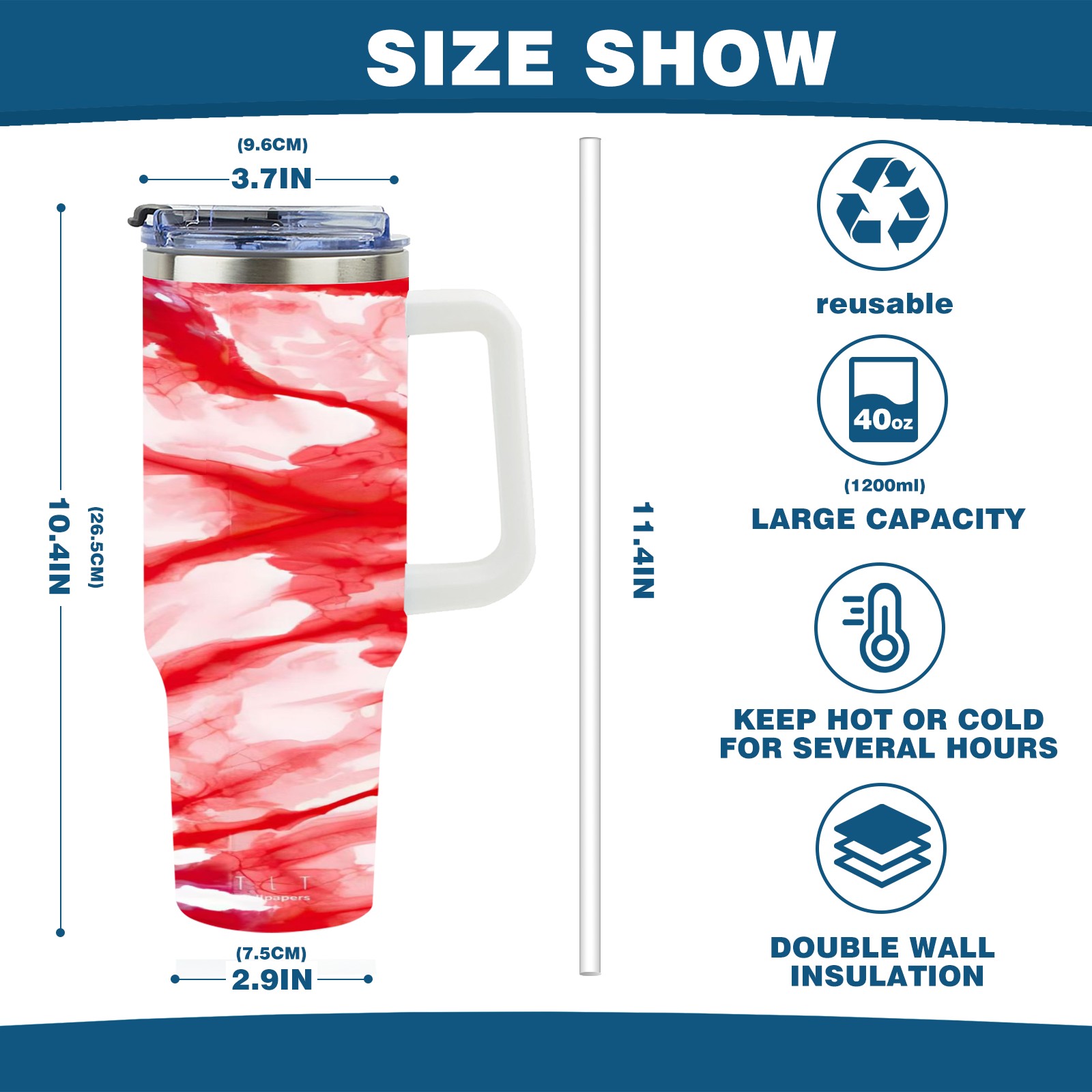 • С большой емкостью 40 унций, он обеспечивает вас гидратацией в течение всего дня, идеально подходит для воды, кофе, сока или других напитков. Эргономичный дизайн идеально вписывается в автомобильные держатели для бутылок, а прочный, герметичный колпачок предотвращает утечки во время передвижения. Путешествие. Антискользящее основание обеспечивает устойчивость, а гладкие поверхности делают уборку легкой — просто мойте вручную или кладите в посудомоечную машину (рекомендуется верхний поддон).