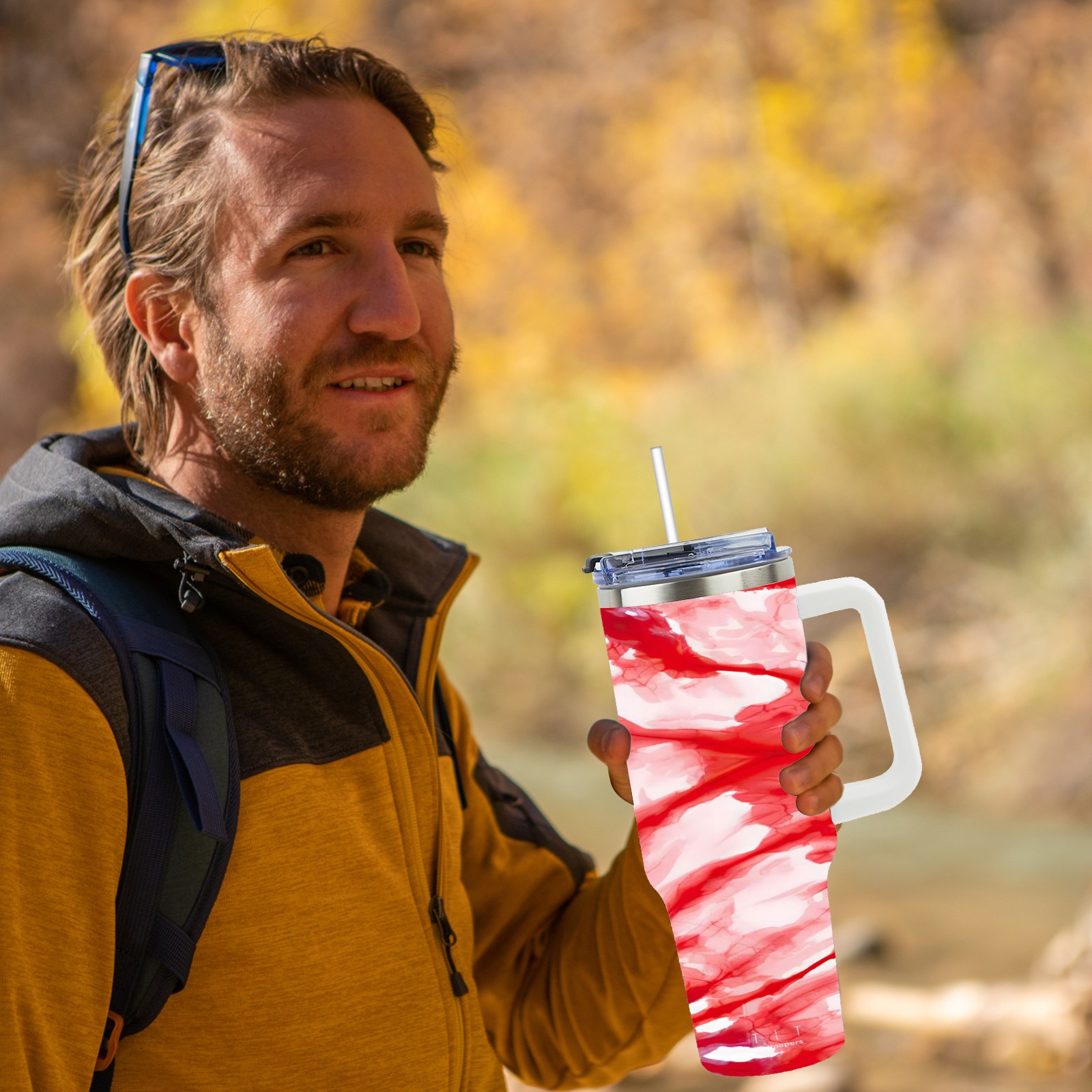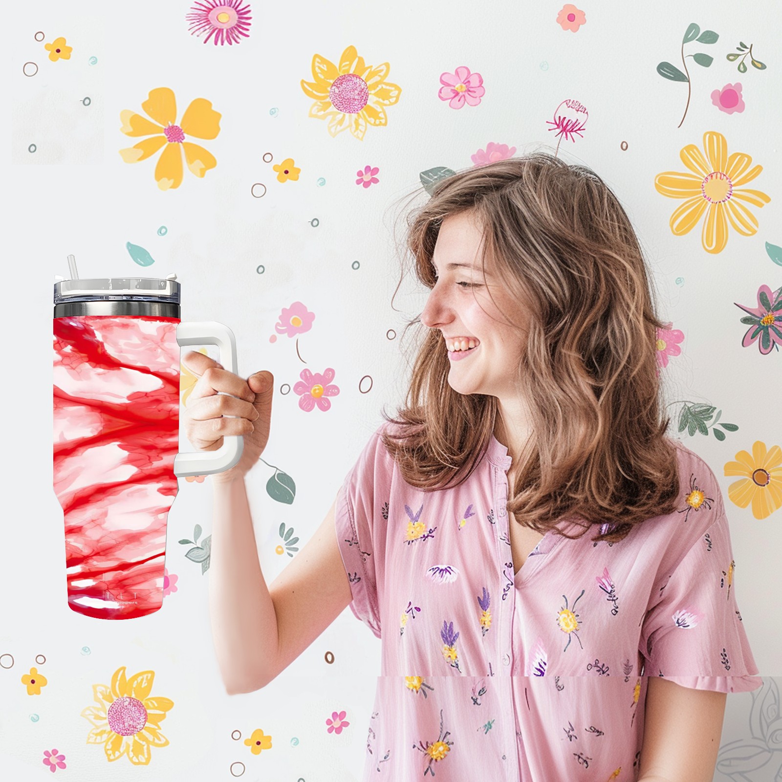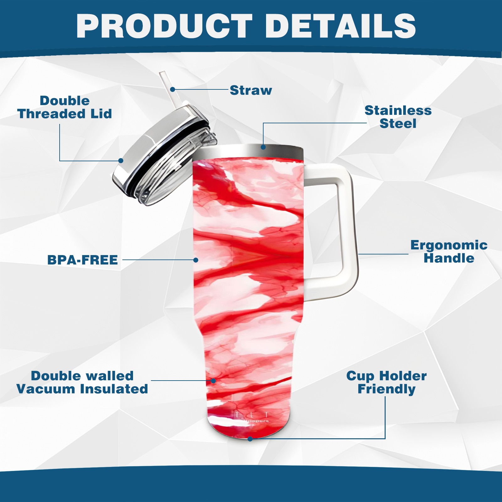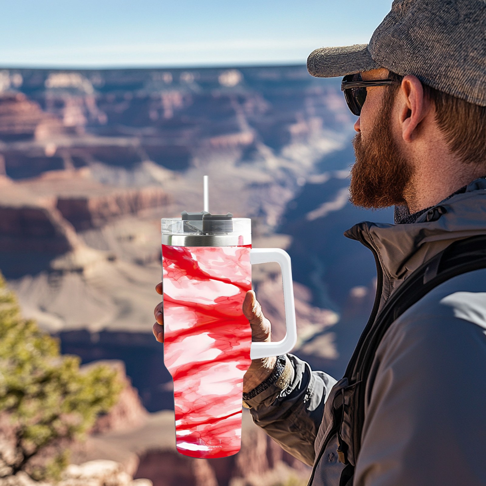 40 унций полностью напечатанный автомобильный стакан Red Blooming