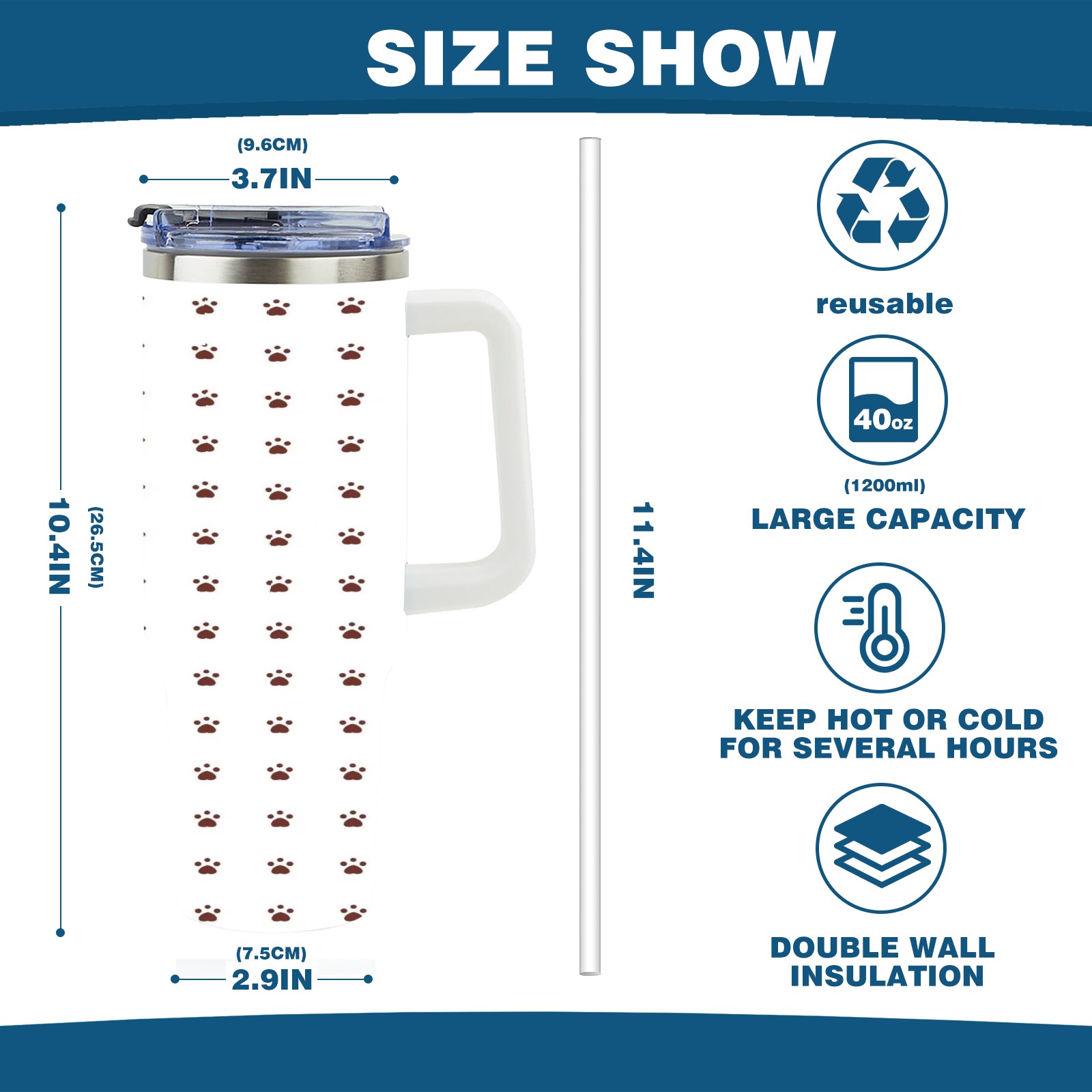 • С большой емкостью 40 унций, он обеспечивает вас гидратацией в течение всего дня, идеально подходит для воды, кофе, сока или других напитков. Эргономичный дизайн идеально вписывается в автомобильные держатели для бутылок, а прочный, герметичный колпачок предотвращает утечки во время передвижения. Путешествие. Антискользящее основание обеспечивает устойчивость, а гладкие поверхности делают уборку легкой — просто мойте вручную или кладите в посудомоечную машину (рекомендуется верхний поддон).