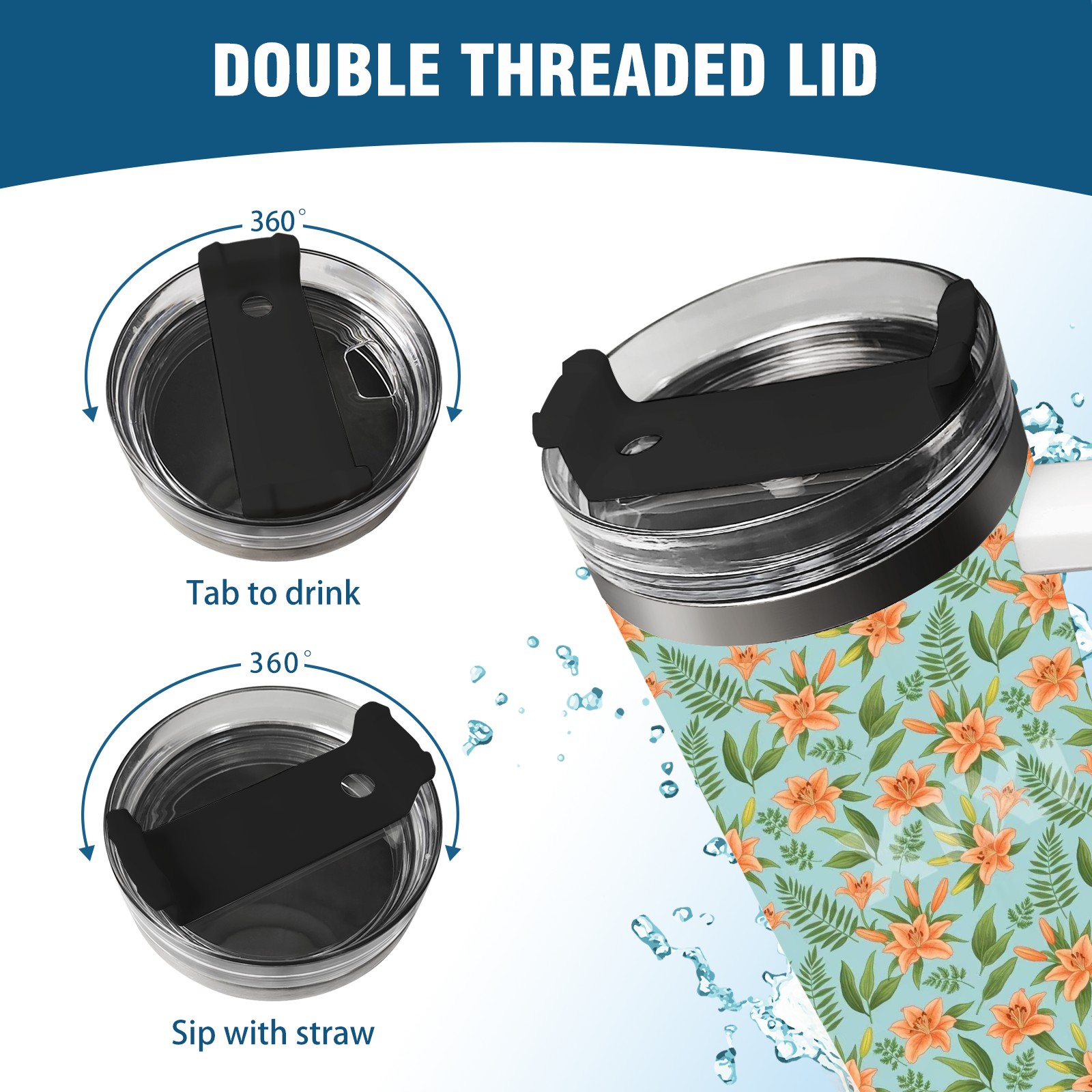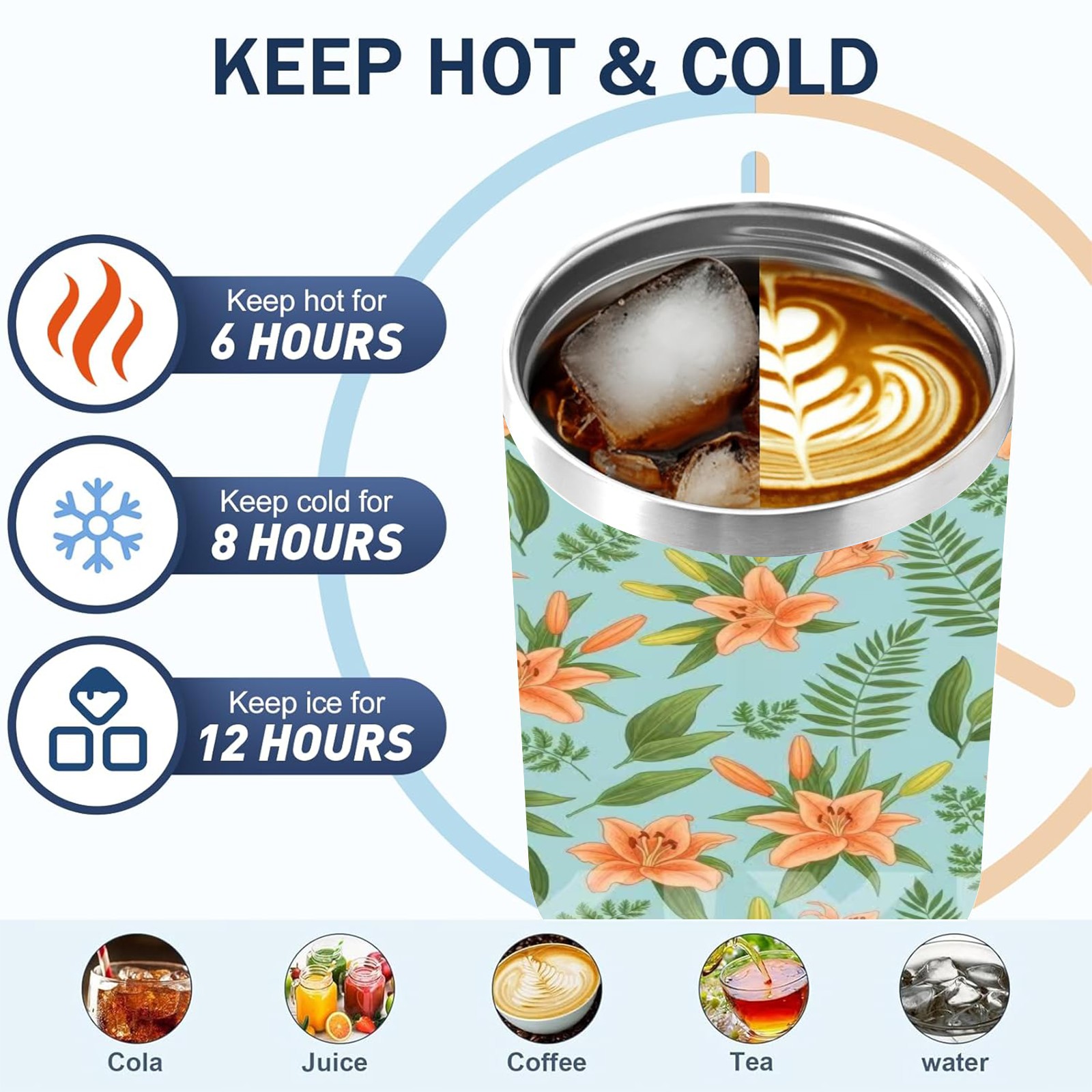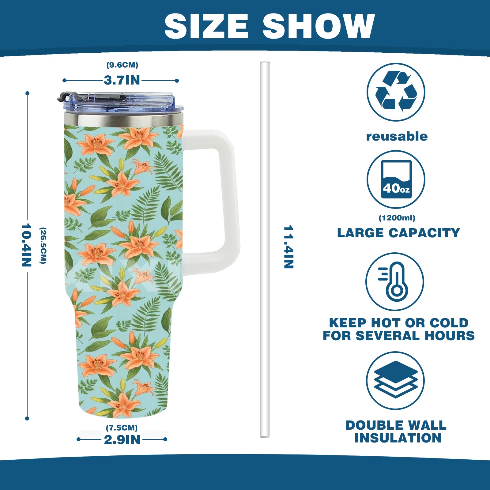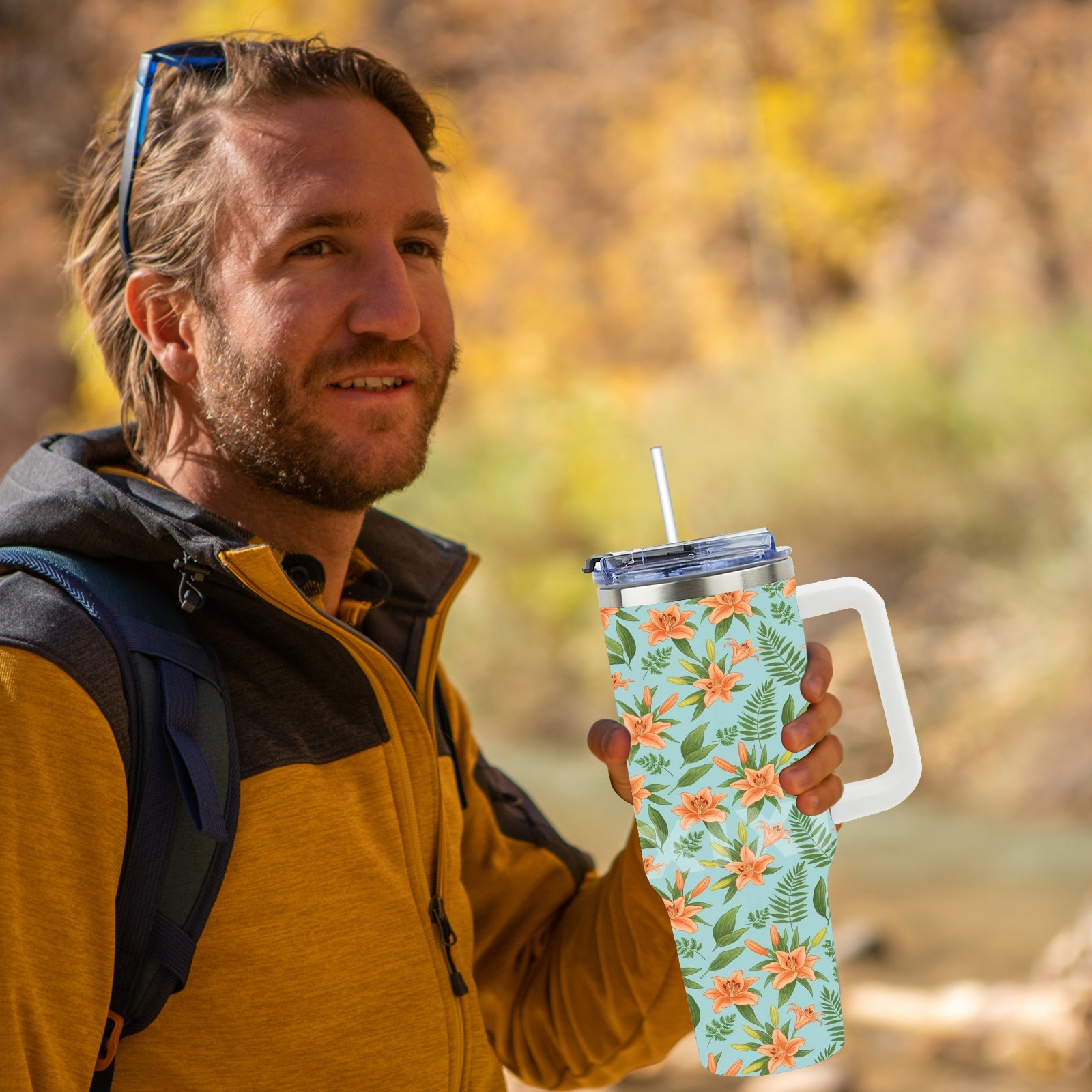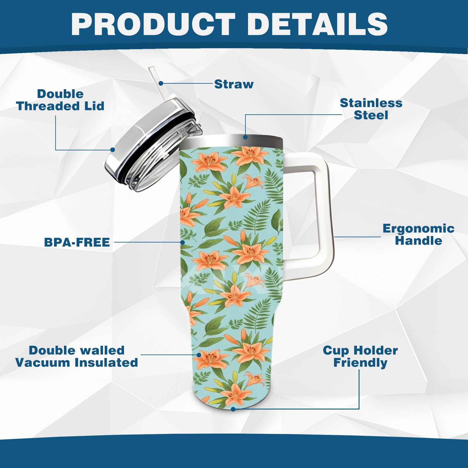 40 унций полностью напечатанный автомобильный стакан Orange Floral
