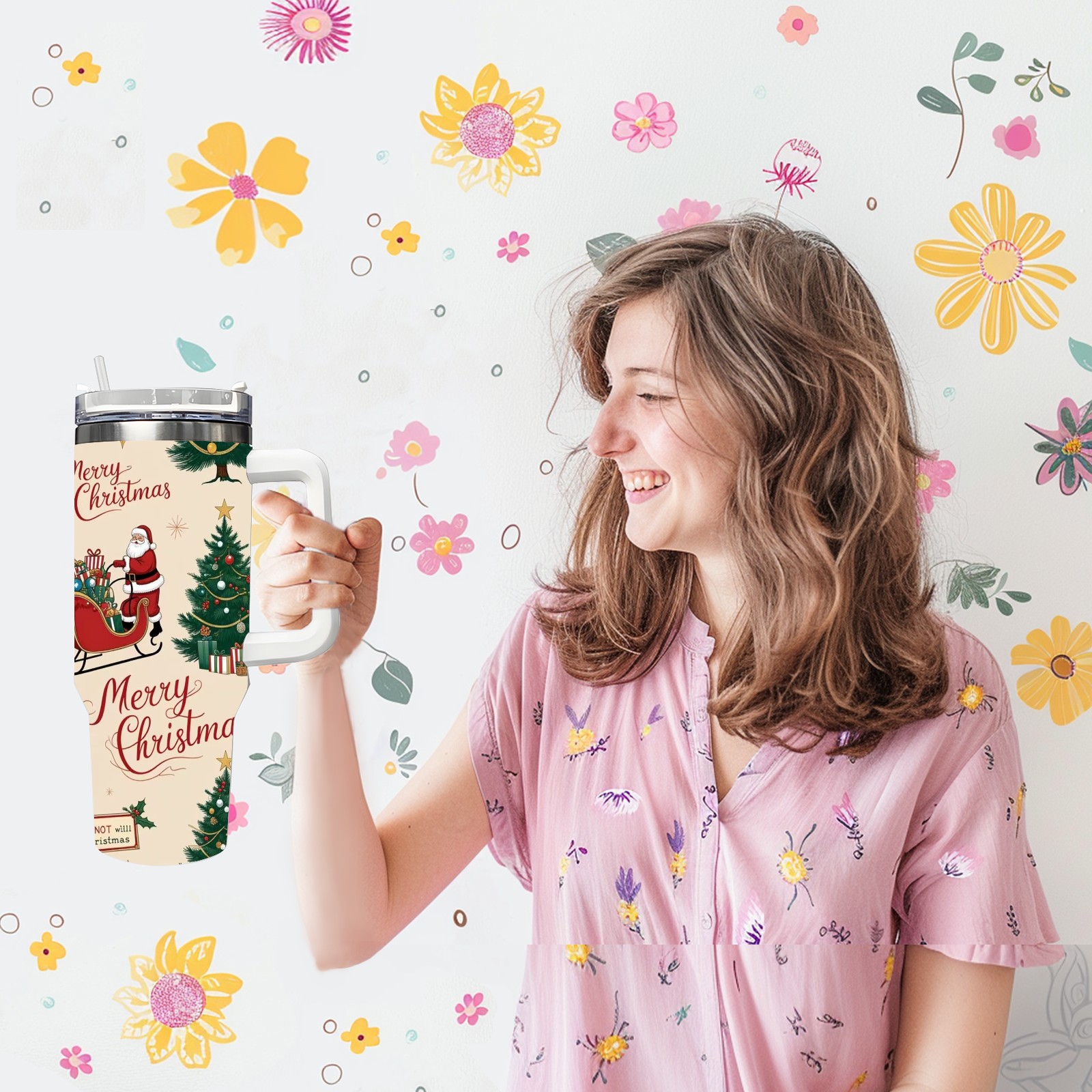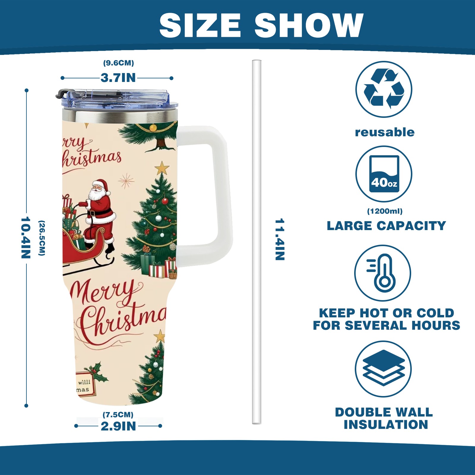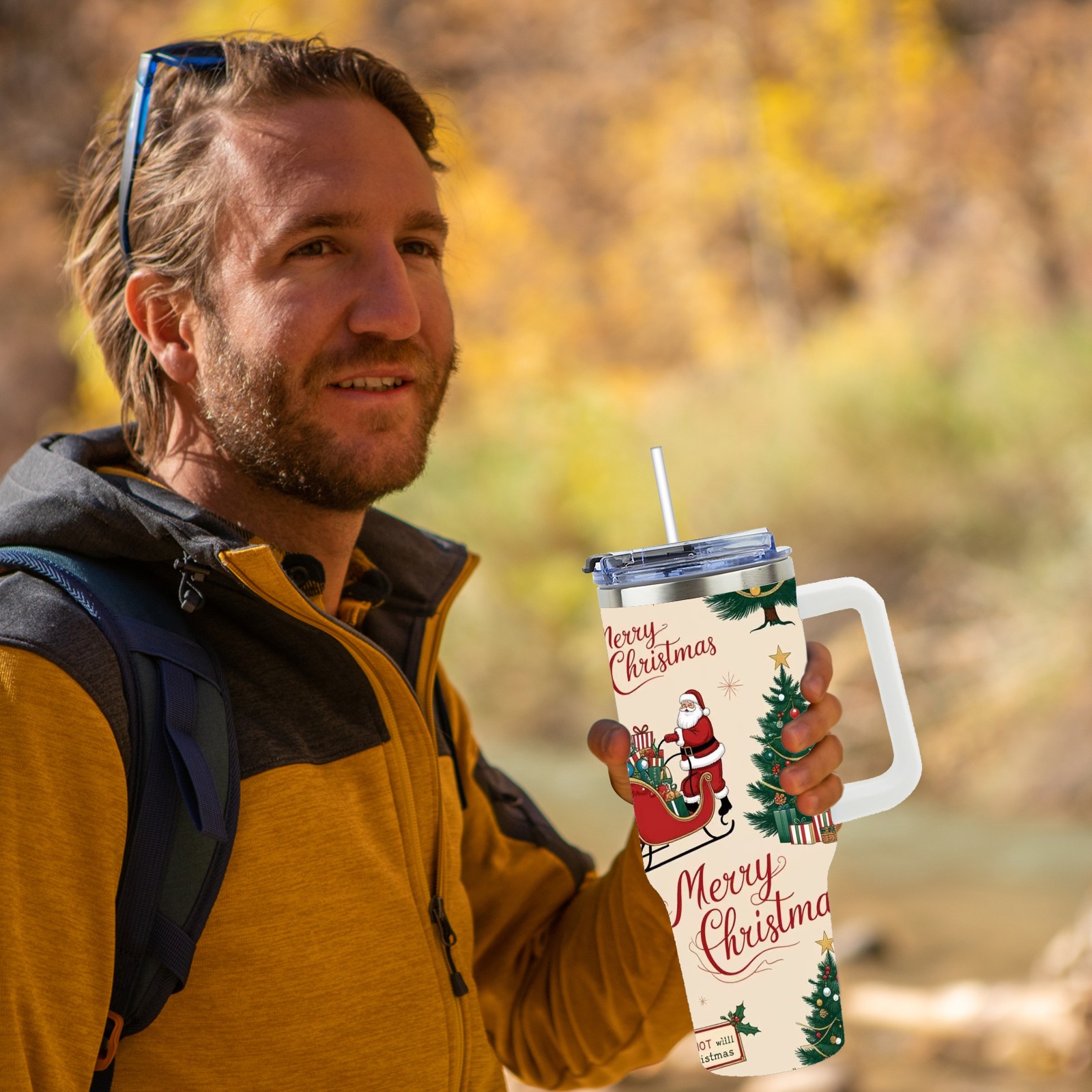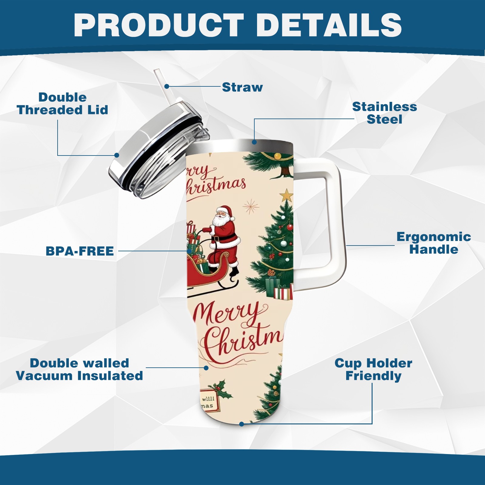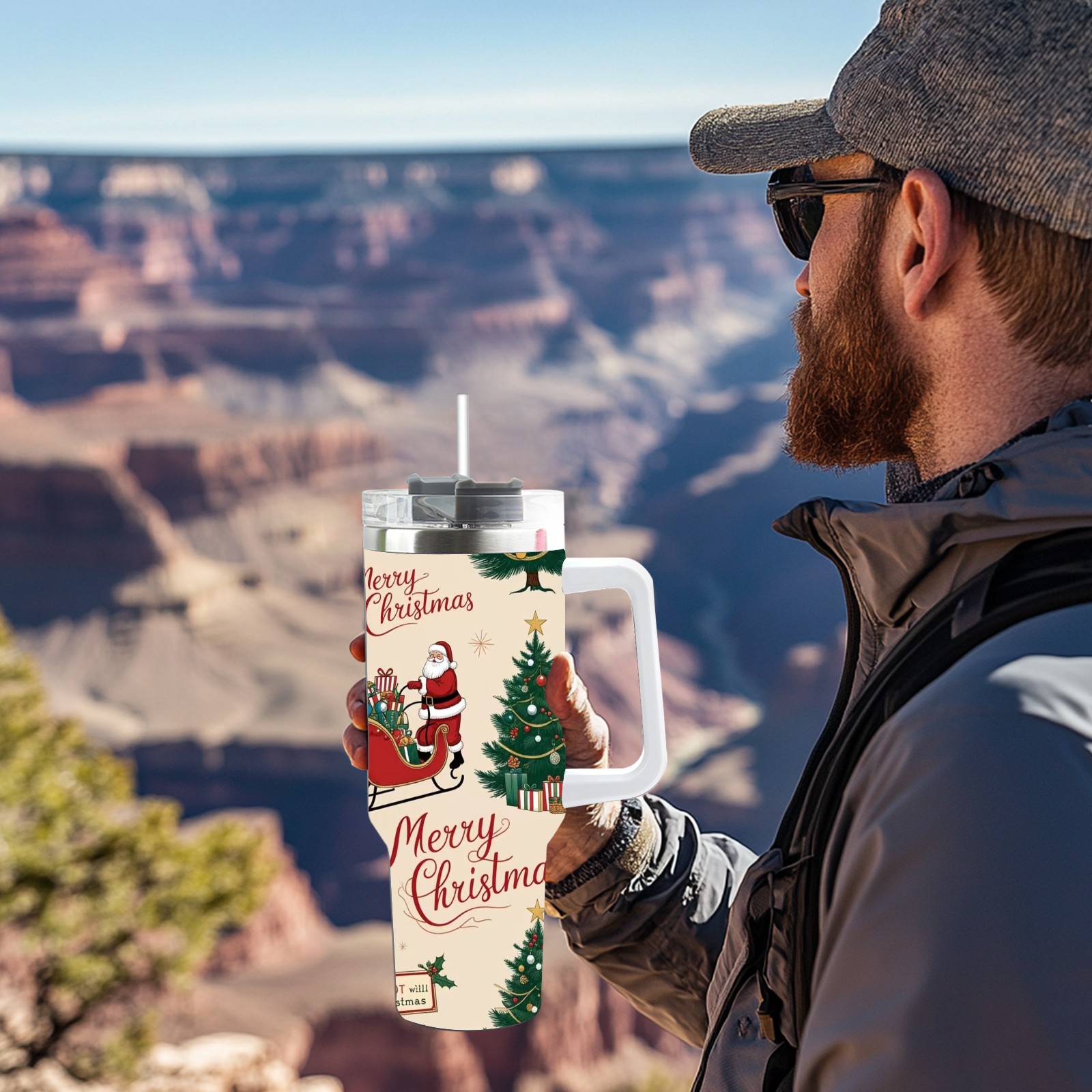 40 унций полностью напечатанный автомобильный стакан Merry Christmas