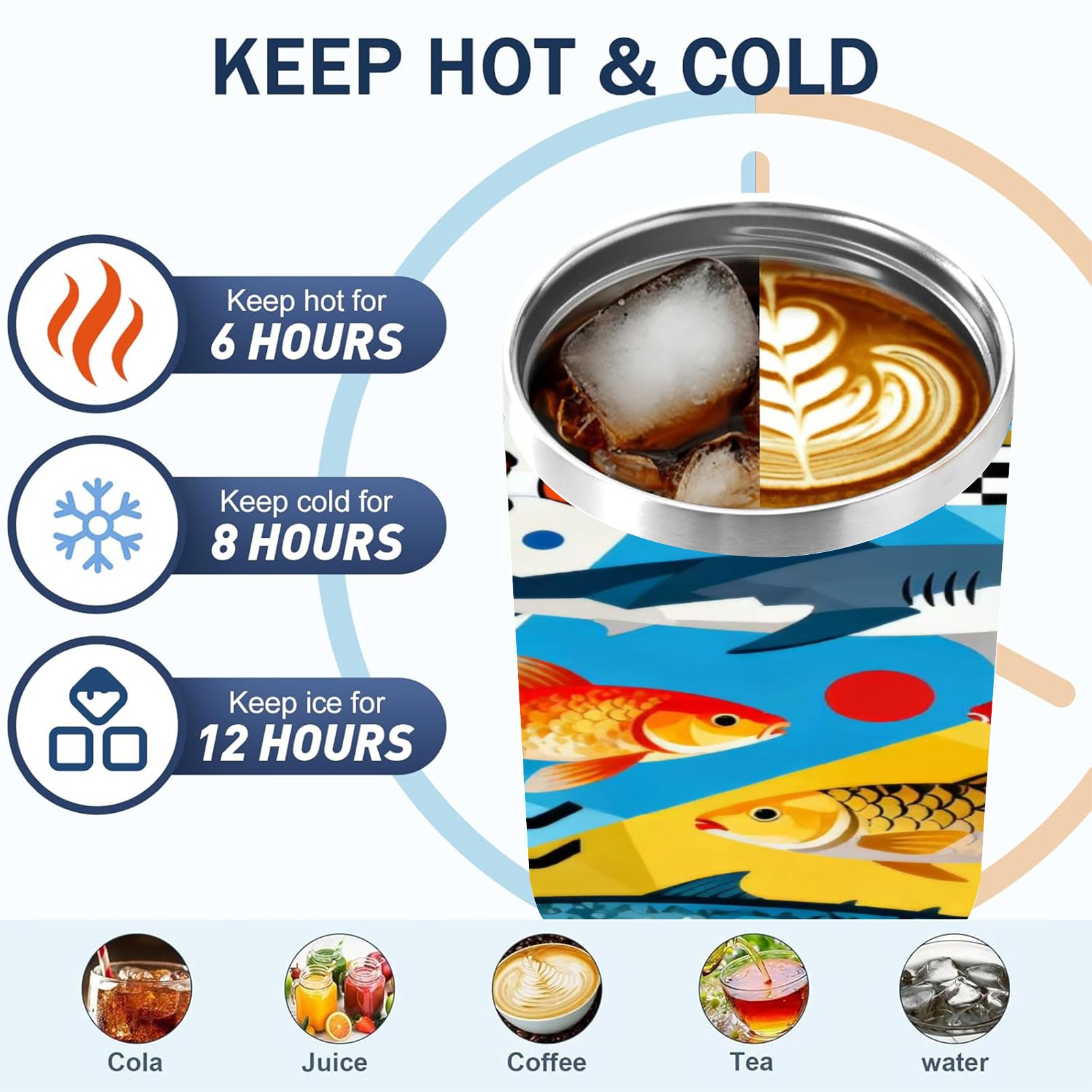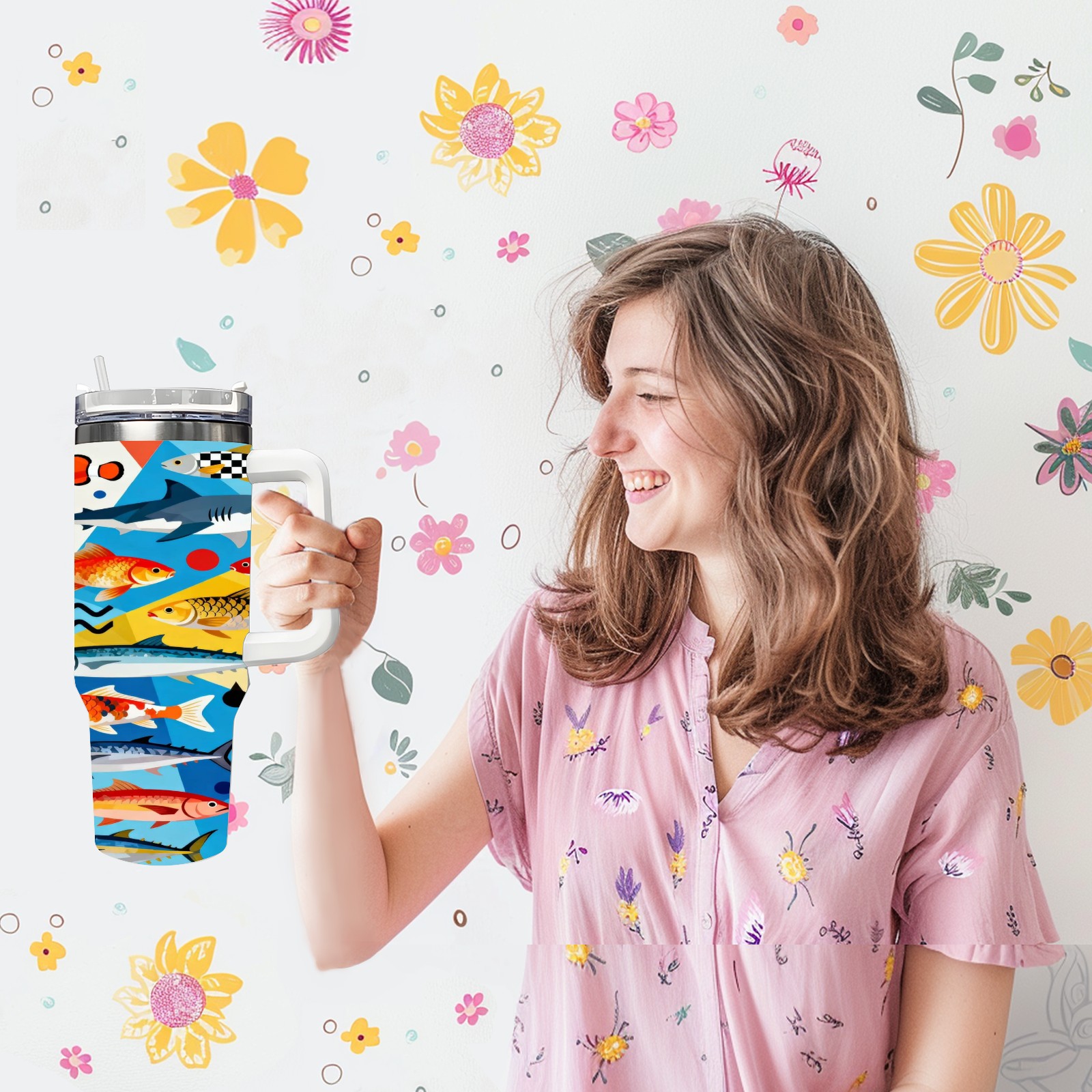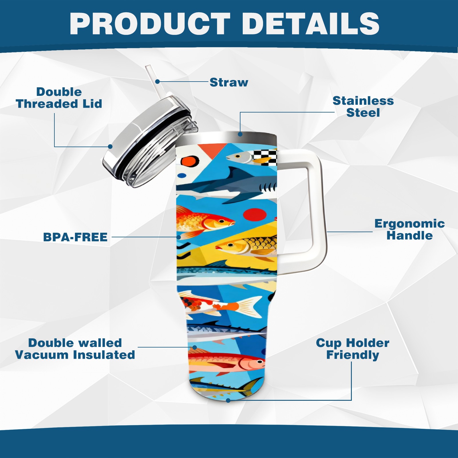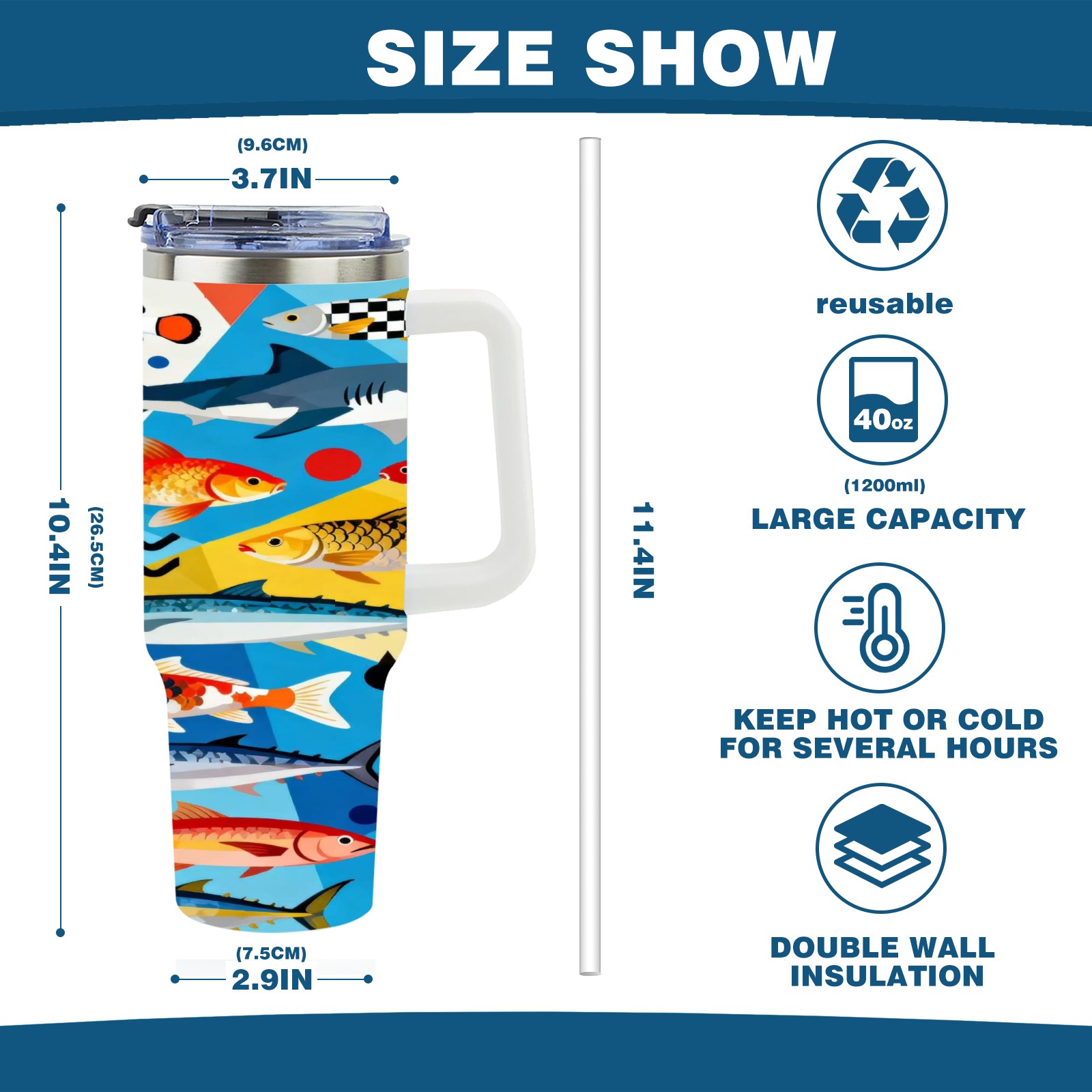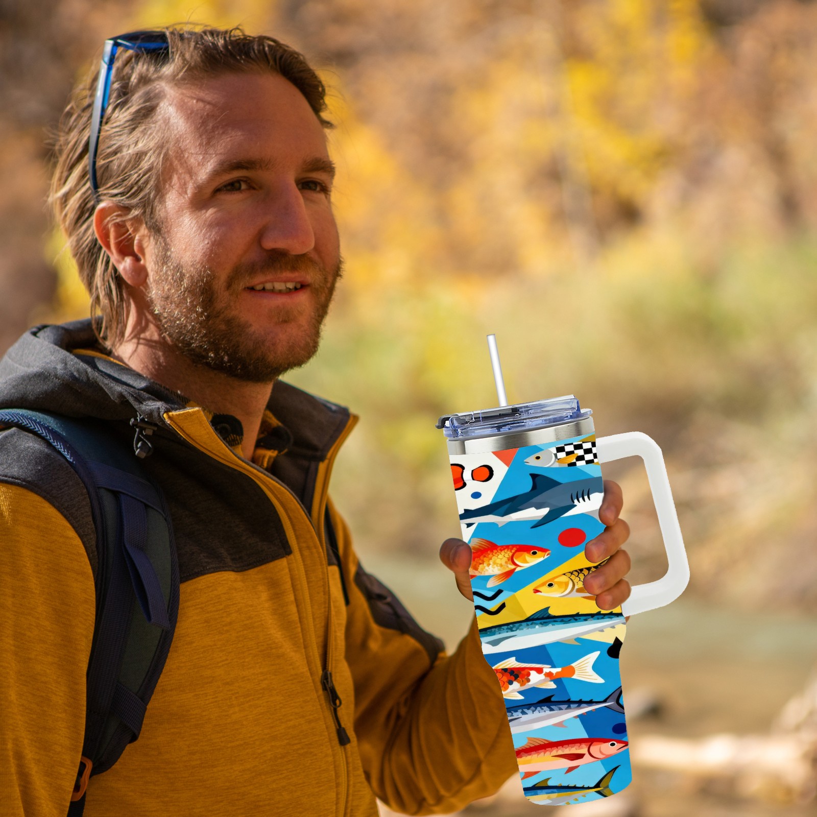 40 унций полностью напечатанный автомобильный стакан Colorful Fish