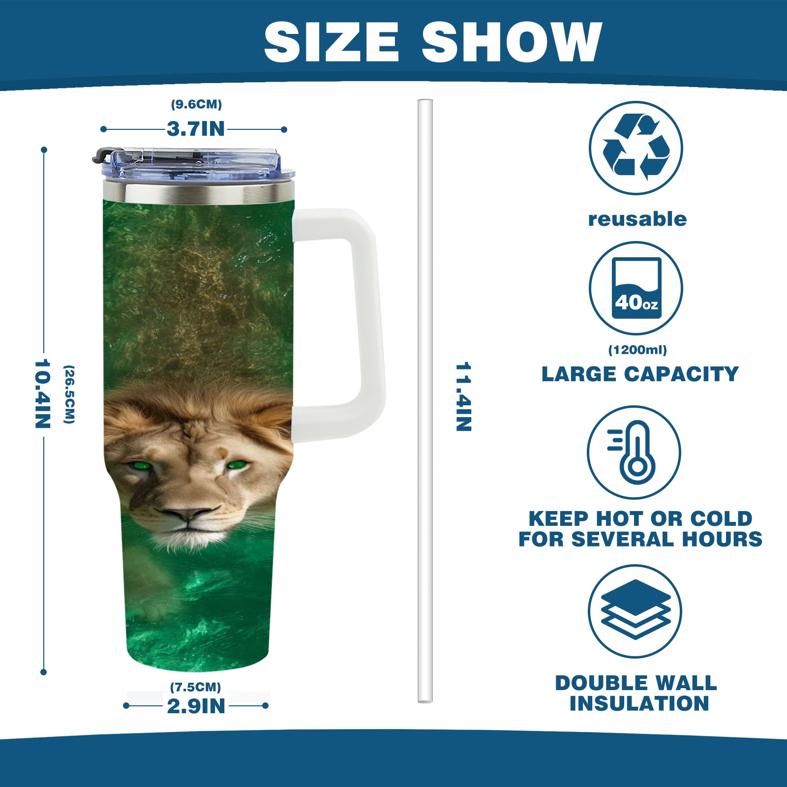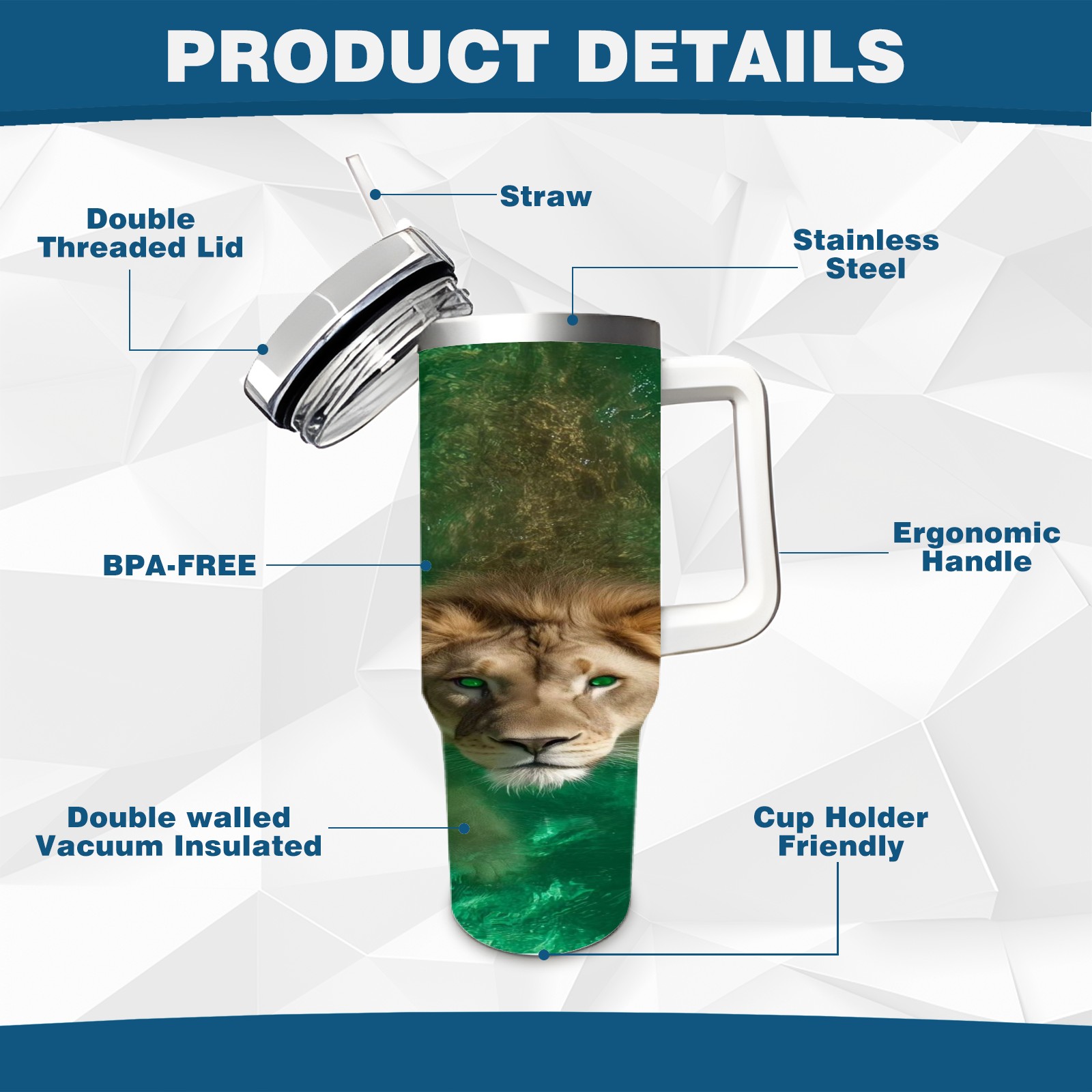 40 унций полностью напечатанный автомобильный стакан Water Lion