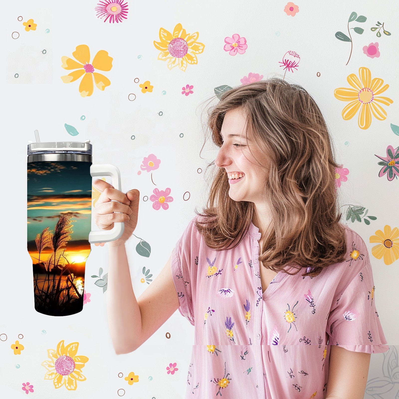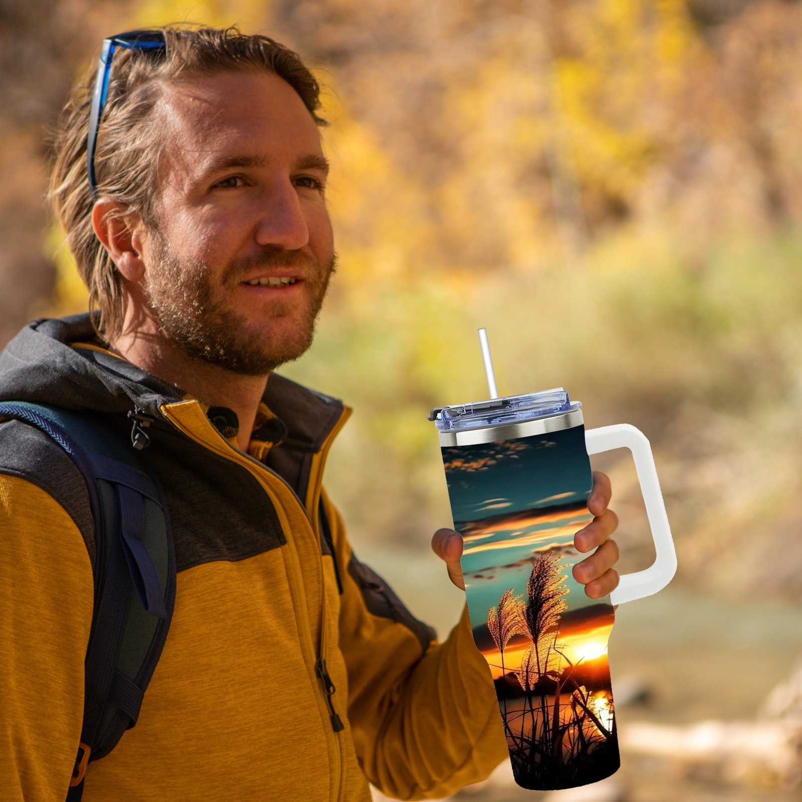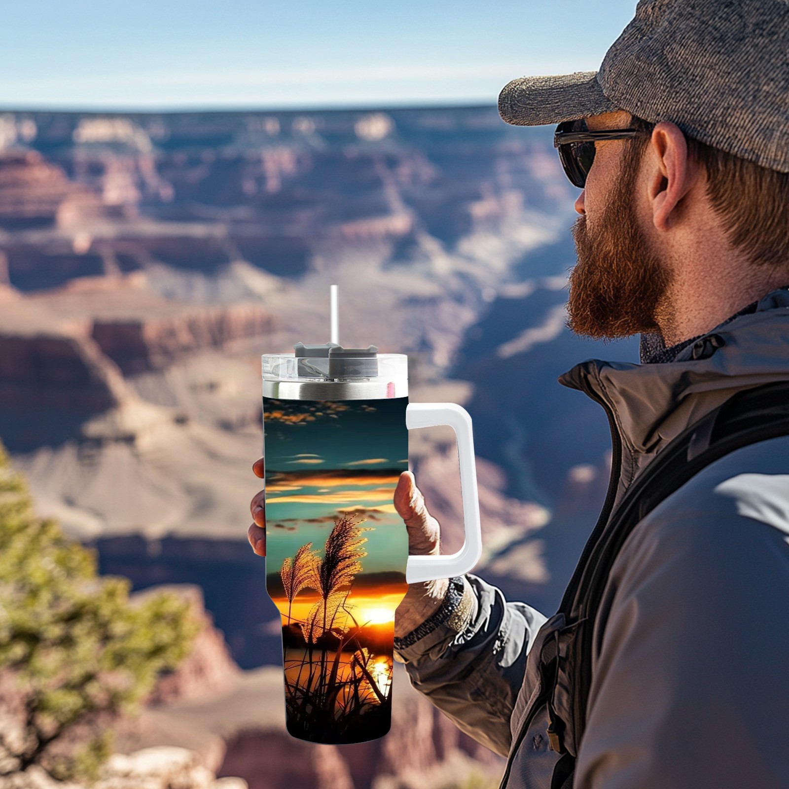 40 унций полностью напечатанный автомобильный стакан Sunset Reed