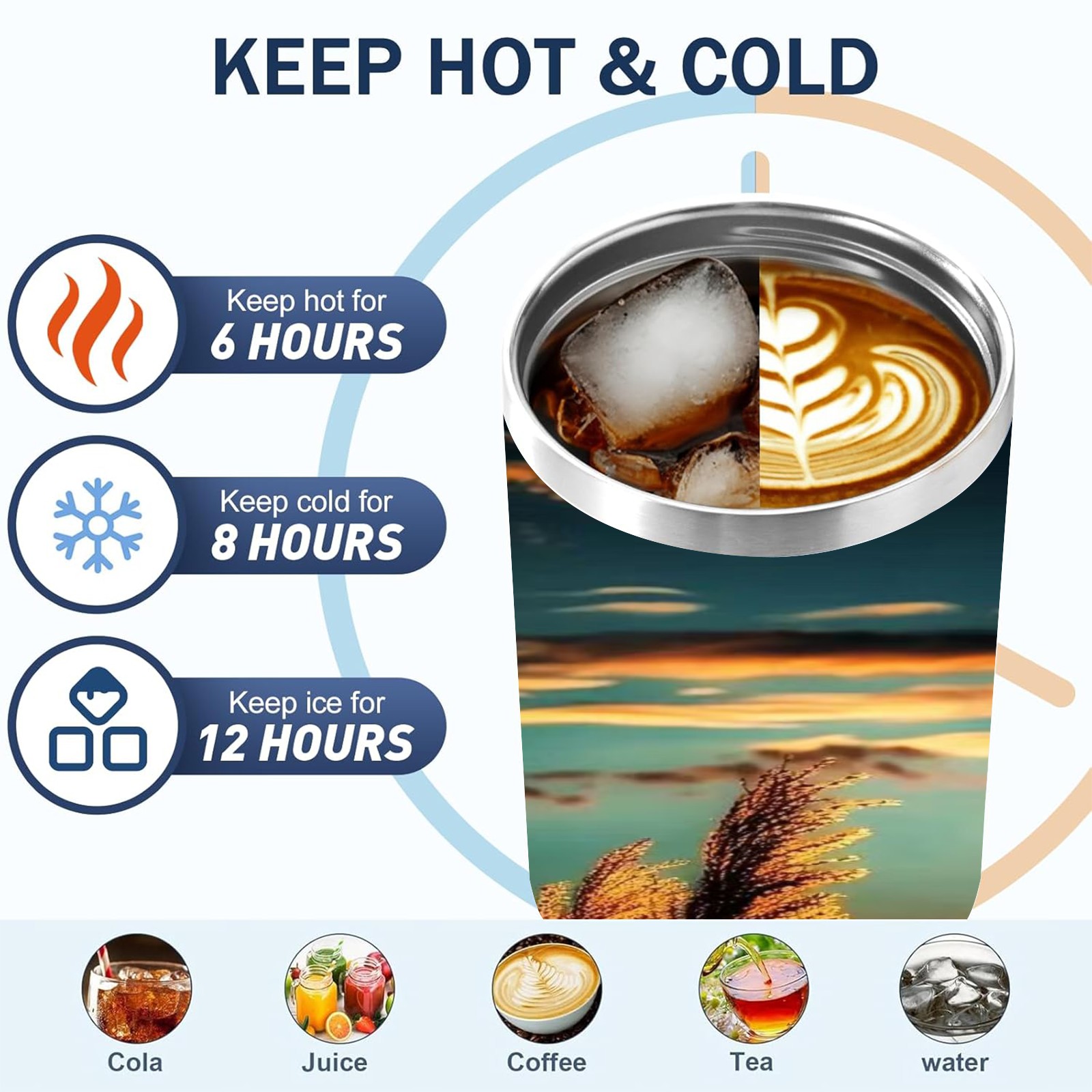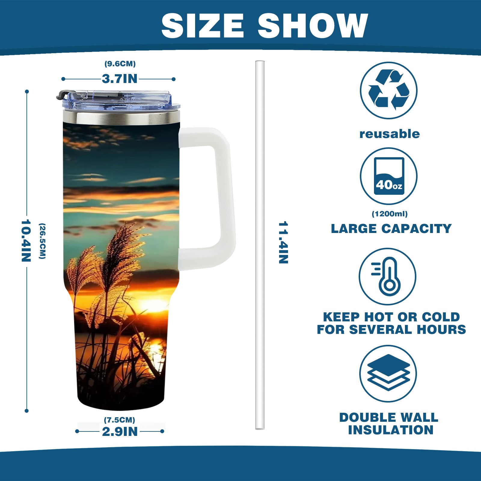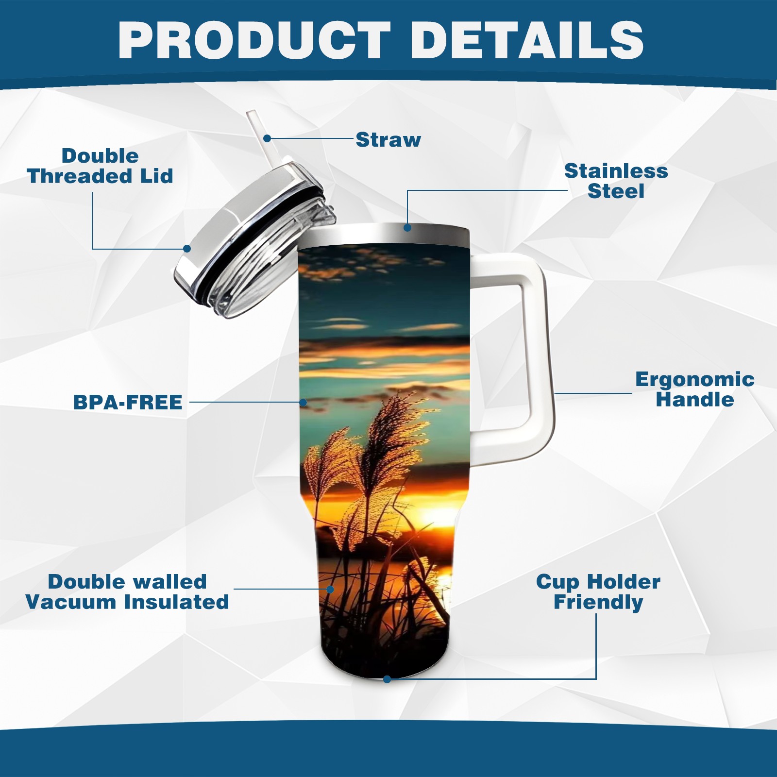 40 унций полностью напечатанный автомобильный стакан Sunset Reed