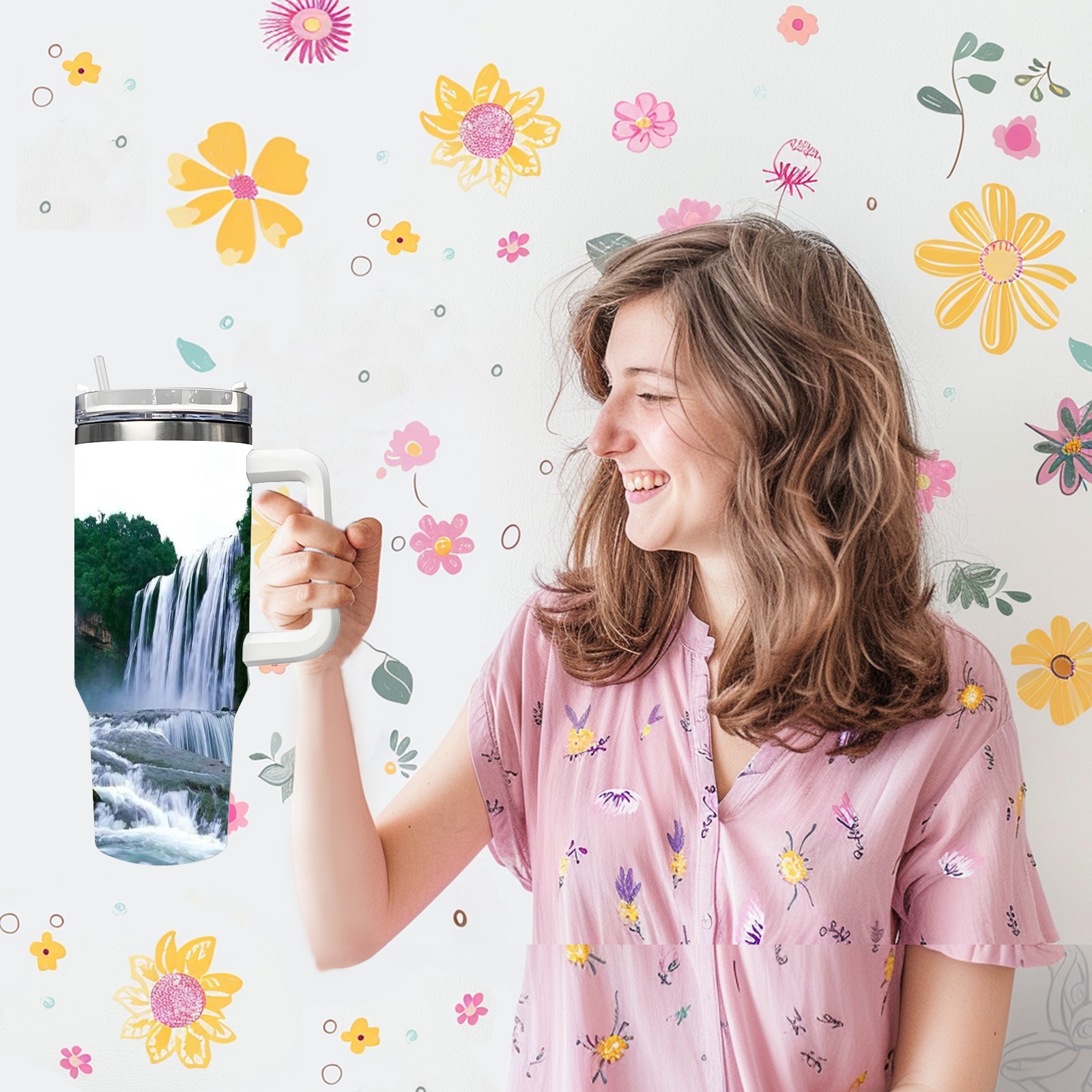 40 унций полностью напечатанный автомобильный стакан Waterfall