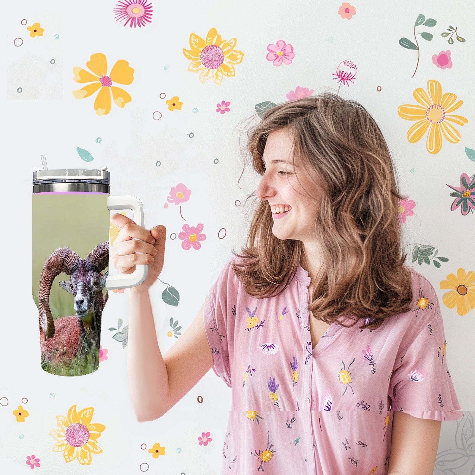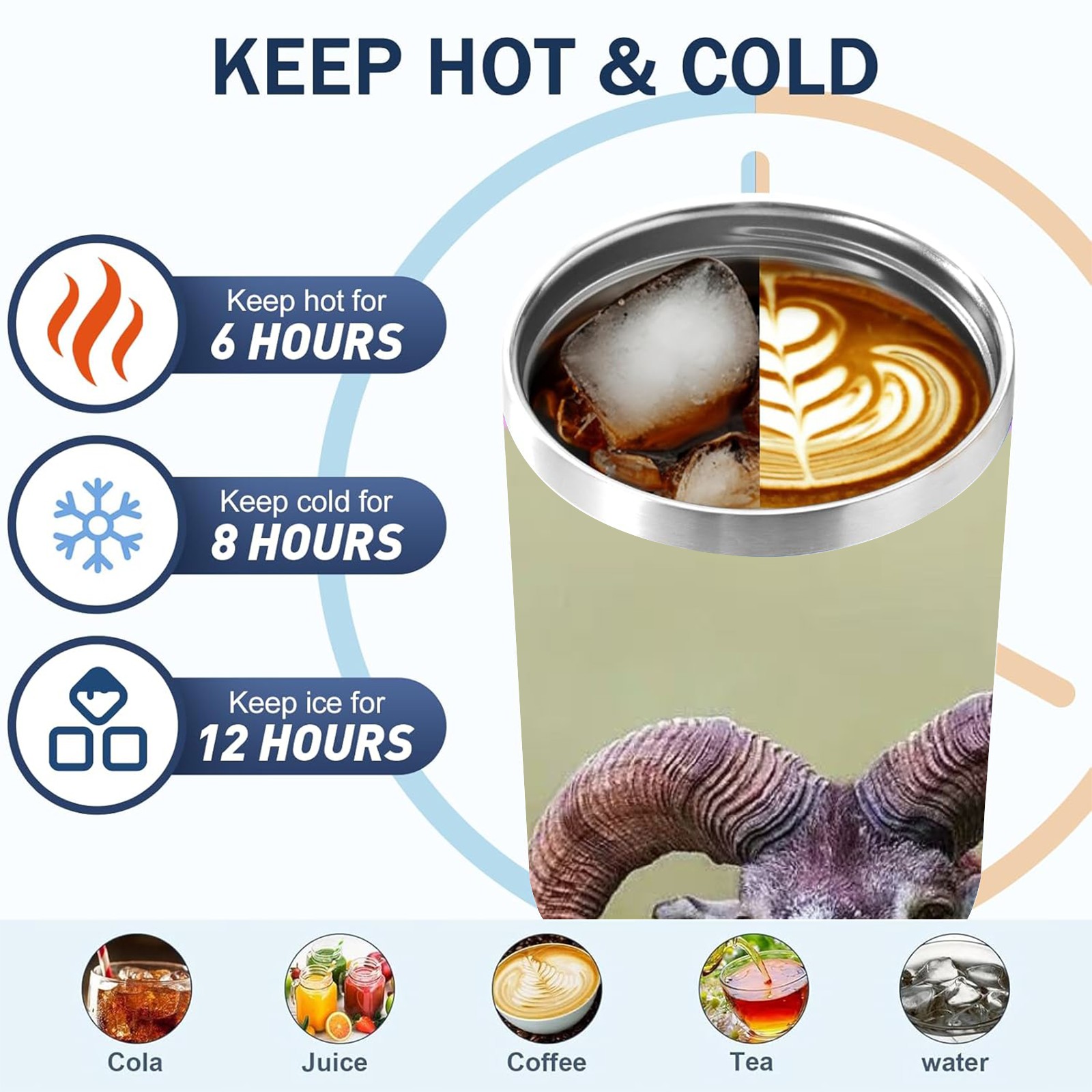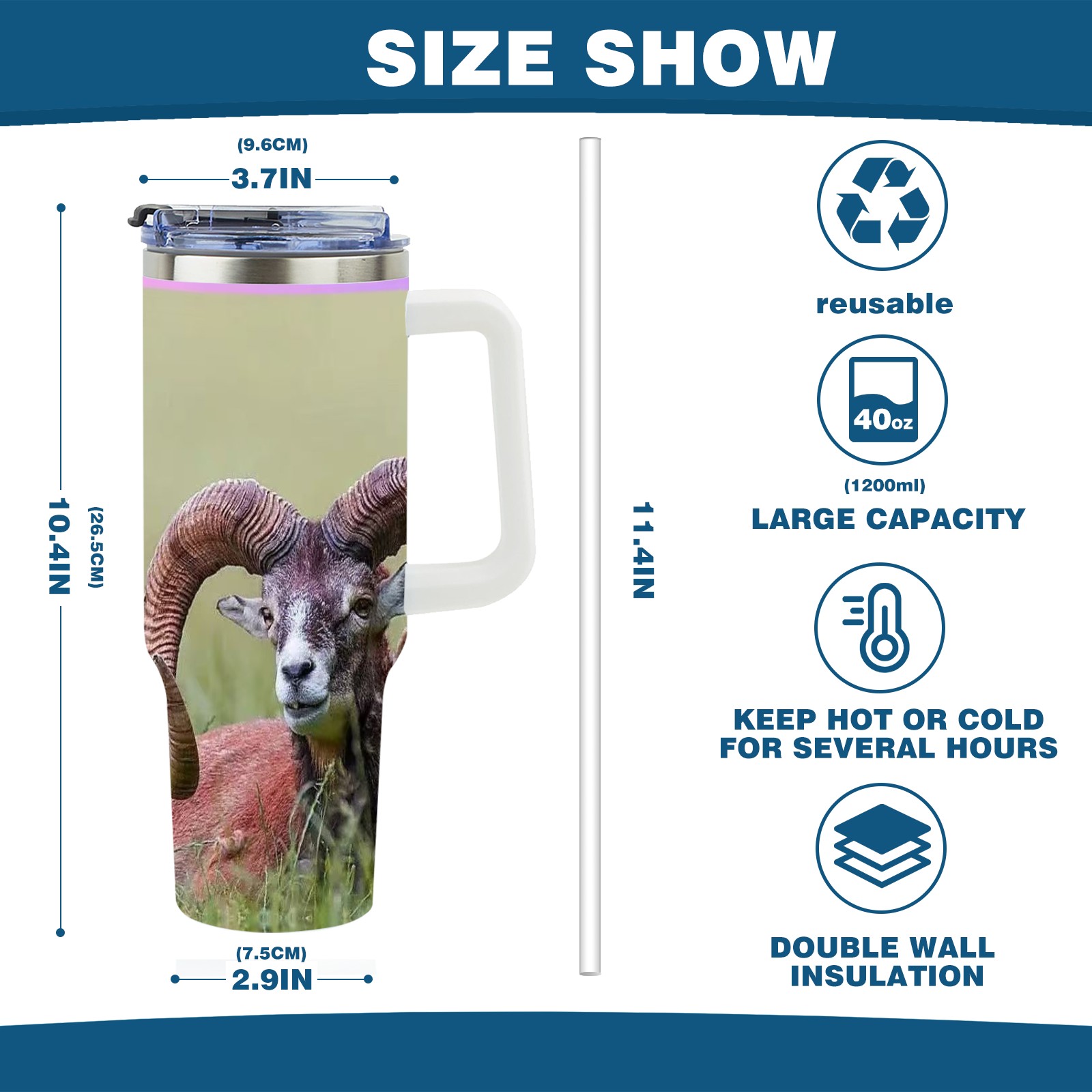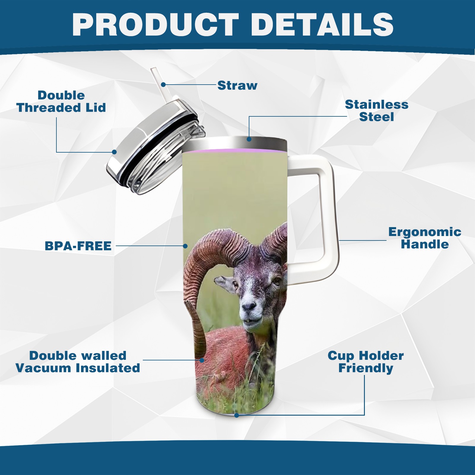 40 унций полностью напечатанный автомобильный стакан Bighorn Sheep