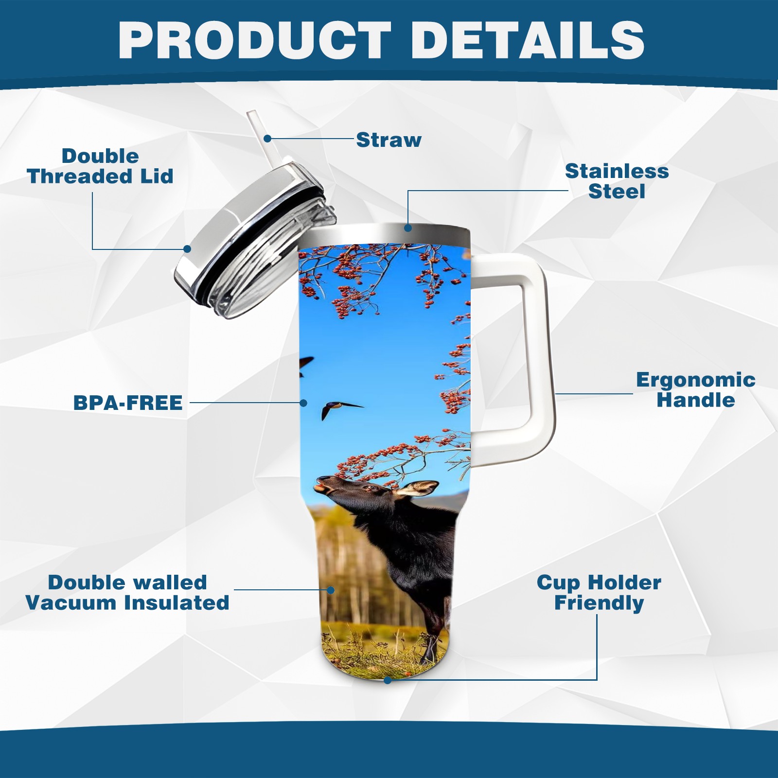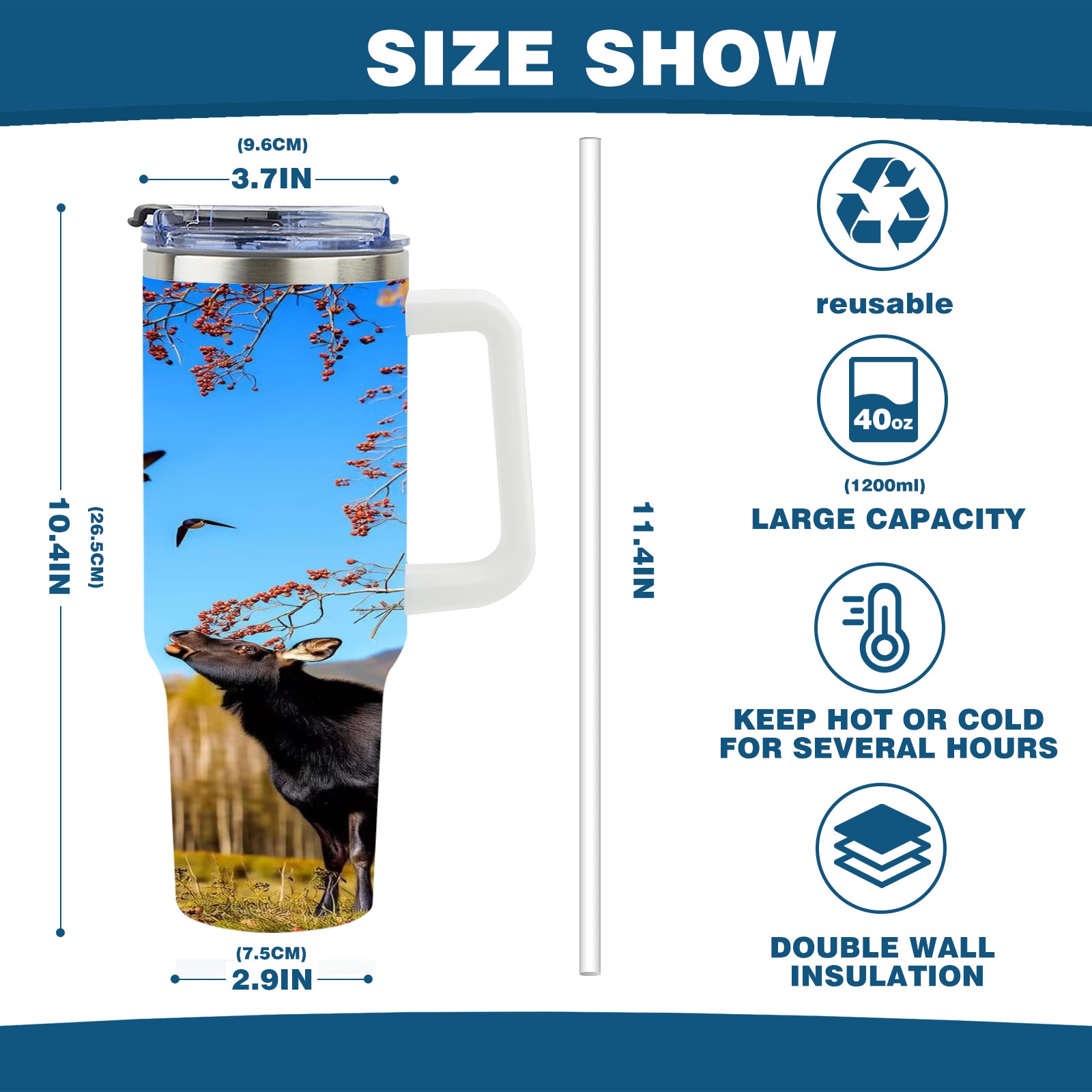 • С большой емкостью 40 унций, он обеспечивает вас гидратацией в течение всего дня, идеально подходит для воды, кофе, сока или других напитков. Эргономичный дизайн идеально вписывается в автомобильные держатели для бутылок, а прочный, герметичный колпачок предотвращает утечки во время передвижения. Путешествие. Антискользящее основание обеспечивает устойчивость, а гладкие поверхности делают уборку легкой — просто мойте вручную или кладите в посудомоечную машину (рекомендуется верхний поддон).