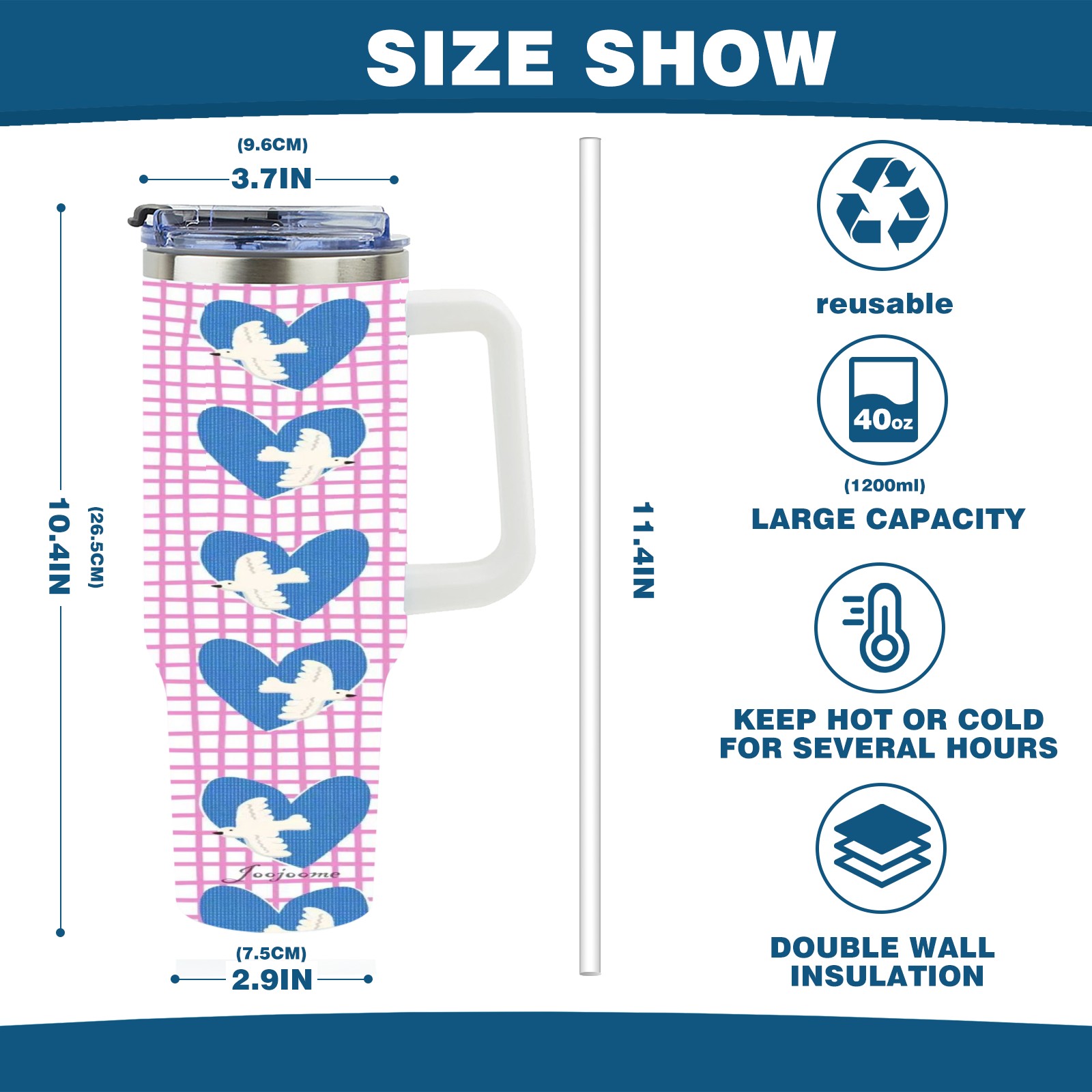 • С большой емкостью 40 унций, он обеспечивает вас гидратацией в течение всего дня, идеально подходит для воды, кофе, сока или других напитков. Эргономичный дизайн идеально вписывается в автомобильные держатели для бутылок, а прочный, герметичный колпачок предотвращает утечки во время передвижения. Путешествие. Антискользящее основание обеспечивает устойчивость, а гладкие поверхности делают уборку легкой — просто мойте вручную или кладите в посудомоечную машину (рекомендуется верхний поддон).