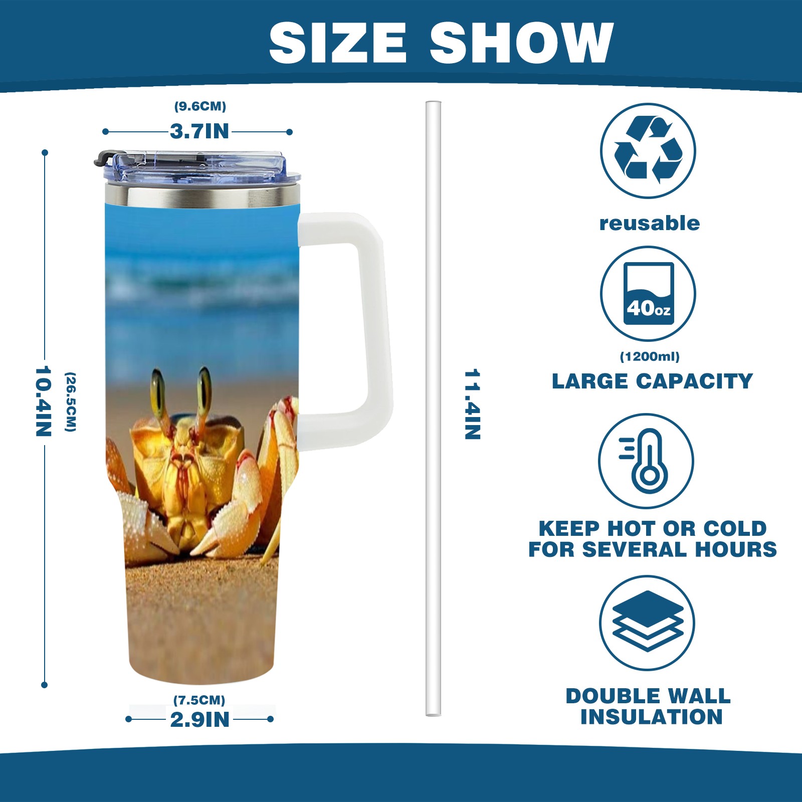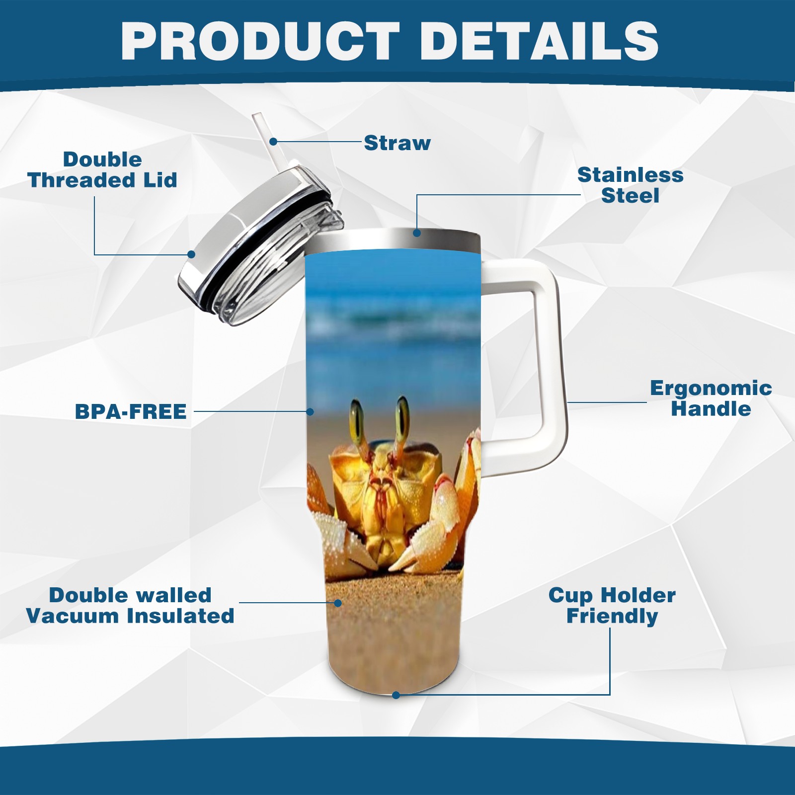 40 унций полностью напечатанный автомобильный стакан Crab