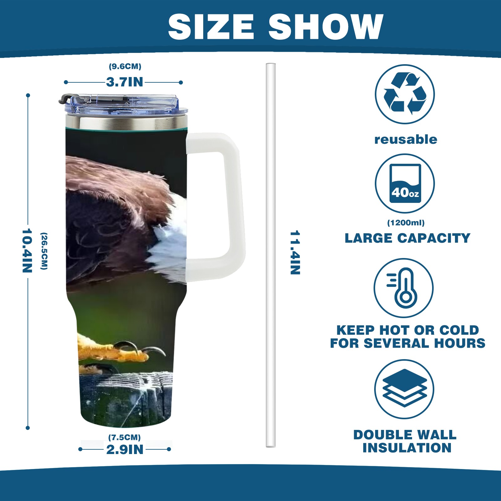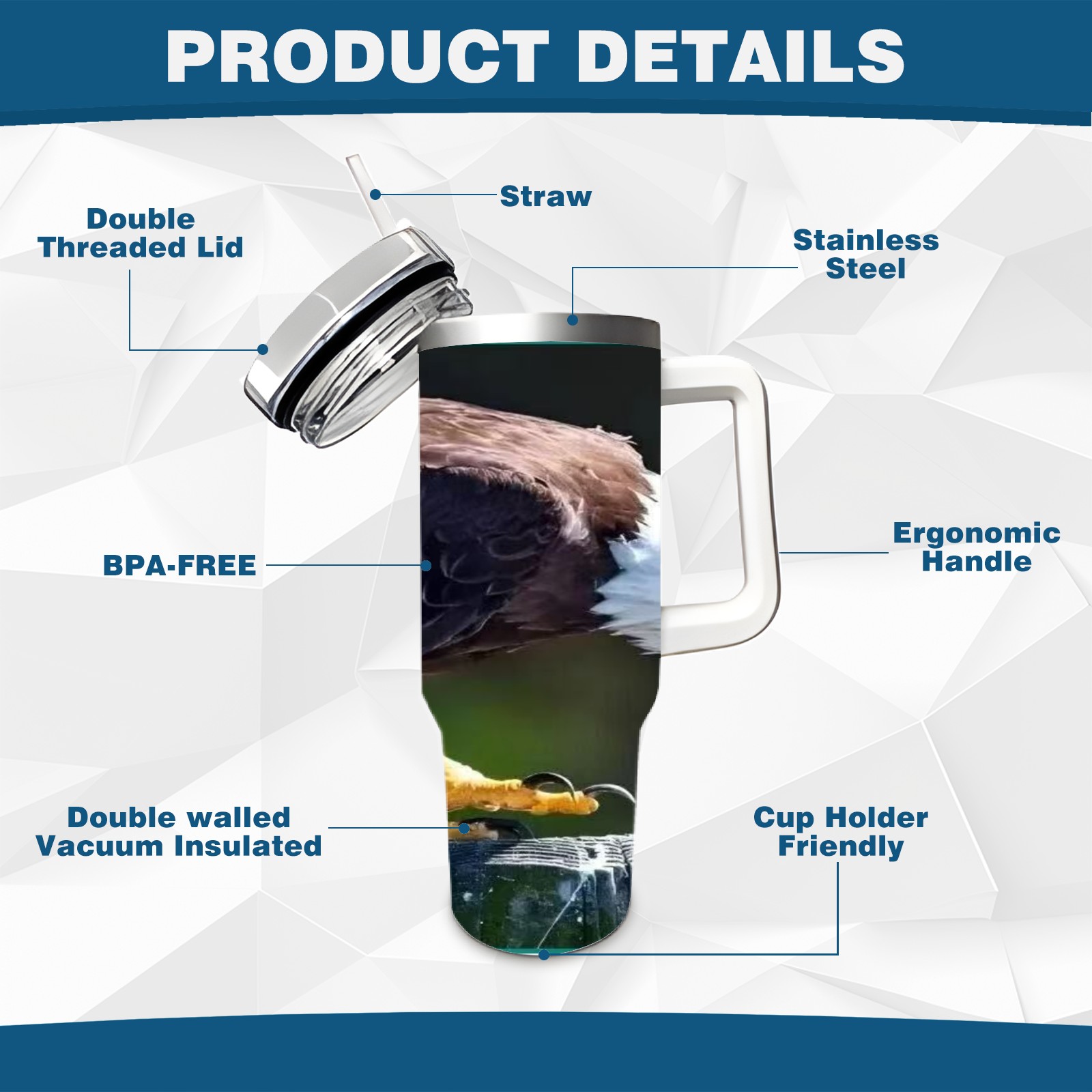 40 унций полностью напечатанный автомобильный стакан Bald Eagle