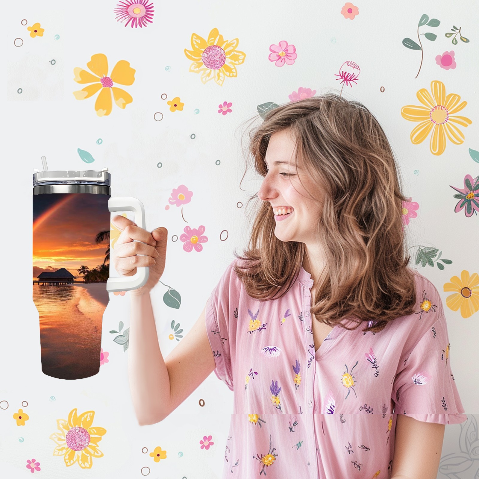 40 унций полностью напечатанный автомобильный стакан Beach House