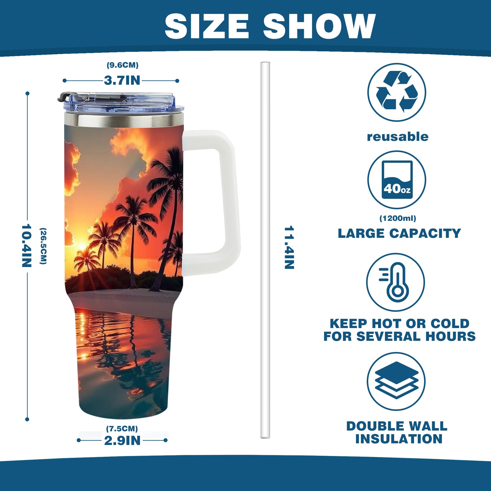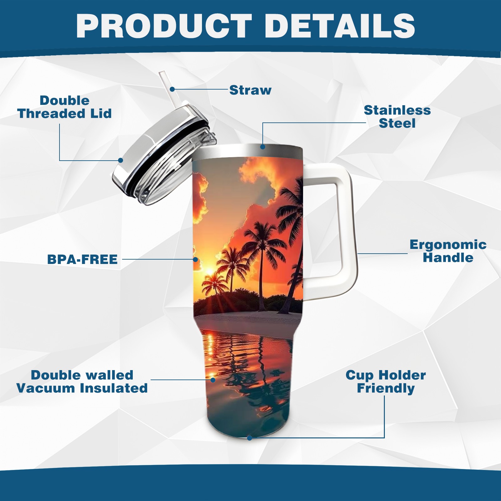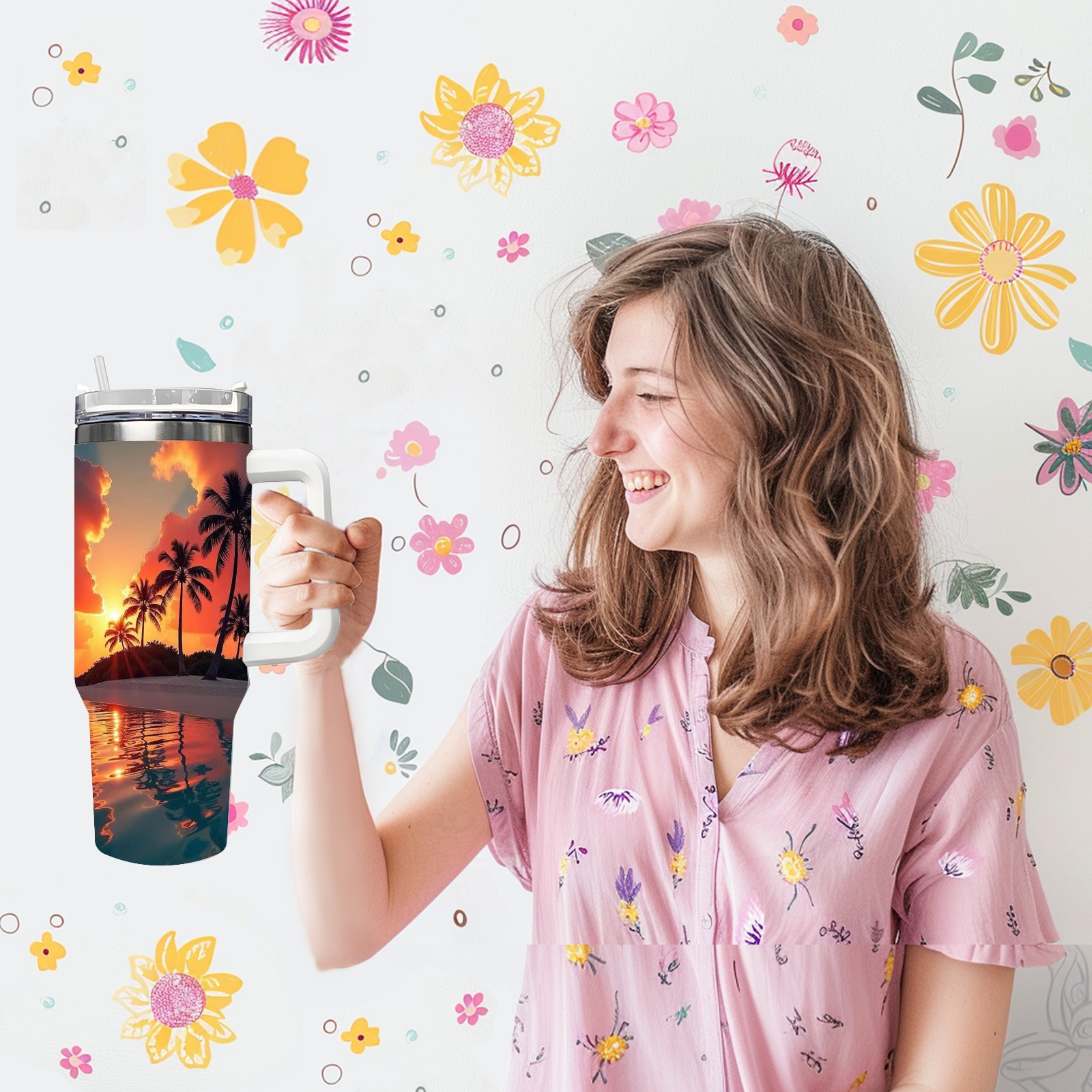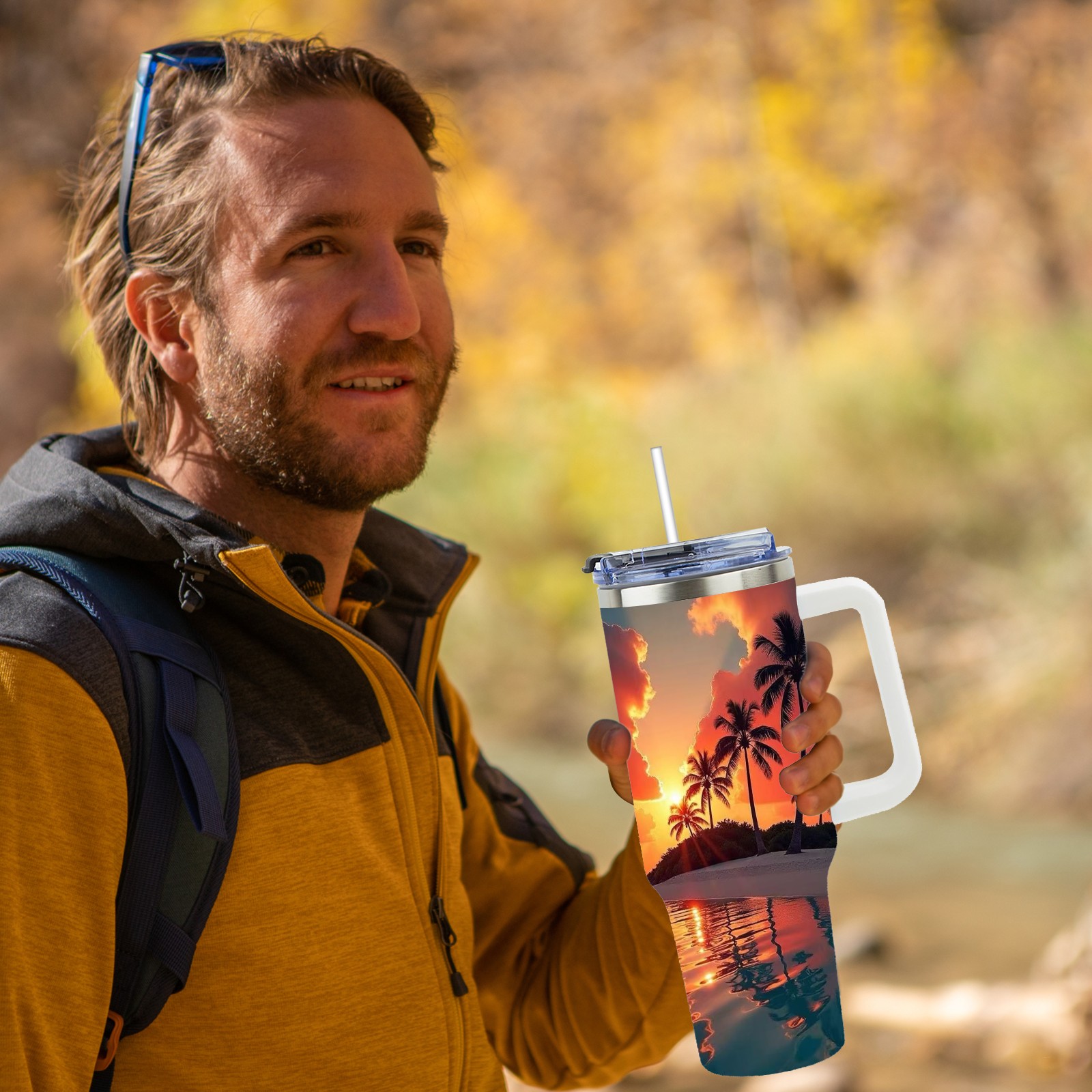 40 унций полностью напечатанный автомобильный стакан Sunset