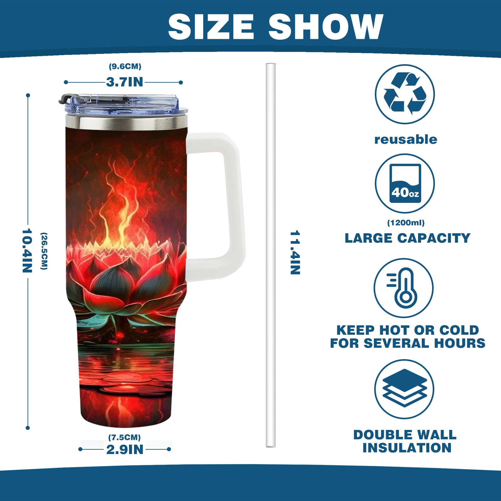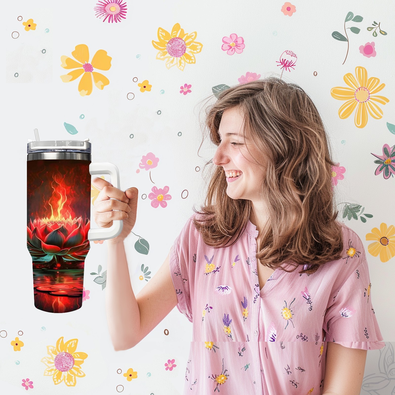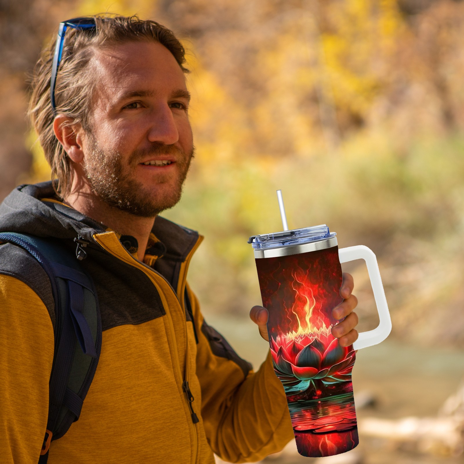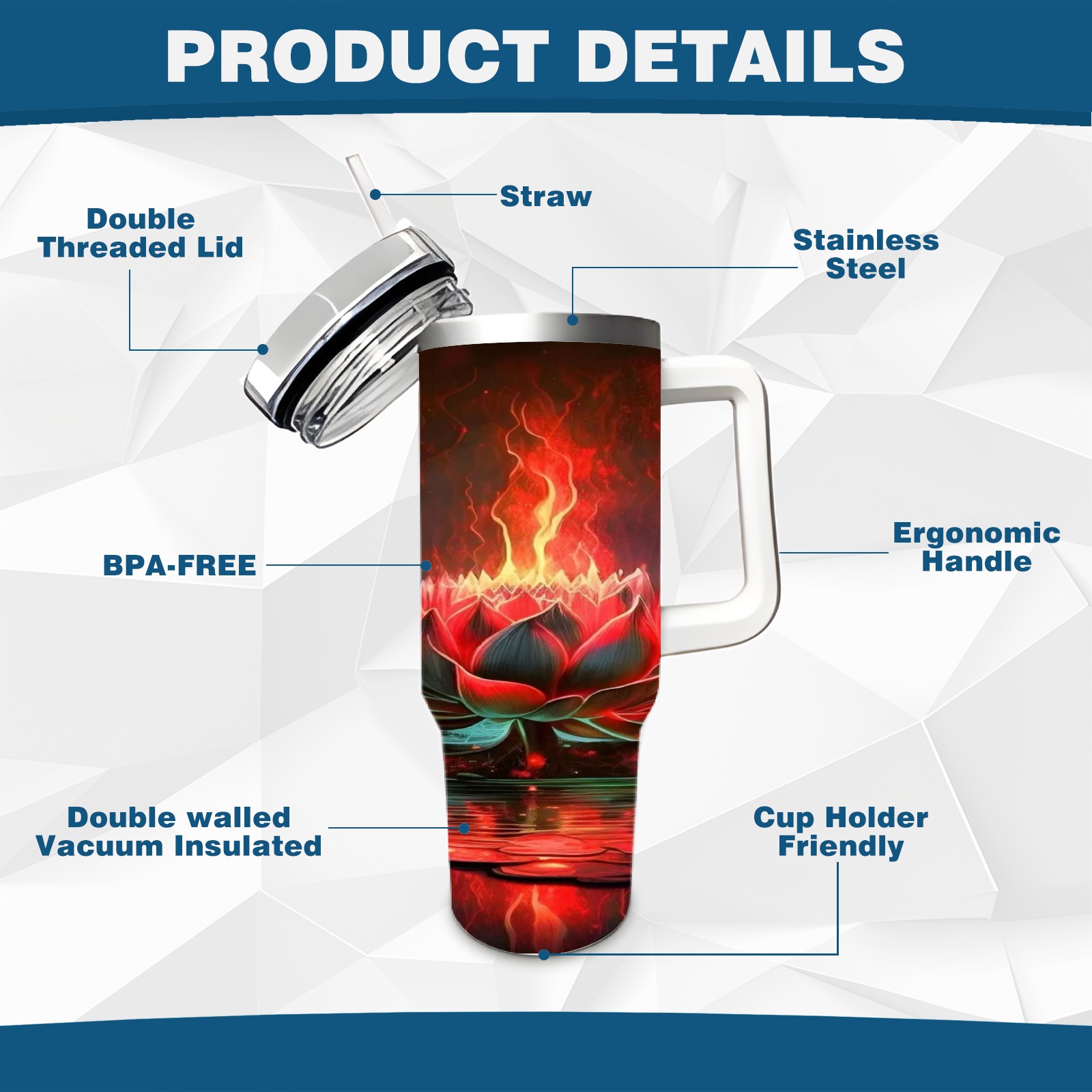 40 унций полностью напечатанный автомобильный стакан Fire Lotus