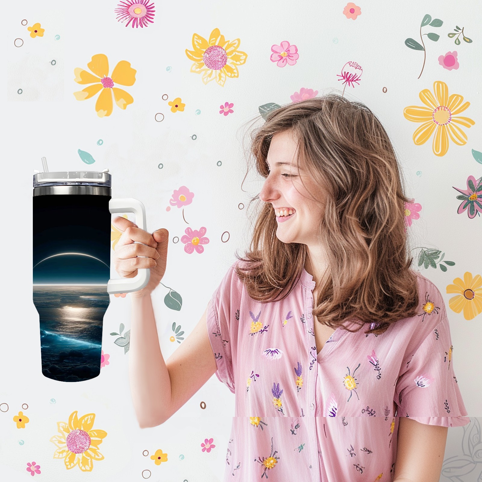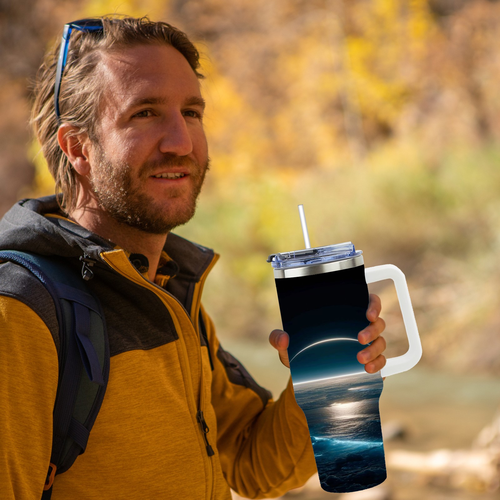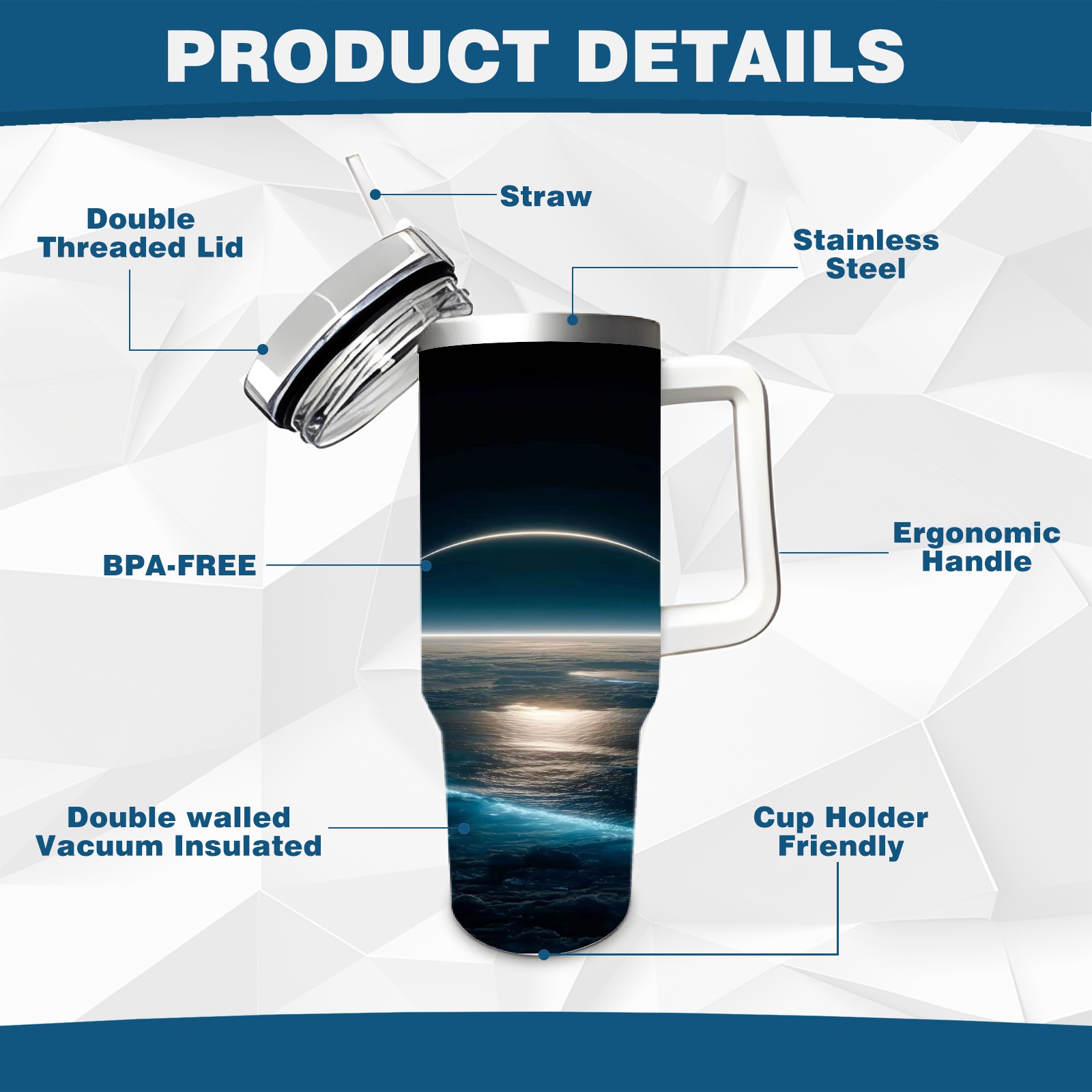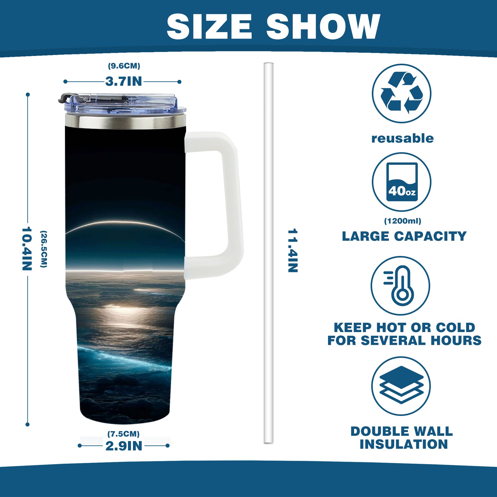 40 унций полностью напечатанный автомобильный стакан Sea And Moon