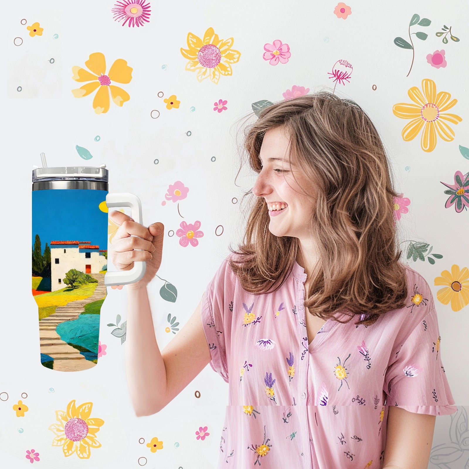 40 унций полностью напечатанный автомобильный стакан Colorful Room