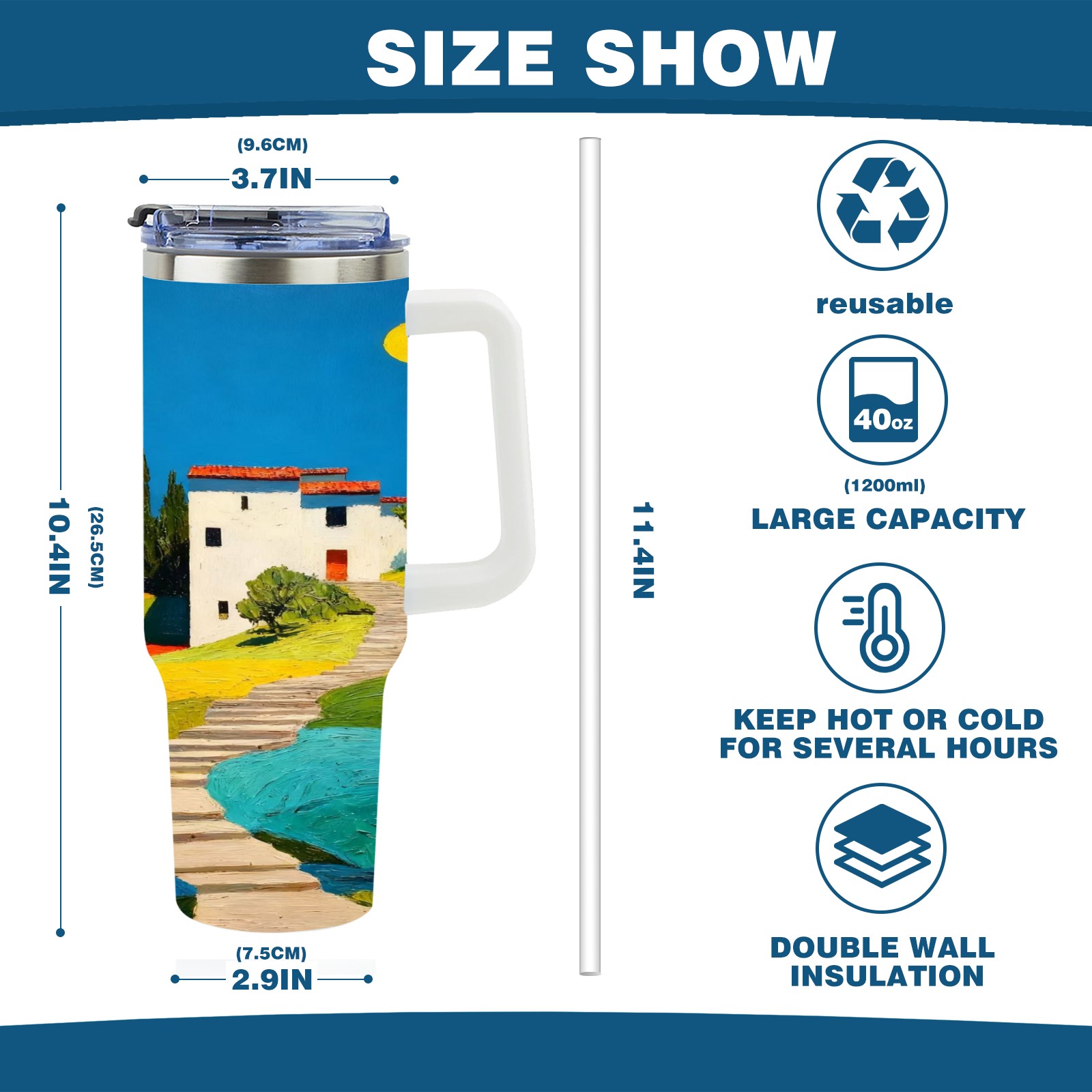 • С большой емкостью 40 унций, он обеспечивает вас гидратацией в течение всего дня, идеально подходит для воды, кофе, сока или других напитков. Эргономичный дизайн идеально вписывается в автомобильные держатели для бутылок, а прочный, герметичный колпачок предотвращает утечки во время передвижения. Путешествие. Антискользящее основание обеспечивает устойчивость, а гладкие поверхности делают уборку легкой — просто мойте вручную или кладите в посудомоечную машину (рекомендуется верхний поддон).