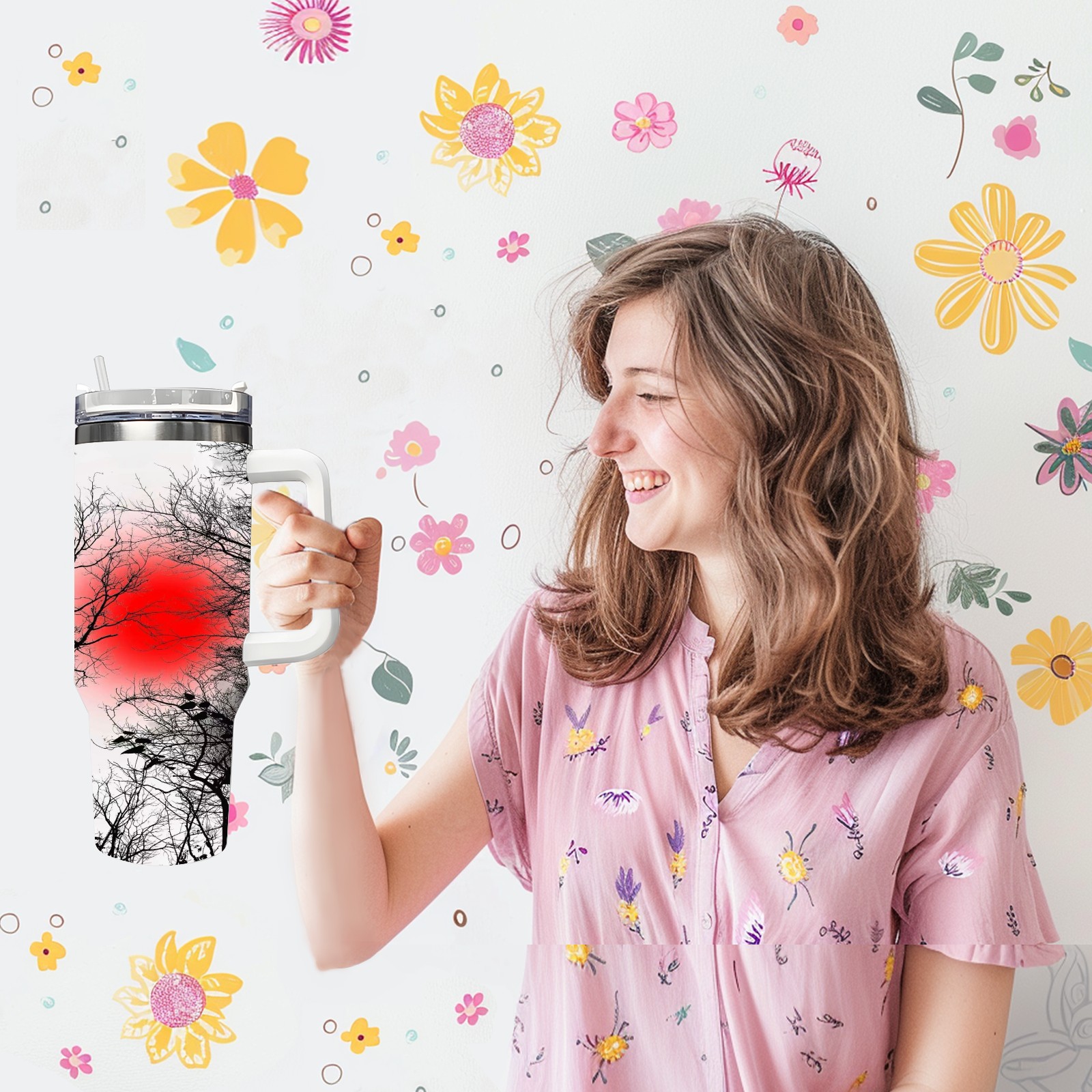 40 унций полностью напечатанный автомобильный стакан Bare Branches