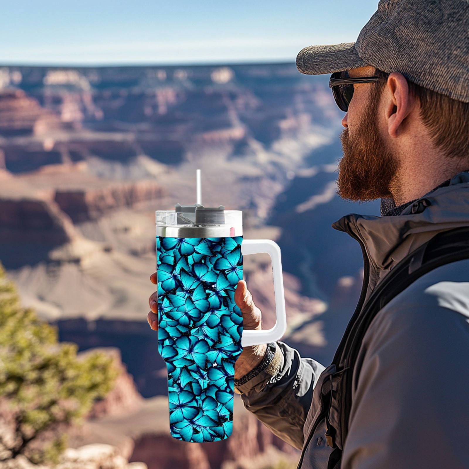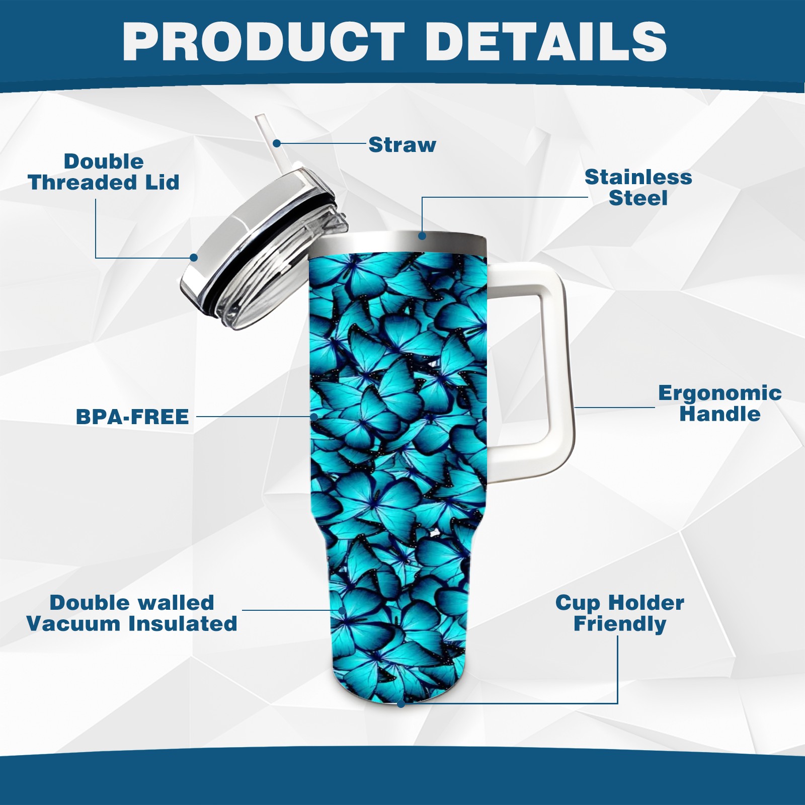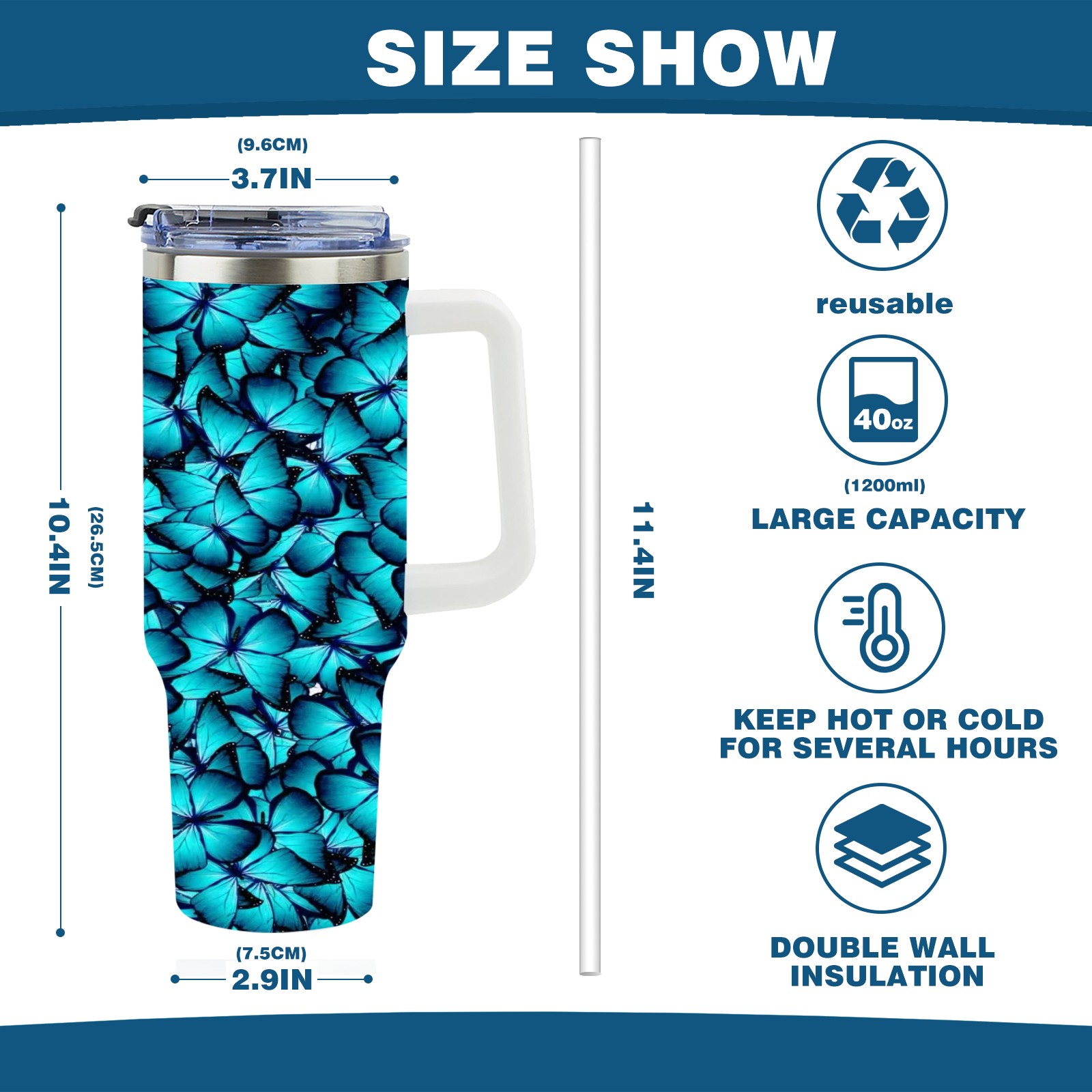 40 унций полностью напечатанный автомобильный стакан Blue Butterfly