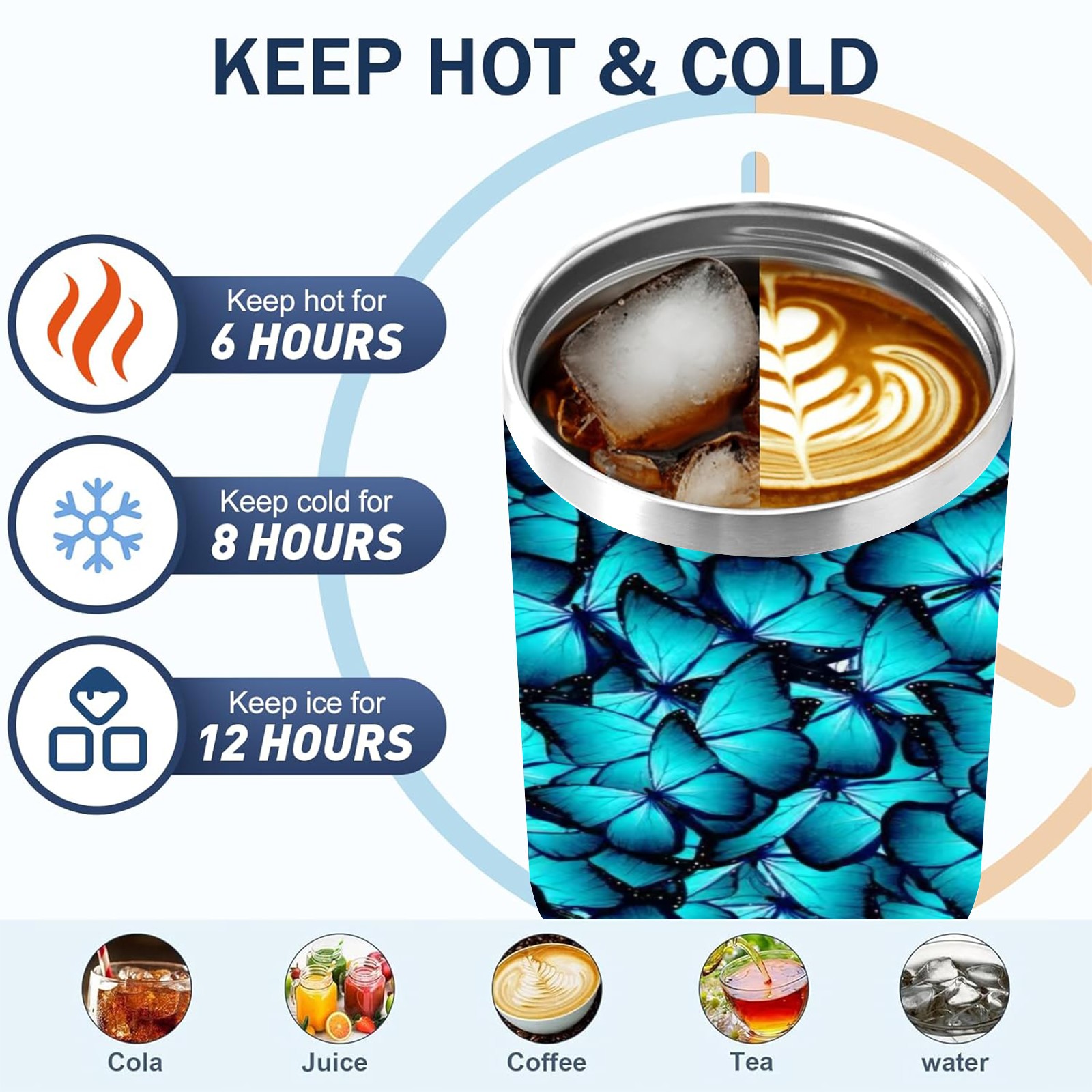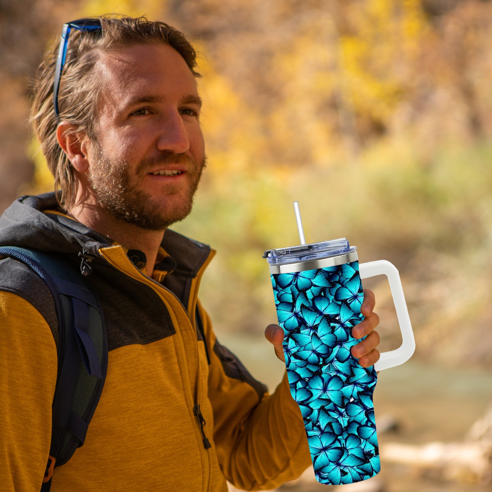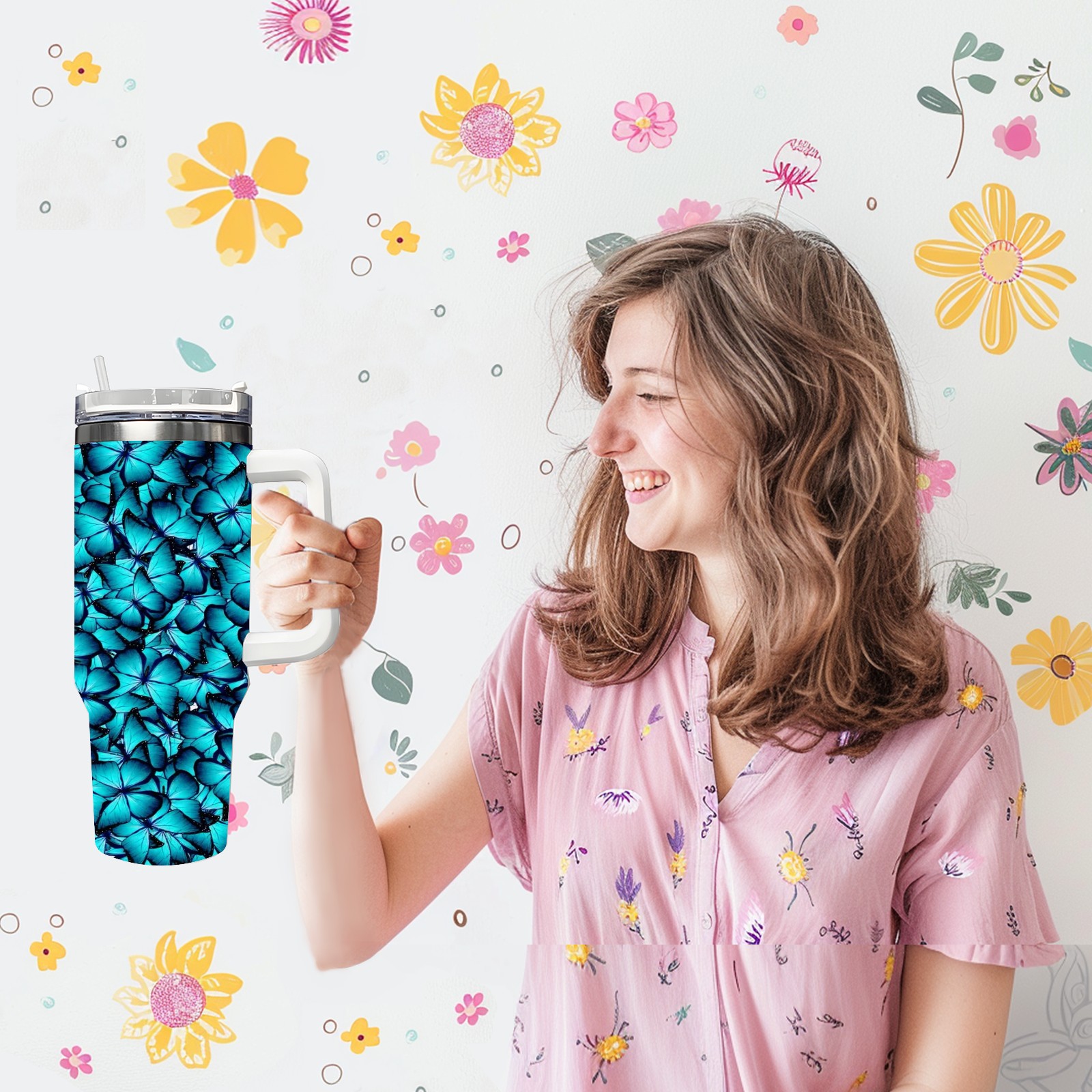 40 унций полностью напечатанный автомобильный стакан Blue Butterfly